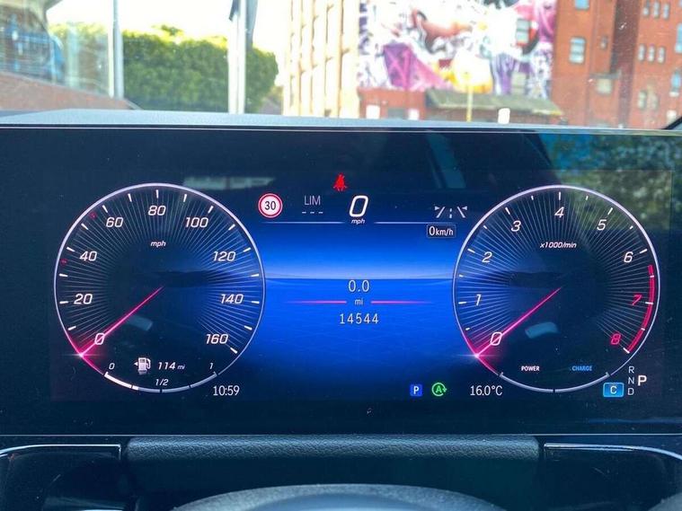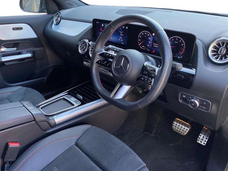 10.25 inch touchscreen central media display, 10.25" Digital instrument cluster display screen, Attention assist, Blind spot assist, Direct steering, DYNAMIC SELECT with a choice of driving modes (ECO, Comfort, Sport and Individual), ECO start/stop function, Fluid level warning indicator for fuel, oil, coolant and washer fluid, Hard-disk navigation, Hey Mercedes Voice activation, Lamp failure indicator, Lane keeping assist (LKA), Mercedes me connect including emergency call system, accident recovery, breakdown and maintenance management, Mercedes me remote services, Multi function trip computer, Outside temperature gauge, Owners manual and service booklet in English, Pre-installation of private car share, Radio aerial integrated into front and rear windshields, Service indicator (ASSYST), Smartphone integration with Apple CarPlay and Android auto, Speed limit assist, Status display for rear seat belts in instrument cluster, Tailgate, Wireless charging, Lowered comfort suspension, Rear axle multi-link, Bluetooth connectivity including audio streaming, DAB Digital radio, MBUX multimedia system, Media interface, Mercedes-Benz (225w) sound system with 10 speakers, Pre installation for Mercedes Benz Link, Adaptive brake lights, Adaptive highbeam assist, Aerial for GPS, Aluminium roof rails, AMG front apron with front splitter in the colour of the vehicle with chrome trim element, AMG rear apron with visible tailpipe trim and chrome trim element, AMG specific/dual flow exhaust pipes in chrome (non-functional), Automatic headlamp activation, Beltline trim and window line trim strip in high gloss aluminium, Black grained side sill trim with chrome inlay, Body coloured door handles with chrome insert for keyless entry, Car wash function, Dark privacy glass from B-pillar backwards, Electric front windows, Electric rear windows, Electrically adjustable and heated door mirrors with integrated LED indicators, Exhaust system with 2 Visible tailpipe trim elements and rear apron with trim in chrome, Heat insulating dark tinted glass, Heated glass rear windscreen + timer control, Heated windscreen wash system, Illuminated door sill panels with Mercedes-Benz lettering, Interior mirror with black reading lamps and frameless, LED high performance headlamps with integrated LED daytime running lights, LED tail lights, LED third brake light, Radiator diamond grille with chrome pins and central Mercedes star, single louvre in matt grey with chrome inserts and black highlights, Rain sensor windscreen wipers, Rear fog lights, Rear side wing doors, Rear wiper, Roof spoiler, Wheel arch liners in the colour of the vehicle, 12V power socket in centre console, 3 seat bench in 2nd row, 3 spoke flat bottom multifunction nappa leather steering wheel, 4 way lumbar support, 40:20:40 split folding rear seat backrests, Adjustable head restraints, Air conditioning - air vents with silver chrome surround, Air conditioning - Two zone thermotronic luxury automatic climate control with display, AMG floor mats, Auto Mercedes-Benz child seat recognition sensor, Black roof lining, Courtesy light in boot, Fluorescent jacket, Front centre armrest with stowage, Galvanished gear shift paddles on steering wheel in silver chrome, Heated front seats, Illuminated glovebox, Interior lighting - 64 colour Ambient lighting, Luggage net on driver/front passenger seat backrest, Manually height and reach adjustable steering column, Single front passenger seat, Sports pedals in brushed stainless steel with black rubber studs, Sports seats, Sports steering wheel, Stowage compartment in centre console, Stowage compartment with retractable cover, Sunvisors with illuminated vanity mirrors, Twin front cup holders, Two outer rear seat isofix and top tether child seat fixing points, Comfort seat pack - GLA Class, Interior lighting with light and sight pack - GLA, Keyless go comfort package - GLA, Mirror pack - GLA Class, Parking package with reversing camera - GLA, USB package plus - GLA, 3 rear 3 point seatbelts, ABS with Brake Assist, Active bonnet pedestrain safety measure which detects an impact and raises bonnet by 65mm, Active brake assist includes forward collision warning system with autonomous braking, Adaptive brake assist with hold function and hill start assist, Bonnet with power domes, Brake pad wear warning indicator, Childproof locks manually operated for rear doors and electrically operated for rear power windows, Crash responsive emergency lighting, Driver and passenger head and side airbags, Drivers knee airbag, Dual stage driver/passenger airbags, Electronic parking brake, ESP curve dynamic assist, ESP with ASR, Front and rear seatbelt reminder, Front brake callipers with Mercedes Benz logo lettering on front, Front brake discs internally ventilated and perforated, Front passenger seat occupancy sensor, Sports braking system, Tyre pressure monitoring system, Warning triangle and first aid kit, Window airbags, Alarm system with immobiliser and interior protection -Thatcham category 1, Guard 360 degree vehicle protection, Keyless entry lock/unlock, Keyless Go starting function, Remote central locking and crash sensor with emergency opening function, Vehicle key with decorative surround in chrome, Black seatbelts, Light longitudinal grain aluminium trim, 19" AMG 5 twin spoke light alloy wheels aerodynamically optimised and painted in tantalite grey with a high-sheen finish RTF, Summer tyres, Tirefit tyre sealant kit,