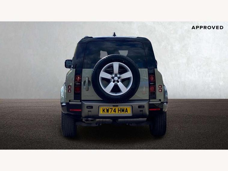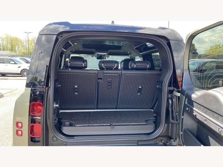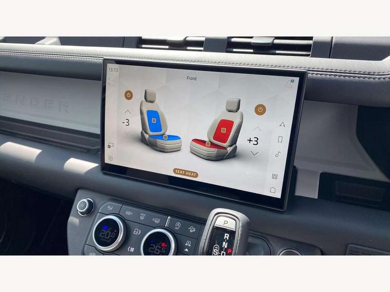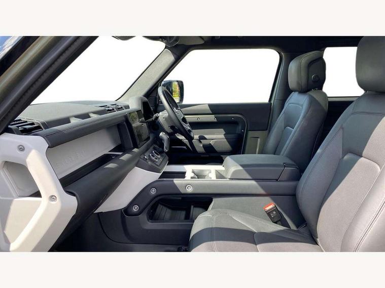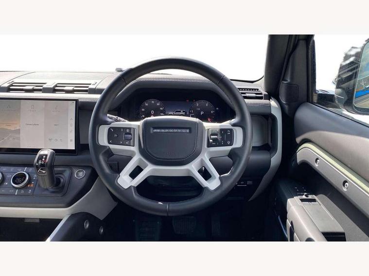 1 x USB-C (power only) & 1 x USB-C (power & data) in Row 1, 2 x USB-C in Row 2, 11.4" touchscreen, 360 degree parking aid, 3D Surround Camera with 360 View, 180 Rear View, Front Traffic Detection, Forward Vehicle Guidance, Tow Hitch Assist and clear sight Ground View, Adaptive cruise control, Android Auto, Apple CarPlay, Blind spot assist, Bluetooth system, Brake pad wear indicator, Clear exit monitor, Connected navigation pro, Driver condition monitor, Electric power assisted steering (EPAS), Interactive driver display, Lane keep assist, Push button start, Rear collision monitor, Rear traffic monitor, Traffic sign recognition with adaptive speed limiter, Trip computer, Wireless device charging, 8 speed automatic transmission, All wheel drive system, Twin speed transfer box, DAB Radio (Digital Audio Broadcasting), Meridian 700w surround sound audio system with 15 speakers, Pivi pro connected, Automatic headlight levelling, Automatic headlights, Black exposed rear recovery eyes, Body coloured bonnet, Centre high mounted stop light, Electric heated/power fold door mirrors with approach lights and auto dimming driver side, Electric windows with one touch open/close and anti-trap, Follow me home lighting, Front fog lights, Heated rear window with timer, Heated windscreen, Illuminated metal treadplates with brand name script, LED tail lights, Matrix LED headlights with signature DRL, Panoramic rear side glass, Privacy glass, Puddle lights, Rain sensing windscreen wipers, Rear fog lights, Rear wiper, Side hinged tailgate, Sliding panoramic roof, Standard tail door, Trailer stability assist, X-Dynamic badge, 12V power socket in loadspace, 3 seat bench in 2nd row, Alpine lights, Configurable cabin lighting, Durable rubber cabin flooring, Durable rubber loadspace flooring, Electric reach + rake adjustable steering column, Electrically adjustable steering column, Extended leather upgrade, Flat load space floor tray, Footwell lights, Front head restraints, Heated steering wheel, Loadspace cover, Loadspace Hook, Manual Tip & Slide front passenger seat, Multifunction steering wheel, Overhead stowage for sunglasses, Rear headrests, Rear ISOFIX, Rear reading lights, Row 2 seats with forward folding seat base, Single front passenger seat, Soft close tail door, Standard seat configuration, Storage glovebox, Sunvisors with illuminated vanity mirrors, Twin front cupholders, Non-smoker package, Online pack with data plan - Defender, 5 x 3 point seatbelts, ABS, Brake hold function, Cornering brake control (CBC), Customer configurable autolock, Driver and passenger airbags, DSC - Dynamic Stability Control, EBD - Electronic brakeforce distribution, Electric parking brake (EPB), Emergency brake assist, Emergency braking, ESP + traction control, Front airbags with passenger seat occupant detector, HDC - Hill descent control, Hill launch assist, Low traction launch, Remote for (e-Call, Optimised assistance call, InControl app, Climate, beep and flash and door), RSC - Roll stability control, Seat belt reminder, TPMS (Tyre pressure monitoring system), Alarm, Immobiliser, Intrusion sensor, Keyless entry, Locking wheel nuts, Secure tracker pro,