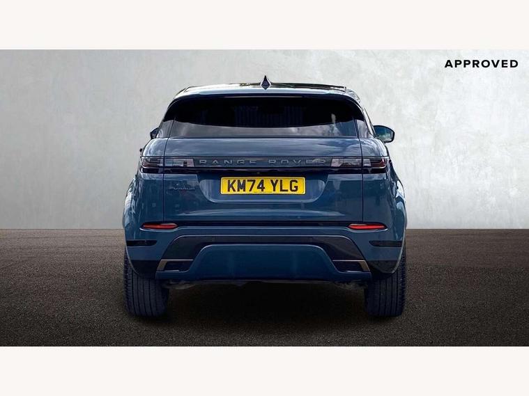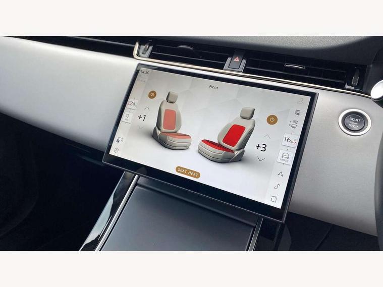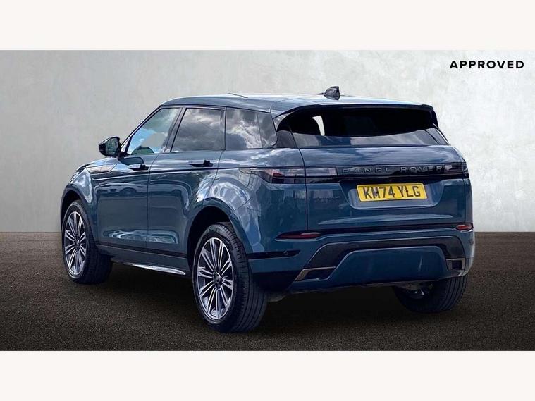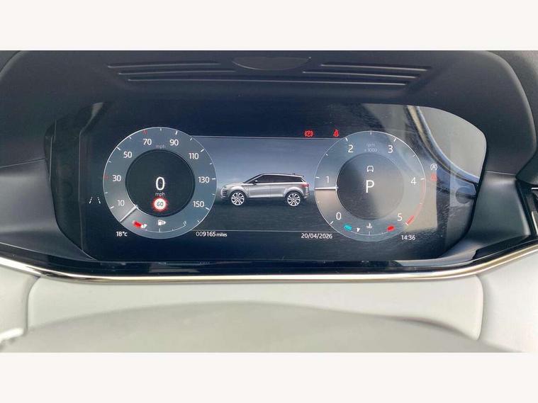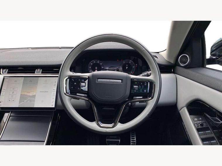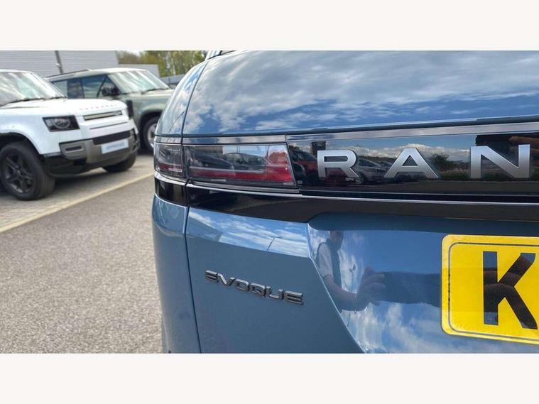11.4" touch screen, Adaptive cruise control, Android Auto, Apple car play, Blind spot assist, Bluetooth connectivity, Brake pad wear indicator warning light, Driver condition monitor, eCall emergency system, Eco mode, Electronic power assisted steering (EPAS), Front and rear parking aid, InControl remote, Interactive driver display, Land Rover InControl apps, Lane keep assist, Pivi pro connected includes diamond pivi variant, smart settings, connected navigation pro, nuance speech licence, Powered tailgate/boot lid, Rear collision monitor, Rear traffic monitor, Traffic sign recognition with adaptive speed limiter, Voice control system, Wireless device charging, All terrain progress control, Diesel exhaust fluid (DEF) large tank, Efficient Driveline, Large fuel tank, Passive suspension, Terrain Response 2, Digital Audio Broadcast radio-DAB, Steering wheel mounted controls, Acoustic laminated windscreen, Auto headlights, Automatic headlight levelling, Electric windows with one touch open/close and anti trap, Flush deployable exterior door handles, Front and rear recovery eyes, Heated rear window with timer, Heated washer jets, Heated windscreen, Pixel LED headlights with signature DRL and LED tail Lights, Power fold, auto-dimming, heated door mirrors with approach lights and auto dimming driver side, Rain sensing windscreen wipers, Rear animated directional indicators, Rear fog lights, Rear side wing doors, Rear wiper, Side repeater indicators in mirror, Tailgate spoiler, Third brake light, Winter wiper park position, 14 way driver memory electric front seats with 2 way manual headrests + 4 way lumbar support, bolsters, 40:20:40 split folding rear seats with centre headrest and armrest, Ambient interior lighting, Bright metal pedals, Carpet mats, Chrome tread plates with range rover branding Includes stainless steel loadspace scuff plate with etched graphic, Customer configurable single point entry, Electrically adjustable steering column with memory function and easy entry/exit, Front and rear cupholders, Heated steering wheel, Isofix system on outer rear seats, Overhead lighting console, Overhead stowage for sunglasses, Passive front head restraints, Rear air vents, Rear head restraints, Satin chrome gearshift paddles, Single passenger seat, Sunvisors with illuminated vanity mirrors, Twin sliding front centre armrest, Online pack with data plan - Evoque, Power socket pack 2 - Evoque, 3 rear 3 point seatbelts, Anti-lock braking system (ABS), Brake hold function, Customer configurable autolock, DSC - Dynamic Stability Control, Electronic brake force distribution, Electronic parking brake, Electronic traction control, Emergency braking, Front and rear seatbelt reminder, Hill descent control, Hill launch assist, Low traction launch, Occupant protection assist, Passenger seat occupant detector, Power operated child locks, Roll stability control, Six airbags - Driver and passenger airbags/driver knee airbag/front side airbag and curtain airbags, Torque vectoring brake, Tyre pressure monitoring system, Alarm, Immobiliser, Intrusion sensor, Keyless entry, Locking wheel nuts,