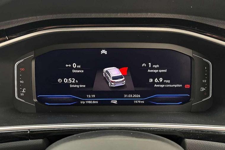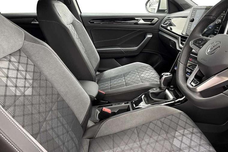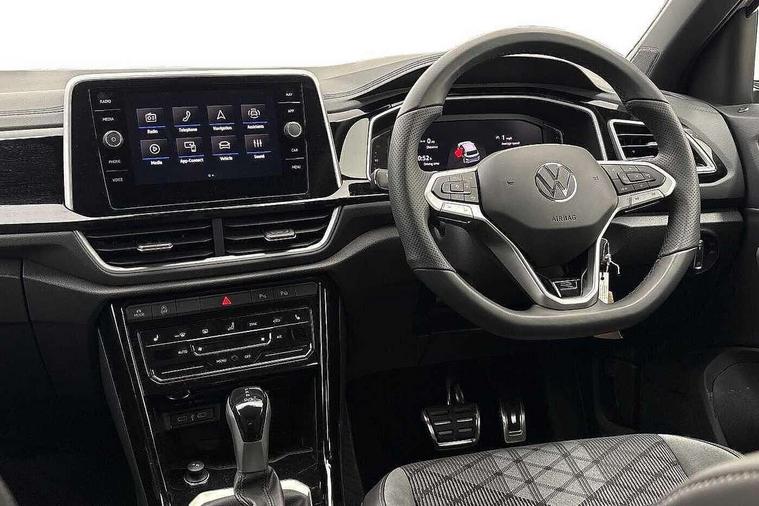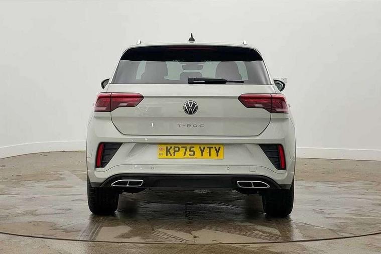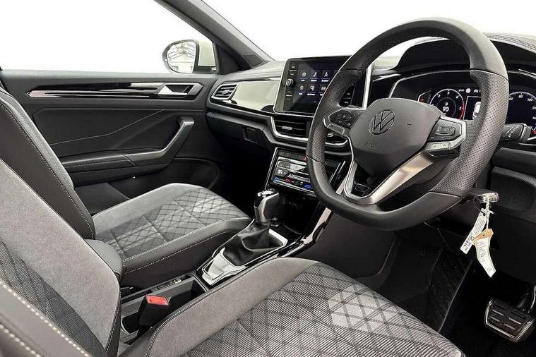 10.25" Digital cockpit pro, Advanced driver attention and drowsiness monitor, Dynamic road sign display, Emergency call service, Lane keeping system Lane Assist, Mobile phone interface, Modified key software - reduce switch off time for key status change to Long no motion, Online services, Park assist including front and rear parking sensors, Service interval indicator, Tailgate/trunk lid release from outside, Think blue trainer driver tips and journey analysis, Warning sound and light for front seatbelts unfastened, Wireless app connect, Battery regeneration during braking, Start/stop function with battery regeneration, DAB Digital radio, Diversity antenna for FM reception, Front and rear 6 speakers, Music playback - MP3, WMA and AAC files, Premium USB cable in choice of either Apple or Android smartphone compatibility, SD card slot, Simultaneous pairing of 2 compatible mobile devices, Title and cover art display, We Connect and We Connect Plus functionality, Auto dimming interior rear view mirror, Automatic hazard lights activation under emergency braking, Automatic headlight control with LED separate daytime running lights with coming/leaving home function, Body coloured exterior mirror housings and door handles, Electrically adjustable and heated door mirrors, Extended roof spoiler, Exterior mirrors aspherical on driver side, convex on front passenger side, External USB type C socket and charging sockets, Front windscreen wiper with intermittent wipe and 4 position delay, Heated rear window, LED 3rd brake light, LED rear combination lamps, LED rear number plate lights, Power windows with comfort operation and circuit breaker, Privacy glass for rear side windows and rear window, R-Line design body coloured bumpers, Rain sensor, Rear exhaust tailpipe, Rear fog light on one side and reversing lights on both sides, Rear side wing doors, Rear wash/wipe with intermittent wipe setting, Remote electrically foldable door mirrors, puddle lights and reverse activated passenger's door mirror, 12V power socket in centre console, 3 rear head restraints, 3 seat bench in 2nd row, 4 load lashing points in luggage compartment, Air care climatronic air conditoning system with active combination filter and 2-zone temperature control, Black roof lining, Chrome plated decorative trims, Chrome plated radiator grille inserts, air vent surrounds and light switch surrounds, Door and side trim panel with leatherette insert, Front + rear carpet mats, Front centre armrest, Front cupholders x 2, Front footwell illumination, Front reading light, Front scuff plates with R Line logo, Front seat back storage pockets, Glove compartment door with light, Instrument lighting, white adjustable panel illumination, Interior ambient lighting and surround lighting, Interior light delay, Isofix child seat preparation, Leather gearshift handle, Load-through provision with cup holder when folded down ('Unsplit rear seat bench, split folding backrest, with centre armrest), Luggage compartment lighting, Single front passenger seat, Stainless steel pedals, Storage compartment in left and right luggage area, Storage compartment in rear doors, Storage compartments in driver and front passenger doors, Sunvisors with illuminated vanity mirrors, Variable boot floor, height adjustable and removable, Driver assistance pack without proactive passenger protection - T-Roc, 3 point height adj front seatbelts + pretensioners, 3 point seatbelts in outer rear with ECE label, ABS, Child locks on rear doors, City emergency braking and pedestrian monitoring, Driver and front passenger airbag with front passenger airbag deactivation, Driver and front passenger safety-optimised head restraints, Drivers seatbelt reminder, Electronic parking brake, Electronic Stability Control (ESC) inc EDL (Electronic Differential Lock) and ASR (Traction Control), Front and rear passengers curtain airbag system including front side airbags, Hill start assist, Predictive pedestrian protection, Rear disc brakes, Two tone horn, Tyre pressure loss indicator, Volkswagen roadside assistance, Piano black decorative inserts in dashboard and front door trim panels, Trims for alloy wheels,