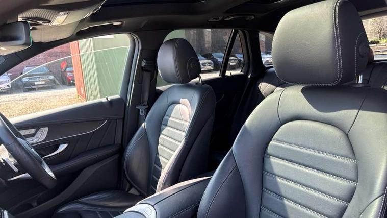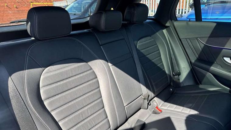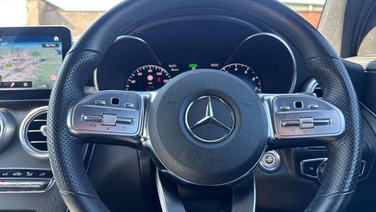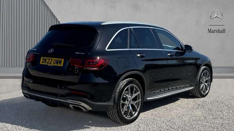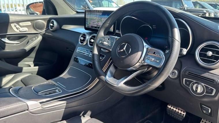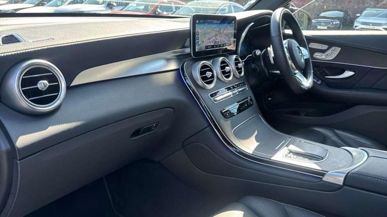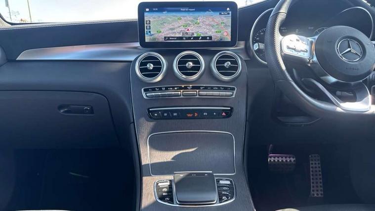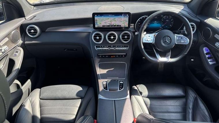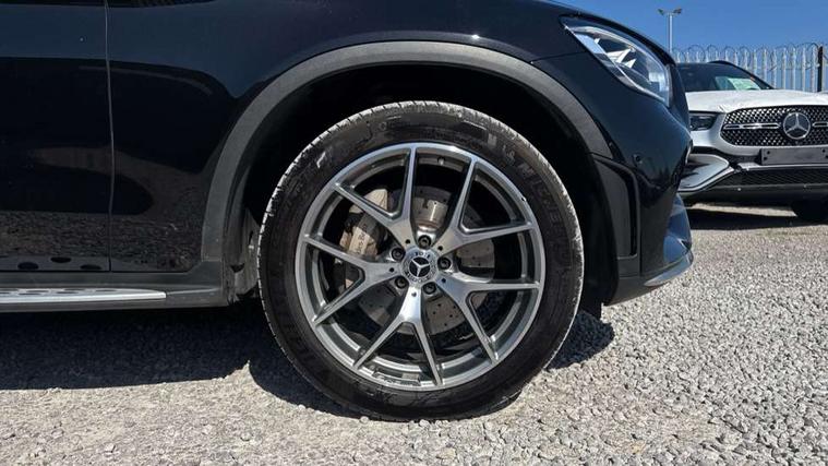 360 degree view camera, Active parking assist with parktronic system, Attention assist, Bluetooth interface for hands free telephone, Collision prevention assist plus, DYNAMIC SELECT with a choice of driving modes (ECO, Comfort, Sport, Sport+ and Individual), Easy pack automatic powered tailgate, eCall emergency call system, ECO start/stop function, Hard disk navigation, Hey Mercedes Voice activation, Instrument cluster with12.3-inch digital instrument cluster display. High resolution instrument cluster screen with choice of three display styles, MBUX Interior assistant, Mercedes connect me with remote online services, Multi function trip computer, Outside temperature display, rear seatbelt status indicator, Remote boot release, Service indicator (ASSYST), Smartphone integration with Apple CarPlay and Android auto, Traffic sign assist, 4MATIC permanent four wheel drive, 66 litre fuel tank, 9G TRONIC plus automatic transmission with steering column gear selector, DIRECT SELECT steering wheel gearshift paddles, Petrol Particulate Filter (PPF), Sports suspension tuned for improved handling and driving dynamics, 5 speakers, Frontbass loudspeakers, MBUX multimedia system with DAB digital radio and touchpad, Media display 10.25-inch touchscreen display, Pre installation for Mercedes Benz Link, USB ports x 2 in centre console, Adaptive brake lights, Aluminium roof rails, AMG bodystyling - AMG front apron with sporty air intakes and chrome trim element, AMG diffuser-look rear apron with insert in black, Body colour door mirrors, Body coloured bumpers, Electric panoramic glass sunroof, Electric windows one touch open/close, Electrically adjustable and heated door mirrors, Front, side and rear exterior chrome trim, Headlamp assist automatic headlamp activation, High level LED brake light, LED high performance headlamps with integrated LED daytime running lights, LED tail lamp, Motor way mode function and locator lighting, Privacy glass with dark glass from B pillar backwards, Radiator diamond grille, Rain sensor windscreen wipers, Range adjustable headlights, Rear side wing doors, Rear wiper, Roof spoiler, Running boards, Tinted glass all round with single layer safety glass, Tinted rear windows, Two chrome plated tailpipe trim elements, Variable front intermittent wipers, 2 way rear head restraints, 3-spoke multifunction sport AMG steering wheel in black nappa leather with flattened bottom section, chrome insert and perforated leather in grip area, 40:20:40 split folding rear seats, Ambient lighting, AMG floor mats with edging and embroidered AMG lettering, AMG sports seats, Artico man-made leather upper dashboard with contrast topstitching, Automatic child seat recognition sensor, Black roof lining, Dividing net - rear, Double cup holder in centre console, Easy-pack removable load compartment cover, Front armrest with storage box, Front door sills with Mercedes Benz lettering, Front head restraints, Front passenger seat, Heated front seats, Illuminated and lockable glove compartment, Leather upholstery, Rear top tether child seat ISOFIX attachment, Sports pedals with stainless steel surfaces and rubber studs, Steering wheel with touch control buttons, THERMOTRONIC 3 zone automatic climate control, Interior lighting pack - GLC, Memory pack - GLC, Mirror pack - GLC, Storage pack - GLC, 3 rear 3 point seatbelts, Active bonnet, Adaptive brake system with HOLD function and brake drying in the wet, ASR, Black seat belts, Brake calipers with Mercedes-Benz lettering + perforated brake discs, Child proof door locks, Dual-stage airbags - driver and front passenger, driver knee bag and window bags for driver, front passenger and rear passengers, Electronic parking brake, Electronic stability programme (ESP) with curve dynamic assist and cross wind assist, Front and rear seatbelt reminder, Front passenger seat occupancy sensor, Hill hold function, Tyre pressure monitoring system, Warning triangle and first aid kit, Alarm system/interior protection/immobiliser, Automatic door locking, Keyless Go entry and starting function, Remote central locking, Anthracite open pore oak wood trim, 20" AMG 5 twin spoke alloy wheels painted in titanium grey with high sheen finish, Run flat tyres, Summer tyres,