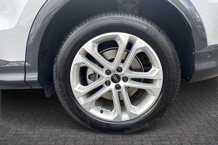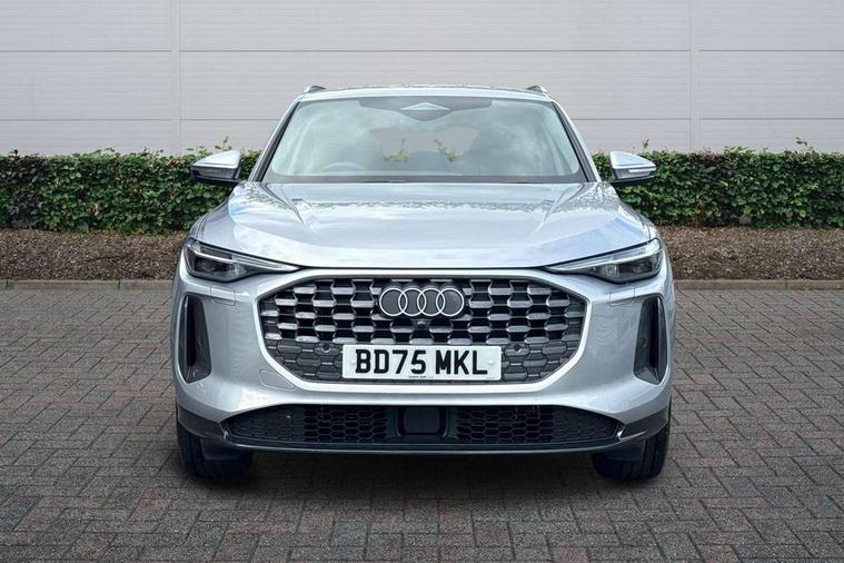 Adaptive cruise control, Advanced driver attention alert, Audi application store, Audi connect emergency call and service, Audi drive select, Audi smartphone interface, Audi virtual cockpit plus with 11.9" OLED colour display, Camera based traffic sign recognition, Fatigue monitor, Front cross traffic intersection assist, Lane departure warning system, MMI navigation plus with high resolution 14.5" OLED touchscreen colour display, Park assist plus, Parking system plus with 360 display, PAS, Reversing camera, Swerve assist and turn assist, Traffic sign based speed limiter, Comfort suspension, 2 USB-C ports in both the front and rear, Audi sound system impressive sound with 8 loudspeakers including centre speaker and subwoofer, 6-channel amplifier with a total output of 180 watts, DAB Digital radio, Smartphone compartment with wireless charging, Aluminium roof rails, Auto dimming rear view mirror, Body coloured door mirrors, Coming/leaving home lighting function, Contrast bumpers in Volcano grey metallic paint finish, Electrically adjustable heated and folding + automatically dimming exterior mirrors, Front and rear electric windows, Front door sill trims with aluminium inlays, illuminated, Headlight cleaning system, Heated rear window, High beam assist, High gloss window surrounds, LED headlights plus incl. digital DRL, dynamic coming and leaving home function with turning/all weather/motorway/manouevring and intersection lights, LED rear lights pro incl. dynamic rear indicators and illuminated light strip with animated coming and leaving home function, LED third brake light, Logo projection light in exterior mirrors, Rear and side windows with heat insulating glass, Rear side wing doors, Rear wash/wipe, Towbar preparation, Windscreen with acoustic glazing, 3 rear head restraints, 3 seat bench in 2nd row, 40:20:40 split folding rear seat bench with centre armrest and cup holders, Comfort centre armrest front, Deluxe 3 zone electronic climate control, Front and rear floor mats, Front seats with manual adjustment for position and 4-way electric lumbar support, Front sport seats with integrated head restraints, Heated front seats, i-Size child seat mounting on the front passenger side and outer rear seats, i-Size and top tether on the outer rear seats, Interior trim in aluminium look, Luggage compartment lid, electrically opening and closing, Manual steering column adjustment, Rock grey cloth headlining, Single front passenger seat, Softwrap in leatherette, Twin leather upholstery, Twin spoke leather steering wheel with multi-function buttons with touch control, shift paddles and trim in chrome look, Ambient lighting package plus - Q5, 3x3 point rear seatbelts, ABS, Acoustic vehicle alerting system, Driver and front passenger airbag with passenger airbag deactivation, Electric child safety locks, First aid kit with warning triangle and high visibility vests, Front emergency brake assist, Front side airbags with head airbag system and front interaction airbag, Hill hold assist, Rear seat occupant reminder, Tyre pressure loss indicator, Anti theft alarm, Anti-theft wheel bolts, Remote control key with SAFELOCK and keyless go, Accent surfaces and control buttons in gloss black, Black dashboard with contrast stitching, Matt brushed aluminium inlays, Steel grey seat stitching, Upper and lower interior elements in artificial leather, Tyre repair kit,