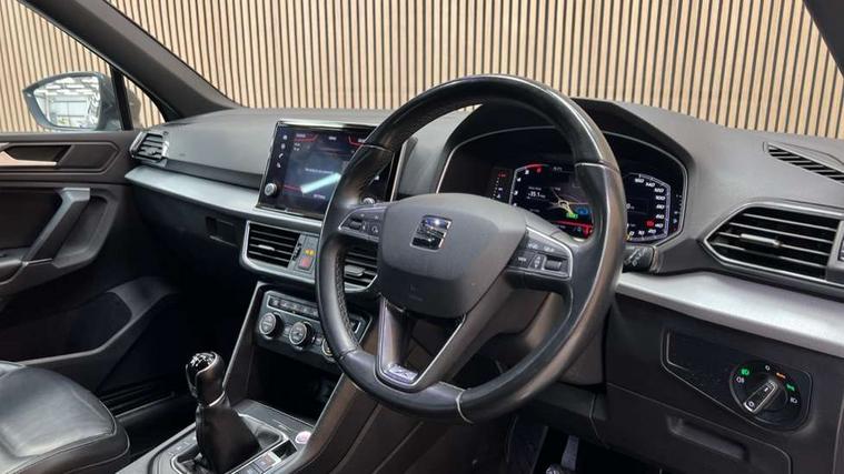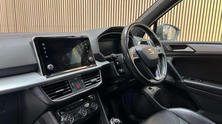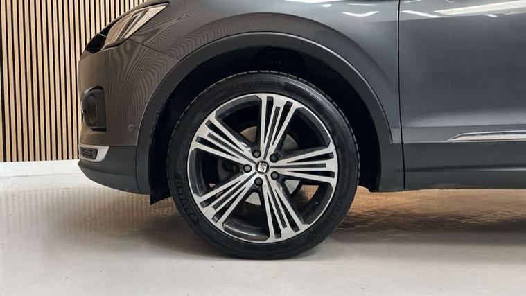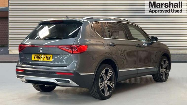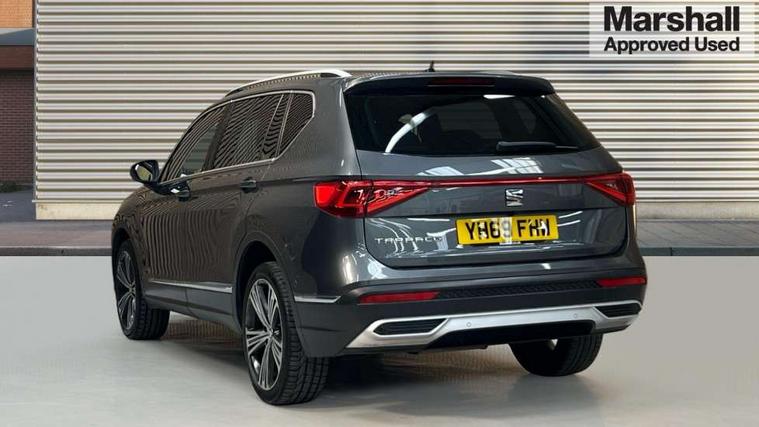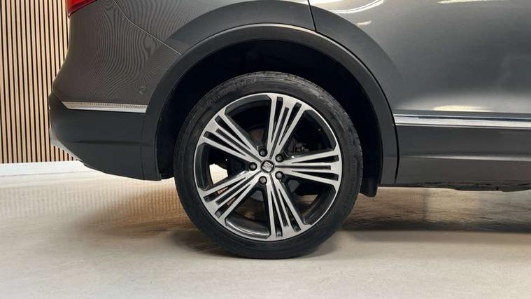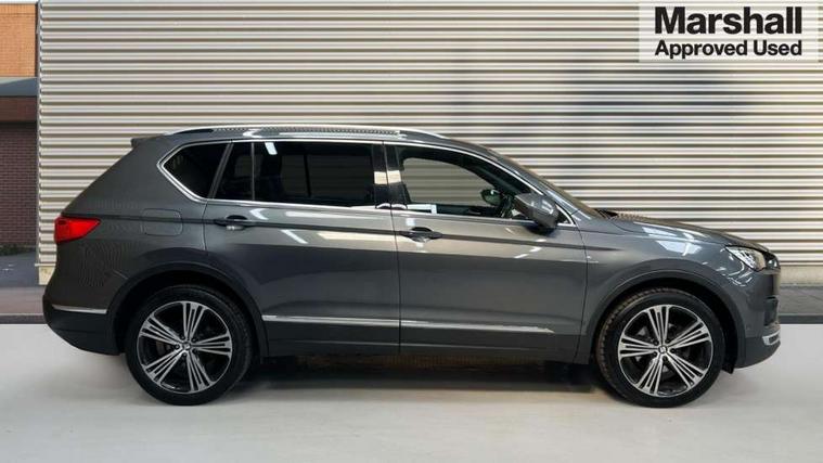 'Lights On' Reminder warning buzzer, 10.25" digital cockpit, Adaptive cruise control with speed limiter, Bluetooth audio streaming with handsfree system, Digital clock, Digital cockpit, e-Call (emergency call), Front assist city emergency braking and pedestrian protection, Full Link Smartphone Integration with Mirror Link, Apple Car Play, Google Android Auto, Lane assist, Low fuel warning light, Outside temperature gauge, Park assist system, Rear view camera, RPM counter, SEAT Drive profile - 4 different modes, progressive steering, 4Drive versions with off-road/snow, steering response, throttle response, gear shifts, Top view camera, Trip computer, Wash water level indicator, Comfort suspension, XDS electronic differential lock, Navigation system with 8" colour touchscreen with proximity sensor, 3D Map display, DAB, AM/FM Radio, 3 USB, Aux-in, 8 speakers, SD card, Steering wheel mounted audio/telephone controls, Auto dimming rear view mirror, Auto headlights with automatic coming and leaving home function, Automatic headlight adjustment, Body colour door mirrors and handles, Body coloured bumpers, Chrome front grille frame, Chrome roof rails, Chrome window trim, Dark tinted rear windows, Electric front/rear windows, Electrically adjustable and folding door mirrors, Front halogen fog lights with cornering function, Fuel door linked to central locking, Full LED headlights with LED rear lights, Hidden exhaust pipe, Illuminated aluminium front door sill with XCELLENCE logo, LED daytime running lights, LED licence plate lighting, Rain sensing wipers, Rear fog lights, Rear wash/wipe, 3 zone climate control, Ambient spot lighting and front footwell illumination, Black interior roof, Centre armrest in front with air outlet in rear, Driver and passenger sunvisor with covered and illuminated mirror, Driver/passenger lumbar adjustment, Easy fold rear seat system - second and third row, Electric driver's seat with memory, Folding table on front seat backrests, Forward and backward adjustable seats 2nd row, Four cargo rings in the boot, Front cupholders, Front seat back storage pockets, Gear shift indicator, Height adjustable driver's seat, Height adjustable front headrests, Height adjustable passenger seat, Illuminated boot, Instrument lighting with brightness control, ISOFIX points in outer 2nd row seats and front passenger seat with top tether anchorage points, Leather gear knob, Leather steering wheel, Leather upholstery with sports seats, Leather wrapped multifunction steering wheel, Luggage compartment floor with split function, Rear armrest and easy back seat release mechanism from boot, Sliding boot cover, Storage draw under front passenger seat, Three 12V sockets, Tool kit, White ambient lighting in front and rear door panels + LED lights in interior door handles, Winter pack - Tarraco, ABS, Active front head restraints, Driver/front passenger airbag, Drivers knee airbag, Electronic parking brake with auto hold, Electronic stability control, Front passenger airbag deactivation, Front side airbags, Hill hold control, Seatbelt reminders for all seats, Tiredness recognition system, Traction control, Two curtain airbags, Tyre pressure monitoring system, Alarm, Central locking, Keyless enter and go with electric tailgate with virtual pedal, Locking wheel bolts, Power locking and remote control with two foldable keys and opening boot selector, Chrome interior detailing - door and dashboard decorative inserts, 20" Supreme machined alloy wheels 37/1,