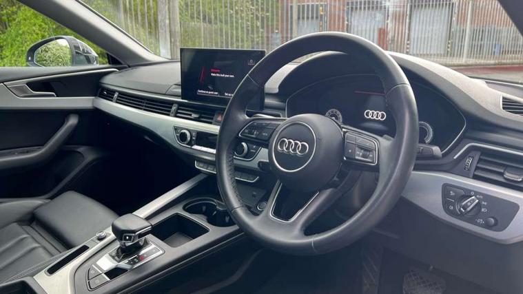 Aluminium ellipse silver inlays, LED interior light pack - A5/RS5, Tyre repair kit, Anti theft alarm system, Anti theft wheel bolts, Immobiliser, Keyless Go, Remote central locking, 8 passive loudspeakers, CD player, DAB digital radio reception, Two additional USB ports for rear passenger in rear centre console, Two SDXC card slots, 3x3 point rear seatbelts, 6 airbags - Driver, front passenger, curtain and side airbags, Electromechanical parking brake, Electronic Stabilisation Control (ESC) including ABS, ASR and EDL, Front passenger airbag deactivation, Height adjustable front seatbelts, Hill hold assist, Manual child lock in rear doors, Multi collision brake assist, Pop-up bonnet for pedestrian protection, Pre sense city, Seatbelt monitoring, Tyre pressure warning, Variable restraint system, Warning triangle and first aid kit, Auto dimming door mirrors, Auto dimming rear view mirror, Body colour bumpers, Body colour door handles, Body colour side sill trim, Body coloured door mirrors, Electric adjustable heated door mirrors, Electric folding door mirrors, Electric front windows, Front fog lights, Kerb-view function for passenger side, LED headlights and rear lights with LED daytime running lights, LED side indicator lights integrated into door mirrors, LED third brake light, Matt aluminium silver tailpipe trim, Radiator grille and air inlets in titanium black with matt aluminium silver inserts, Rain and light sensors, Rear diffuser in matt titanium black with trim strip in matt aluminium silver, Rear side wing doors, Sport front and rear bumpers with side skirts, Variable front intermittent wipers, Windscreen with acoustic glazing, 3 seat bench in 2nd row, 3 spoke high multi-function leather sport steering wheel with paddle shift and height and reach adjustable, 4 way electric lumbar support for driver and front passenger, 40/20/40 split folding 3 seater rear bench seat, Deluxe 3 zone electronic climate control, Door sill trims with aluminium inlay, Front centre armrest, Front head restraints, Front/rear floor mats, Heated front seats, ISOFIX child seat mounting and top tether, Luggage compartment mat, Manual seat adjustment, Rear centre armrest, Rear headrests, Single front passenger seat, Sunvisors with vanity mirrors, Tool kit, Twin leather upholstery + front sports seats, Audi connect safety and service (e-call), Audi connect with Amazon Alexa Integration, Audi drive select (Auto, Comfort, Dynamic and Individual), Audi parking system plus with front and rear sensors, Audi smartphone interface, Audi virtual cockpit - 12.3" full colour digital instrument cluster, vehicle/engine speed, Radio/media information+Driver assistance systems, Automatic start-stop system with coasting functionality and efficiency programme, Bluetooth interface, Cruise control system with speed limiter with free wheeling capability, Electro-mechanical power steering, Email, calendar and text messages displayed via MMI, MMI nav+ with MMI touch - 10.1" high resolution MMI display, touch sensitive, 3D map, route/country info, dynamic route guide, personal route assist, Power operated tailgate, Rear view camera, Service interval indicator, Voice control system, Comfort dynamic suspension,