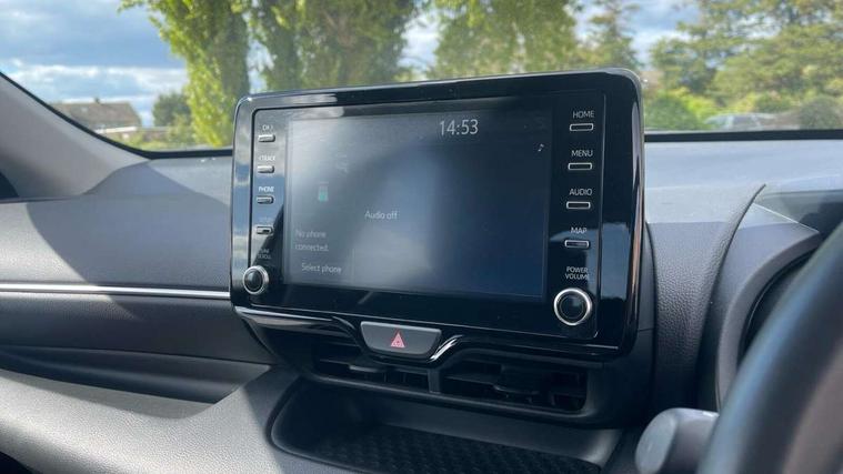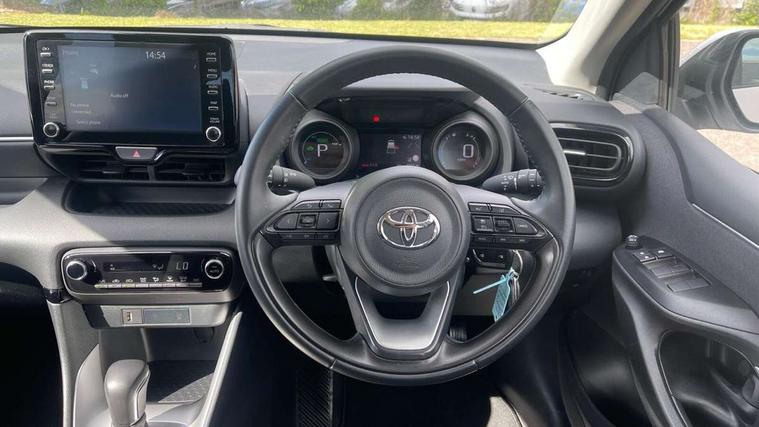 Adaptive cruise control, Adjustable speed limit with speed warning, Bluetooth connectivity, Colour binocular inspired displays with digital speedometer, E-call, Electric power steering, Hybrid energy display, Multi information display switches on steering wheel, Reversing camera, Smartphone integration with Apple CarPlay and Android auto, Tailgate, Voice recognition, Vehicle Stability Control (VSC), 4 speakers, 8" Multimedia display touch screen, USB connection, Acoustic windscreen glass, Auto windscreen wipers, Automatic headlights, Body coloured door mirrors, Electric adjustable heated door mirrors, Follow me home headlights, Front auto power windows with anti jam protection, Full LED rear lights, LED daytime running lights, LED front fog lights, LED front light guide, LED Headlights, LED High mounted stop lamp, LED Indicators, LED rear light guide, Manual headlight levelling, Painted chequered front grille, Rain sensor, Rear auto power windows with anti jam protection, Rear privacy glass, Rear side wing doors, Rear spoiler, Rear wiper, Shark fin antenna, Turning signal integrated indicators in door mirrors, Variable front intermittent wipers, 3 adjustable rear headrests, 3 spoke leather steering wheel, 60/40 split folding rear seat, Active headrests, Adjustable boot height, Auto air conditioning, Coat hooks in rear grab handles, Cup holders (2 front & door), Data Communication Module (DCM) connected services, Fabric upholstery, Front armrest, Glovebox, Grey roof lining, Height adjustable driver's seat, Isofix seat fixing, Leather gearshift, Pollen filter, Shopping bag hooks, Single front passenger seat, Tilt/telescopic steering column, 3 point seatbelts on all rear seats, ABS+EBD+Brake assist, Electronic parking brake, Emergency brake light system (EBS), Front passenger airbag on/off switch, Front seatbelt reminder, Hill start assist control (HAC), Rear child proof door locks, Rear seat belt reminder, Supplemental Restraint System (SRS) 8 airbags: Driver & passenger's airbags, dual side curtain airbags, side impact airbags, front centre airbag, Toyota Safety Sense 2, Precollison + Night time Pedestrian & Cyclist Detection, Lane Trace Assist, Auto High Beam, Intelligent ACC & Road Sign Assist, Tyre pressure warning system, 2x Master key, Alarm/immobiliser, Remote powered central double locking doors, Soft touch instrument panel, Space saver spare wheel,