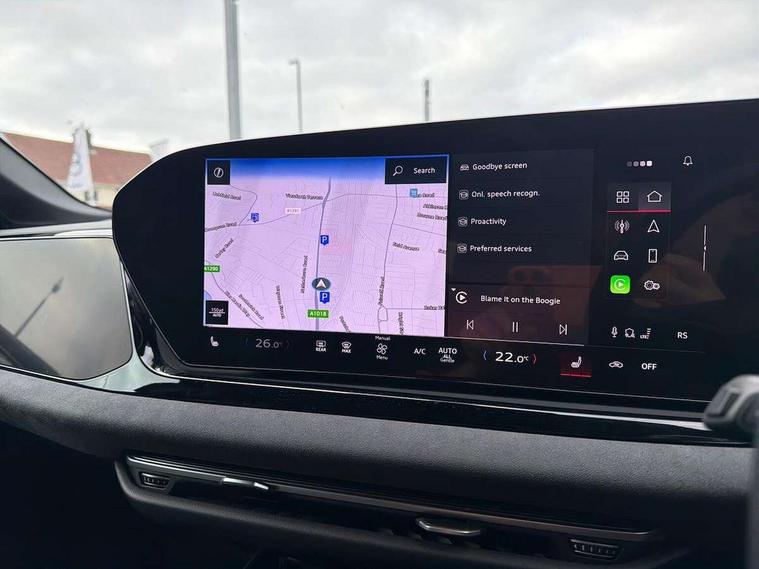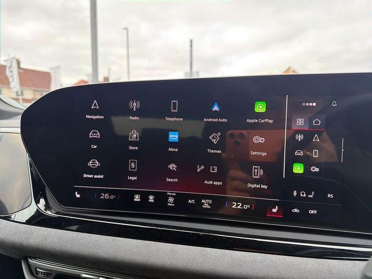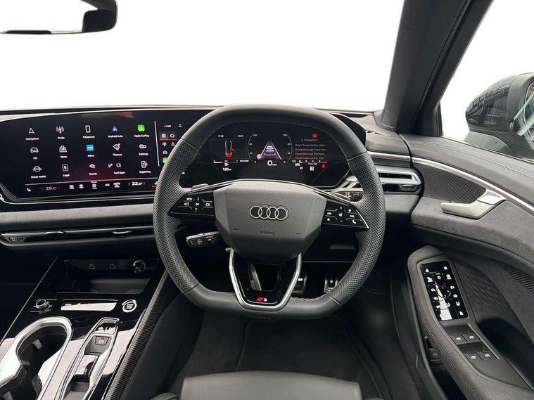 Audi application store, Audi assistant, Audi connect emergency call and service, Audi connect with Amazon Alexa Integration, Audi digital key, Audi drive select, Audi phone box with wireless charging, Audi virtual cockpit, Automatic start/stop system with coasting functionality, Bluetooth interface, Lane departure warning with emergency assist, Luggage compartment lid with Electric opening / closing, MMI 10.9" front passenger touch display, MMI navigation plus with high resolution 14.5" OLED touchscreen colour display, Power assisted steering, Service interval indicator, Side assist and exit warning with rear cross-traffic assist and rear turn assist, Smartphone interface includes wireless Apple carplay/Android Auto, Voice control system, Sports suspension, Audi sound system impressive sound with 10 loudspeakers including centre speaker and subwoofer, 6-channel amplifier with a total output of 180 watts, DAB Digital radio, USB ports with charging function, Audi Matrix LED technology, Auto dimming rear view mirror, Automatic-dynamic headlight range control, Black door handle inserts, Black roof rails, Body coloured door handles, Dipped beam, main beam, position light, dynamic indicator and cornering light, Door mirrors - electrically adjustable, heated, folding and auto dimming on both sides, Dynamic light scenarios of the coming home/leaving home function when stationary, Electric front/rear windows, Exhaust-pipe in dark chrome, Frameless auto dimming interior rear view mirror, Front illuminated aluminium inlay door sill trims with S logo, Headlight cleaning system, LED headlights Plus incl. digital daytime running lights, turning light, all-weather light, motorway light, manouevring light and intersection light, LED rear lights pro incl. brake lights, tail lights, rear number plate lights, reversing lights, continuous light strip, LED third brake light, Privacy glass, Rain and light sensors, Rear and side windows with heat insulating glass, Rear side wing doors, Rear wiper, Roof spoiler, S line exterior styling, Sport exterior inc Radiator grille, air inlets and diffuser in scandium grey as well as inlay in diffuser in selenite silver, White rhombus logo projection light in exterior mirrors, Windscreen with heat insulating and acoustic glazing, 3 seat bench in 2nd row, 3-spoke Sport leather steering wheel flat top and bottom with multifunction and shift paddles, 4 way electric lumbar support for driver and front passenger, 4 zone deluxe automatic climate control, 40:20:40 split folding rear seat bench with centre armrest and cup holders, Centre armrest, front- adjustable angle with four settings, Dinamica microfibre/Artificial leather upholstery, Electrically adjustable front seats, Front and rear floor mats, Front head restraints, Heated front seats, i-Size child seat mounting on the front passenger side and outer rear seats, i-Size and top tether on the outer rear seats, Manual steering wheel adjustment, Net partition, Rear headrests, Single front passenger seat, Sport front seats, Stainless steel pedals and footrest, Steering wheel trim in chrome look, S emblem, steering wheel grips in perforated leather and contrasting stitching, Ambient lighting package plus - A6, Black exterior package - A6, Drive and Park assistance package - A6 Edition 1, Protective warning assistance package - A6, 3x3 point rear seat belts, Black seat belts, Convenience key with safelock, Driver and front passenger airbags, EBD - Electronic brakeforce distribution, Electric rear child safety lock, Electromechanical parking brake, Electronic Stability Control (ESC) including ABS, ASR and EDL, First aid kit with warning triangle and vests, Front passenger airbag deactivation, Proactive occupant protection, front, side and rear, Red brake calipers, Seatbelt monitoring, Side airbags in front and rear with head airbag system and front interaction airbag, Standard 18"steel disc brakes front and 17" rear, Tyre pressure monitoring system, Anti theft alarm, Anti-theft wheel bolts, Immobiliser, Keyless Go, Remote central locking, Accents in the interior in aluminium look, Carbon square structure inlays, Upper and lower interior elements in dinamica microfibre, Wraparound interior elements in artificial leather, Tyre repair kit,