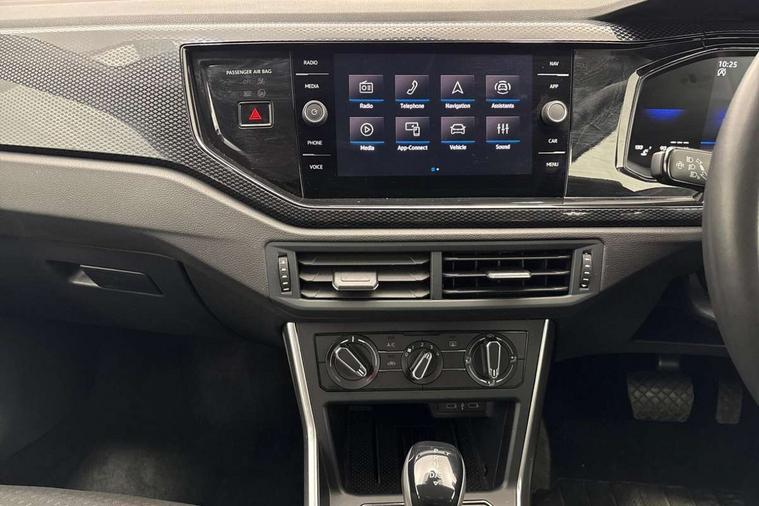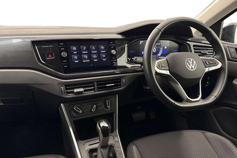 Advanced driver attention and drowsiness monitor, Bluetooth mobile phone interface, Dynamic road sign display, Emergency call service, Multifunction front facing camera for distance control, Park distance control, Power assisted speed sensitive steering, Predictive adaptive cruise control without follow-to-stop and speed limiter, Preparation for navigation system with media and internet package, Preparation for We connect and We connect plus, Rear view camera, Speedo and rev counter, electronic odometer, trip, service interval display and exterior temperature gauge, Standard rear axle, Travel Assist - Lane keeping system and traffic jam assist, Travel assist including emergency assist, Trip computer, Warning signal and warning light for front and rear seatbelts not fastened, Washer fluid level indicator, Wireless app connect, Front wheel drive, Rear shock absorpion, Start-stop system with battery regeneration (recuperation - energy recovery during braking), DAB Digital radio, Diversity antenna for FM reception, Front and rear 6 speakers, Automatic dimming interior rear view mirror, Automatic headlight control with LED separate daytime running lights with coming/leaving home function, Body colour bumpers with chrome inserts, Body colour door handles, Body colour door mirrors, Electric front windows, Engine badge deletion, Headlight range adjustment, Heat insulating and laminated safety glass windshield, LED Headlights, LED rear combination lamps, Power folding adjustable/heated exterior mirrors and front passenger exterior mirror lowering function, Rain sensor, Rear electric windows, Rear fog light, Rear side wing doors, Rear tinted glass from B-pillar backwards approx 65% tinted, Rear windscreen washer and wiper with interval delay, Third brake light, 12V power socket in centre console, 2 front and 2 rear reading lights with switch off delay and dimmer, 2 USB-C ports in the front, 2 USB-C charging sockets on the center console in the rear, 3 rear head restraints, 60/40 split folding rear seat and rear seat bench not split, Ceramique roof lining, Chrome plated radiator grille inserts, air vent surrounds and light switch surrounds, Door and side trim panel, Driver and front passenger seat height adjustment, Driver/passenger sunvisors with illuminated vanity mirrors, Front centre armrest, Front seat backrest storage pockets, Front standard seats, Handbrake lever handle in leather, Hartley/Thomas cloth upholstery, Headliner in recycled material, Isofix child seat preparation easy-fit (for two outer rear seats, and front passenger seat) compatible with I-size, Leather trimmed gear knob, Luggage compartment cover, Luggage compartment lighting, Removable luggage compartment floor, Single front passenger seat, Standard climatic zones, Standard pedal cluster, Three spoke leather wrapped multifunction steering wheel with shifting paddles, Light and vision pack - Polo, 3 point height adj front seatbelts + pretensioners, 3 point seat belt for centre rear seat, 3 point seatbelts, outer rear with ECE lable, ABS, Driver and front passenger airbag with front passenger airbag deactivation, Drivers and front passengers safety optimised head restraints, ESC (Electronic stability control) + EDL (Electronic Differntial lock) and ASR (Traction control), Extended and predictive pedestrian/ cyclist protection, Front assist with autonomous emergency braking (for Adaptive Cruise Control ACC up to 130 mph), Front curtain and side airbags with center airbag, Front disc brakes, Hill hold control, Manual child lock in rear doors, Rear drum brakes, Single tone horn, Tyre pressure loss indicator, Alarm with interior protection, Anti-theft alarm system with interior monitoring, backup horn, and towing protection, Anti-theft wheel bolts, Electronic engine immobiliser, Lava stone black gloss/matt decorative inserts in dash and front door panels, 16" Torsby alloy wheels, Low rolling resistance tyres,