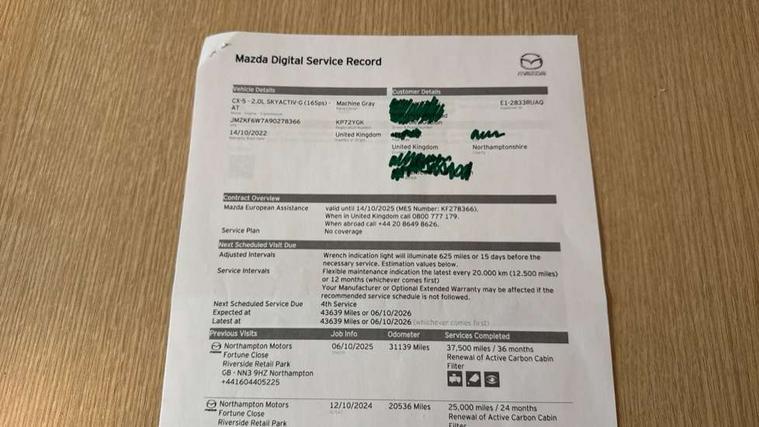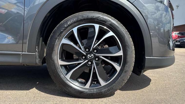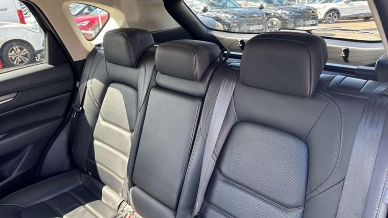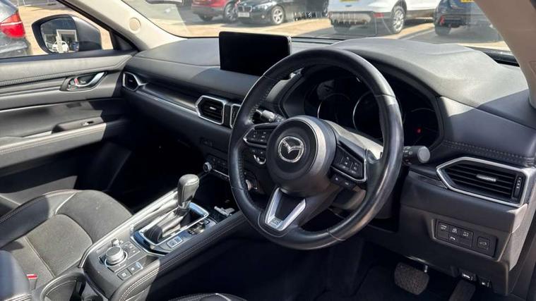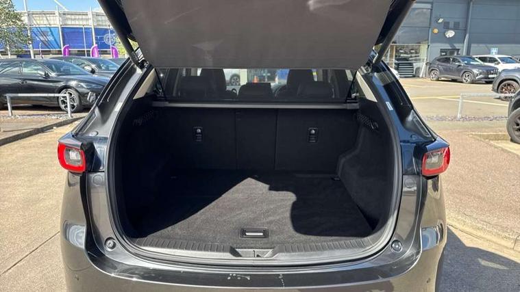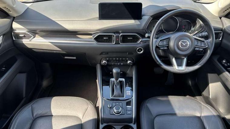10.25" display with Mazda Connect infotainment, 7" colour TFT display, Apple car play/Android Auto, Bluetooth connectivity with voice control, Collision prevention assist, Connected services, Cruising Traffic Support, Drive mode selector, Electric power steering, Emergency stop signalling system, Engine start/stop button, Forward collision warning, Front and rear parking sensors, Integrated navigation system, Intelligent speed assist, Lane departure warning system, Lane keep assist, Radar cruise control with Stop and Go, Reversing camera, Service indicator, Traffic sign recognition (TSR), Trip computer, Windscreen projected colour active driving display (HUD) with memory, i-stop, 2 USB sockets in rear, 2x USB sockets in front, 6 speakers, AM/FM radio, Bluetooth audio streaming, DAB Digital radio, Multimedia Commander including separate volume dial, Steering wheel mounted audio controls, Adaptive front lighting system, Auto dimming rear view mirror, Automatic headlights, Black inlay dashboard panel, Body colour door mirrors, Body colour roof spoiler, Body coloured front and rear black lower bumper mouldings, Bright finish signature wing, Coming/leaving home lighting function, Door mirror integrated indicators, Dual chrome tailpipes, Dusk sensitive headlamps, Electric front/rear windows with one touch auto up/down, Front grille in gloss black finish, Gloss black B and C pillars garnish, High beam assist, Intermittent rear wash/wipe, LED auto levelling, LED daytime running lights, LED front fog lights, LED Headlights, LED third brake light, Power folding and heated door mirrors, Power tilt/slide sunroof, Privacy glass (rear side windows only), Rain sensing front wipers, Rear side wing doors, Satin black side mouldings, Scuff plates, Shark fin antenna, Signature LED rear combination lights, Vinyl with wood grain metal inlay door trim panel, Windscreen wiper de-icer, 12v electrical power outlet, 3 seat bench in 2nd row, 3 stage heated front seats, 40:20:40 Karakuri fold-flat seat system, 6 way electric adjustable passenger seat, 8 way electric driver seat with lumbar support + memory, Cargo room flat floor board with waterproof undertray, Driver seat power slide, recline and height adjustment, Driver, Front passenger and two rear grab handles with coat hooks, Driver/passenger front seatback pockets, Driver/passenger sunvisors + illuminated vanity mirrors (drivers with ticket holder), Dual zone climate control, Folding centre armrest with 2 cup holders, Front and rear door pockets, Front centre storage with two cupholders, Front passenger seat power slide, recline and height adjustment, Heated steering wheel, Humidity sensor, Illuminated glovebox, Interior dome light with integral spotlight, ISOFIX child seat anchorage points attached on outer rear seats, Karakuri tonneau cover, Leather upholstery, Leather wrapped steering wheel and gear knob, Light roof lining, Luggage compartment LED lighting, Luggage compartment power outlet, Paddle shifts, Rear air vents, Rear headrests, Rear seat recline, Roof mounted sunglasses holder, Single front passenger seat, Three height adjustable head restraints, Tilt/height adjustable steering wheel, White interior LED illumination lighting, 3 point front seatbelts with pre-tensioners, 3 rear 3 point seatbelts, ABS, Advanced Smart City Brake Support - SCBS, Child locks on rear doors, Driver and front passenger side airbags, DSTC-Dynamic Stability and Traction Control, Dual front airbags, Electronic brake force distribution, Electronic parking brake with auto hold, ESP, Front and rear curtain airbags, Front passenger airbag deactivation, G-Vectoring control, Hill hold assist, Seatbelt reminder front and rear, Single stage passenger airbags, Smart brake support with forward obstruction warning, Tyre pressure monitoring system, Automatic door locking when moving off, Deadlock, Immobiliser, Power door locks, Remote central locking, Smart keyless entry, Thatcham Cat.1 alarm, 19" diamond cut black alloy wheels, Tyre repair kit,