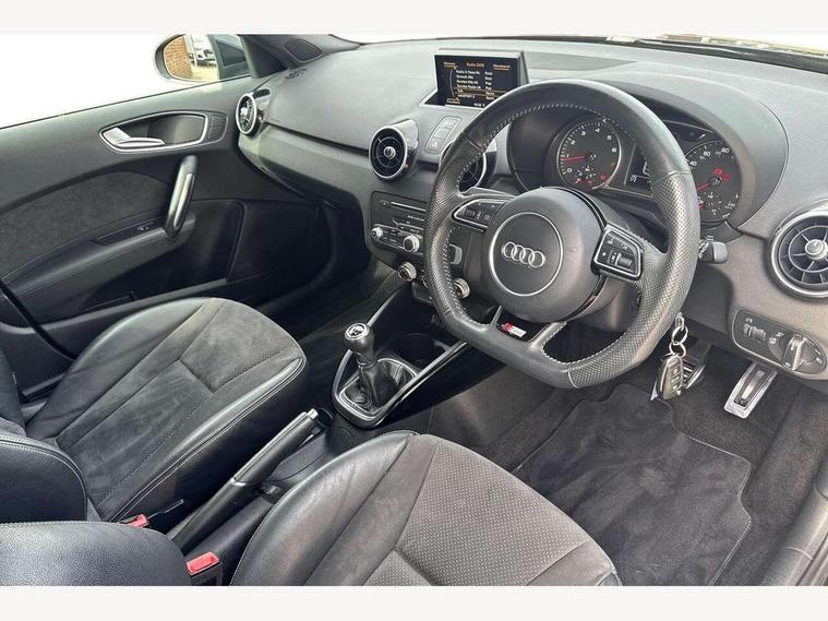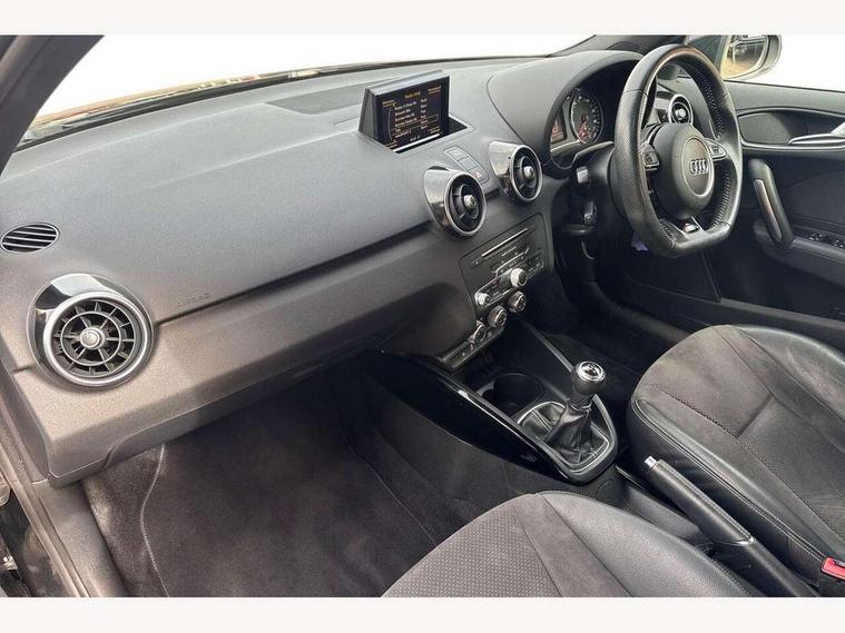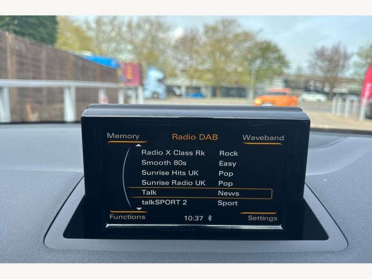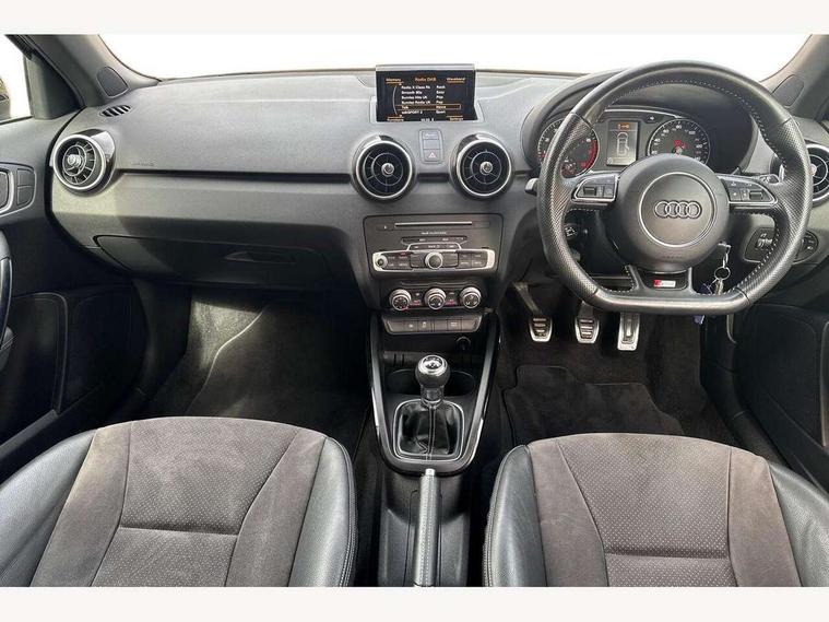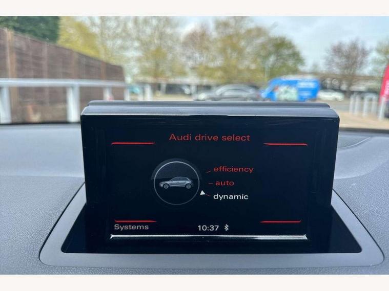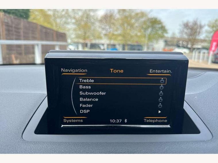 Audi drive select, Cruise control, Driver's information system, Electro-mechanical PAS, Low washer fluid indicator, Service interval indicator, Voice control system, Additional SD card reader, Audi music interface, Bluetooth audio streaming, DAB Digital radio, Adaptive brake lights, Body coloured bumpers, Body coloured door mirrors, Electric adjustable door mirrors, Electric front windows, Electric rear windows, Front fog lights, Heat insulating glass, Heated door mirrors, Heated rear windscreen, Privacy glass, Rain and light sensors, Rear diffuser, Rear wiper, Roof spoiler, S Line body styling, Xenon plus headlights including automatic headlights, LED daytime running lights, LED rear lights, dynamic range control and headlight washers, 12V Accessory socket in centre console, 3 spoke flat bottomed multi-function leather steering wheel, Adjustable rear head restraints, Black cloth headlining, Cupholders in centre console, Door sills trims with aluminium inlays, Electronic climate control (ECC), Front floor mats, Front head restraints, Height adjustable front seats, Illuminated glovebox, Isofix attachments on outer rear seats, Jack and tool kit, Leather handbrake, Lumbar adjustment for front seats, Rake/reach adjustable steering wheel, Split folding rear seats, Stainless steel pedals, High-gloss black styling pack - A1, Non smoking pack - A1, ABS/EBD, Brake assist function, Driver and passenger side airbags, Driver/Front Passenger airbags, EDL, ESP with ASR, First aid kit, Front and rear seatbelt reminder, Front passenger airbag deactivation, Head airbags, Height adjustable front seatbelts, Tyre pressure monitor, Warning triangle, Locking wheel bolts, Remote control central locking, Thatcham category 1 alarm + immobiliser, Aluminium trim, High gloss black air vent sleeves, Tyre repair kit,