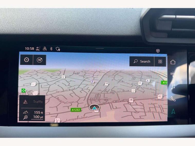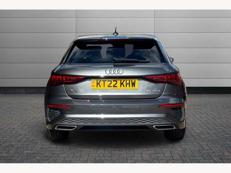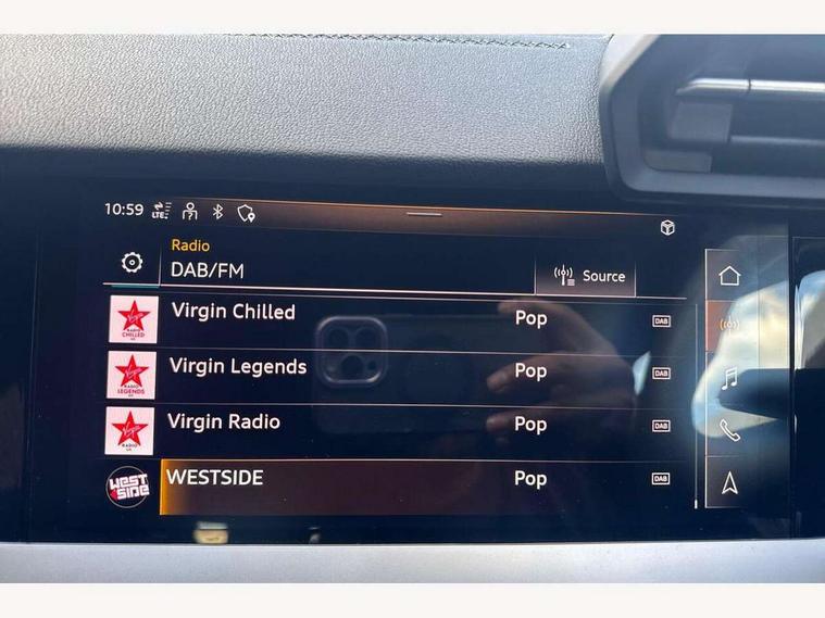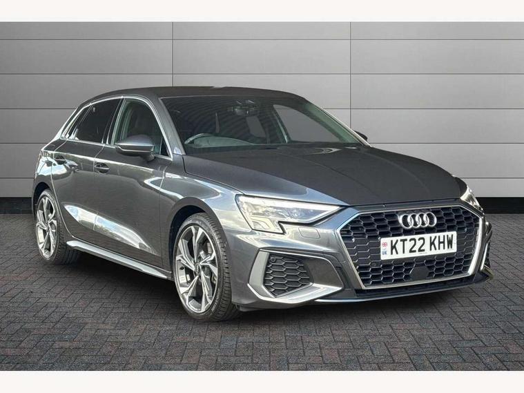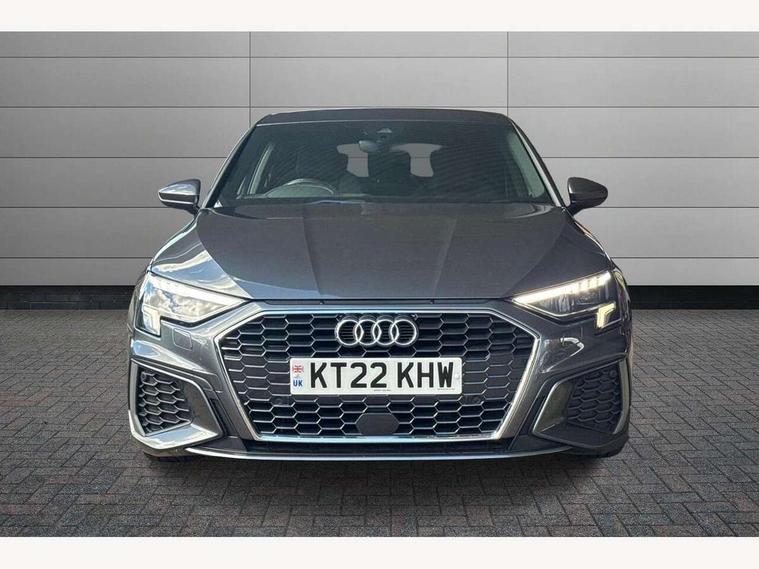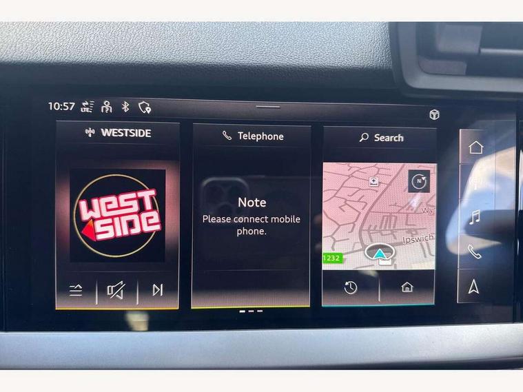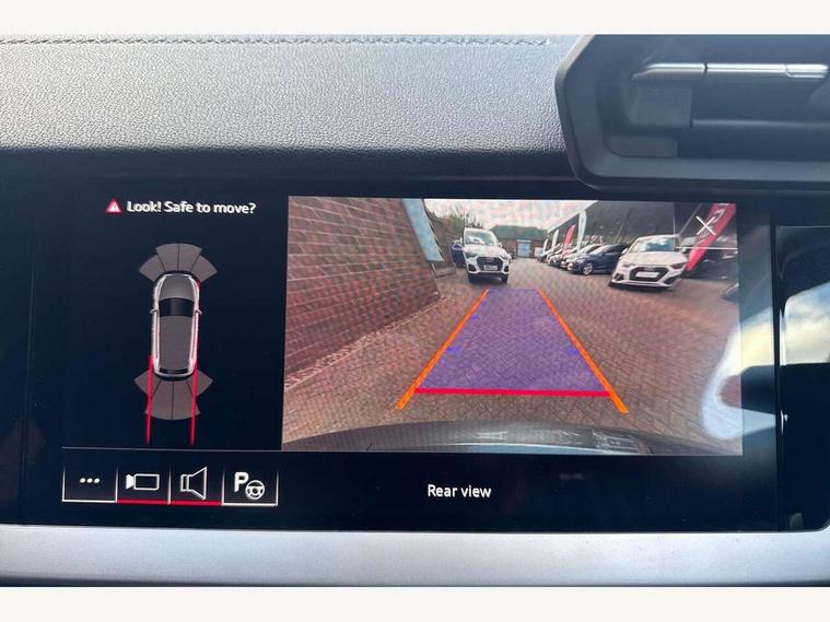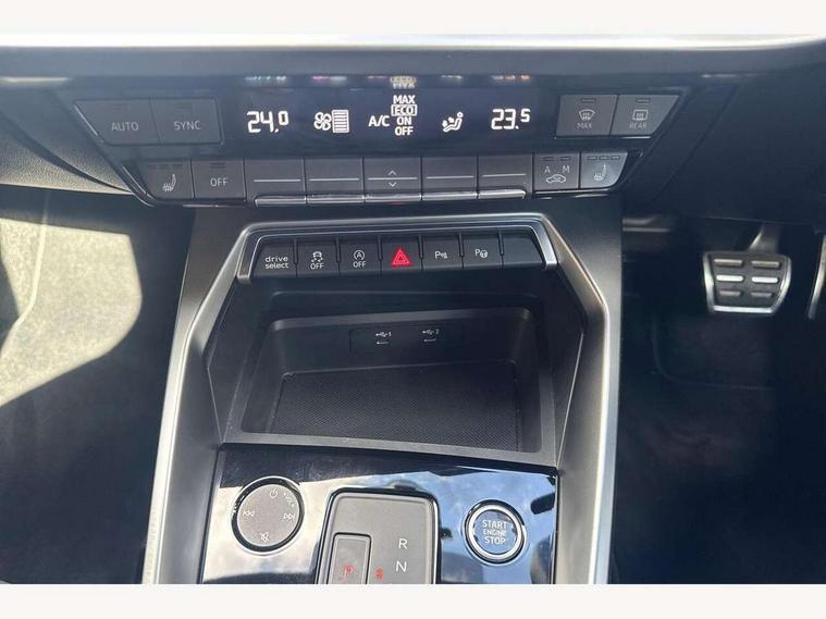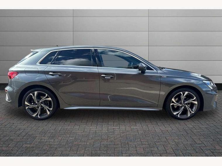 Audi connect emergency call and service, Audi drive select (Auto, Comfort, Dynamic, Efficiency and Individual), Audi smartphone interface, Audi Virtual Cockpit - 10.25" digital and colour instrument cluster, Automatic start/stop system with recuperation, Bluetooth interface, Collision avoidance assistant, Electromechanical power speed sensitive steering, Lane departure warning system, MMI Navigation Plus with high resolution 10.1" colour touch screen display, Service indicator, Trip computer, Voice control system with natural language interaction, 2xUSB-C connection with data and charging functions, 6 passive loudspeakers, DAB Digital radio, 3rd brake light, Acoustic glass windscreen, Aluminium window trim, Auto dimming frameless rear view mirror, Electrically adjustable/heated/folding/auto dimming door mirrors with integrated LED indications + kerb view function for passenger side, Front electric windows, Illuminated aluminium inserts front door sills with S logo, LED daytime running lights, LED headlights with LED rear lights and dynamic rear indicators, Light and rain sensors, Privacy glass - dark tinted rear window, rear door and side windows, Rear electric windows, Rear side air outlets in grained matt black, Rear side wing doors, Rear wiper, S line bumpers, S roof spoiler, 12V socket and storage compartment in front centre console, 3 seat bench in 2nd row, 40/20/40 split folding rear seat bench with cupholder, Black cloth headlining, Dual zone electronic climate control, Front and rear centre armrest in leather, Front and rear headrests, Front/rear floor mats, Height and reach adjustable steering wheel, Illuminated vanity mirror, Interior lighting - glove compartment light and right hand side, Luggage compartment floor covering, Manual boot compartment lid, Manually adjustable front seats, Seat side bolsters, Single front passenger seat, Stainless steel pedals and front footrest in black, Twin leather upholstery with front sports seats S embossed logo, Aluminium interior elements pack - A3 Sportback, S line styling pack - A3 Sportback, 3x3 point rear seat belts, Driver and front passenger airbag with passenger airbag deactivation, Electronic Stabilisation Control (ESC) including ABS, ASR and EDL, First aid kit with warning triangle and 2 safety vests, Front side airbags with head airbags and interaction airbag, Pre-sense front with pedestrian and cyclist detection, Seatbelt monitoring, Tyre pressure loss indicator, Anti theft alarm, Anti-theft wheel bolts, Immobiliser, Manual child locks, Remote control central locking, Accent surfaces in the dashboard and centre console in platinum grey silk effect paint finish, Dark spectrum aluminium inlays,