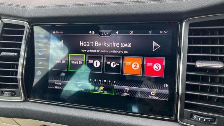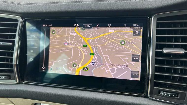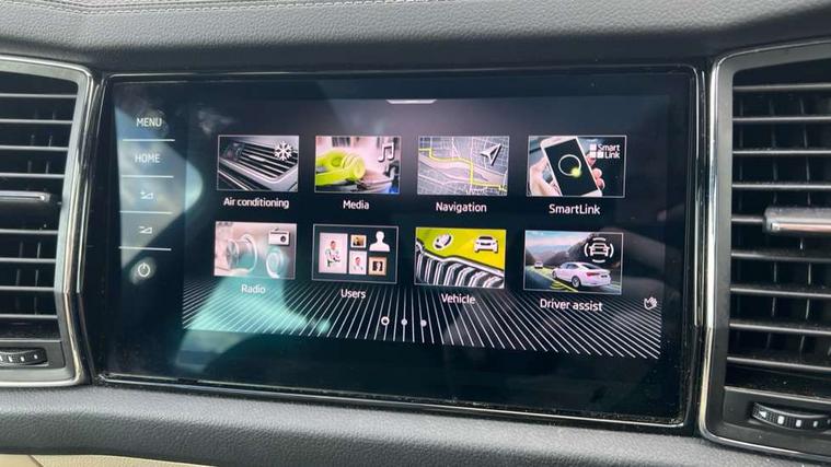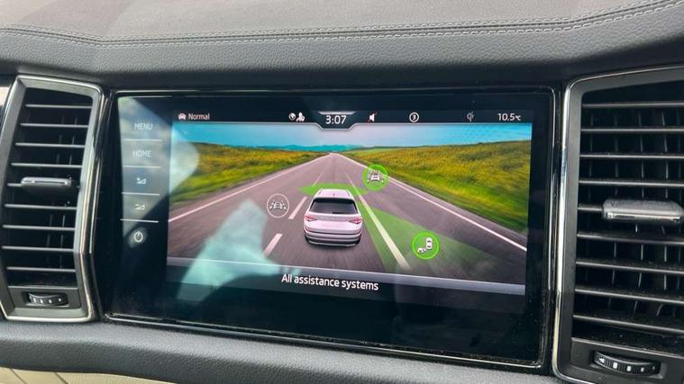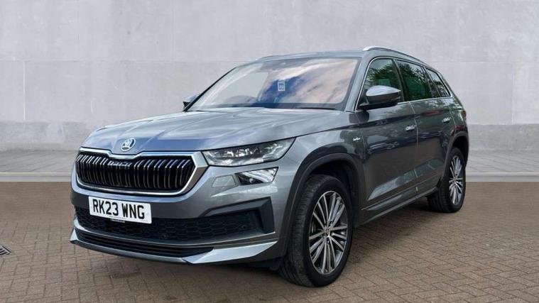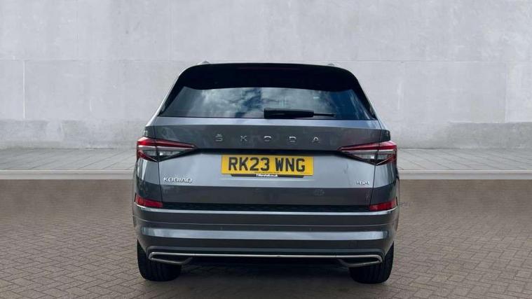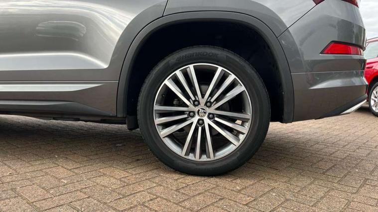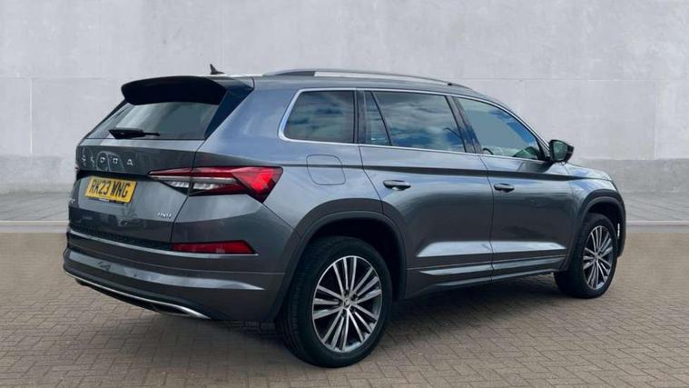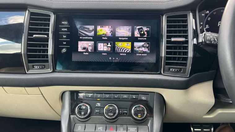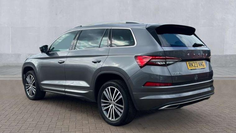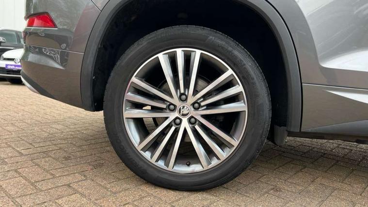 Area view, Blind spot detection system, Bluetooth system, Columbus satellite navigation with 9.2" touchscreen, integrated Wi-Fi, web radio, Digital voice enhancement, e call+, ECO Stop/start function, Exterior temperature indicator, Progressive steering, Smartlink wireless for apple carplay and wired for android auto, Speed limiter, Tailgate unlocking from outside, USB C Port x 2 in front centre console, Virtual Cockpit - 10.25" digital display, Wireless charging, Canton sound system, DAB Digital radio, Aero front windscreen wipers with intermittent function, Aero rear window wiper, Auto dimming rear view mirror, Black wheel arch surrounds, Body colour bumpers, Body colour door mirrors and handles, Body colour door panels, Chrome front grille, Chrome roof rails with chrome window surround, Electric adjustable/heated/folding door mirrors, driver side auto dimming with boarding sports and memory function, Electric front and rear windows, Extended rear spoiler with finlets in gloss black, Front fog lights, Full LED matrix headlights with AFS (adaptive front light system), cornering function and AWL (all weather lighting system), Headlight washers, Heated rear window, Invisible tailpipe, L&K front and rear bumpers including lower rear chrome strip, LED daytime running lights, LED rear fog light, LED third brake light in rear spoiler, Light assistant (coming/leaving home/tunnel light), Off-road style lower front bumper element, Panoramic sunroof, Privacy glass, Rain and light sensors, Rear LED lights (high functionality) with welcome effect and dynamic indicators, Rear side wing doors, Safety reflectors on front and rear doors, Window control switches with black trim, Without engine designation, 12V socket in boot, 2 rails with 2 hooks, 2 seat bench in 3rd row, 3 seat bench in 2nd row, 4 foldable roof handles with rear coat hooks, 60:40 foldable rear seat with sliding adjustment and backrest angle adjustment, Aluminium pedals, Bottle holders in door panel in the 1.5 litre front and 1 litre rear, Cargo storage compartments, Chrome headlight control button, Chrome interior door handles, Coat hooks on B pillar, Covered storage compartment on driver side, Decorative door sill covers, Front centre armrest with storage compartment, cup holder and 12V socket, Front courtesy lights, Gear shift lever with chrome frame and black gloss insert, Grey stitching in front and rear armrests and door armrests + door inserts, Height adjustable front headrests, Illuminated and cooled glovebox, Illuminated luggage compartment, Isofix child seat fittings in outer rear seats with top tether, Manually adjustable steering column, Net programme in boot (1x horizontal Net, 2x vertical Nets), Overhead glasses storage compartment, Pollen filter, Rear centre armrest with cupholders, Single front passenger seat, Sliding trunk cover, Small Bags on the inner sides of the front backrests, Sunvisors with illuminated vanity mirrors, Three rear height adjustable headrests, Ticket holder on A Pillar, Umbrella in door panel, Variable boot floor, LED Interior light pack - Kodiaq, Auto door release and activation of warning lights in the event of an accident, Child locks on rear doors, Driver and front passenger airbag with knee airbag and front passenger airbag deactivation, Electronic parking brake with hill start assist, Emergency rear braking signal, ESC (incl. ABS+MSR+ASR+EDS+HBA+DSR+RBS+MKB), Front assist with autonomous emergency braking, Front side airbags with curtain airbags, Fuel cut off safety device, Height adjustable front 3 point seatbelts + pretensioners, Hill hold control, Rear disc brakes, Safety vest holder in door, Seat belt reminder for all seats, Three point rear seat belts, Two tone horn, Tyre pressure monitor, Alarm with interior monitoring and tilt sensor with safe function, Anti-theft wheel bolts, Immobiliser, Keyless entry and start system (KESSY), Remote central locking with 2 keys, Grey stitching in dashboard, Piano black decorative inserts, Plaquette L&K front fenders, Temporary spare wheel (space saver),