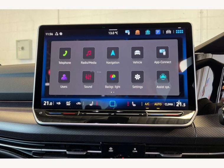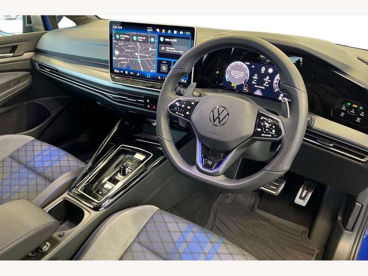 Activated carbon canister, Adaptive cruise control (ACC), Advanced driver attention and drowsiness monitor, Dynamic road sign display, E-Sim card for online connectivity, eCall emergency call system, Multi-color Digital cockpit pro, selection of different info profile possible, Multifunction front facing camera for distance control, Navigation system, Oncoming vehicle braking when turning including swerve support, Side assist blind spot lane change system, rear traffic alert and exit warning system, Speed limiter, Speedo, rev counter, electronic odometer, trip, service interval display, exterior temperature and fuel gauge, Traffic jam assist, Voice enhancer and voice control, Warning signal and warning light for front and rear seatbelts not fastened, We connect plus preparation, We connect preparation, Wireless app connect, All wheel drive - 4Motion, Petrol Particulate Filter, Start-stop system with battery regeneration (recuperation - energy recovery during braking), XDS electronic differential lock for improved traction and handling, 2 USB C ports in front, 2 USB charging sockets on the centre console in the rear charging capacity upto 45W, Digital radio reception (DAB), Diversity antenna for FM reception, Gaming platform via car app, Infotainment system with 12.9" display, Mobile phone interface with inductive charging feature, 3rd brake light, Auto dimming rear view mirror, Automatic headlamp activation with Coming home and Leaving home feature, Body colour door handles, Exterior mirror housings in matte chrome, Exterior mirrors convex on the left and aspherical on the right, Front and rear electric windows, Front fog lamps and cornering light, Heat insulating windshield made of laminated glass, Illuminated lighting animation with wake up/goodbye scenario, LED matrix headlights with ambient light V2, advanced high beam, dynamic range contol with cornering, LED rear lamp with indicator, poor weather, LED separate daytime running light, Light assist with High beam control, R name plate, Rain sensor, Rear fog light on one side and reversing lights on both sides, Rear side wing doors, Rear tinted glass 65% light absorbing from B pillar backwards, Rear windscreen washer and wiper with interval delay, Remote electrically foldable door mirrors, puddle lights and reverse activated passenger's door mirror, Welcome light with surround lighting, 12V socket in front centre console, 12V socket in luggage compartment, 3 rear head restraints, 3 seat bench in 2nd row, 30 colour ambient lighting, illuminated center console storage compartment in front, Air care climatronic 3 Zone automatic climate control with rear air conditioning control panel, Aluminium gearshift handle, Brushed stainless steel pedals, Chrome plated radiator grille inserts, air vent surrounds and light switch surrounds, Entry lights, Front + rear black carpet mats, Front centre armrest, Integrated front head restraints, ISOFIX anchors for child seats on outer rear bench seats and on front passanger seat compatible for i-Size, Luggage compartment lighting, Rear cupholder and loadthough, Single front passenger seat, Soul black instrument panel, Soul black roof lining, Split folding backrest with centre armrest and unsplit rear seat bench, Sun visors with illuminated vanity mirrors, Driver assistance pack - Golf Estate/Hatchback Auto, R styling pack - Golf, Technology park and comfort pro package - Golf Hatchback, 3 point height adj front seatbelts + pretensioners, 3 rear three point seatbelts, ABS, Autonomous emergency braking front assist with pedestrian and cyclist monitoring, Child locks on rear doors, Driver and front passenger airbag with front passenger airbag deactivation, Electronic parking brake with auto hold, ESC (Electronic Stability Control), Extended pedestrian protection measures, Front blue brake callipers with R logo, Hill start assist, Rear disc brakes, Two tone horn, Tyre pressure loss indicator, Volkswagen roadside assistance, Anti theft wheel bolts, Preparation for alcohol interlock, Sporty vehicle dynamics, Tool kit for tyre mobility set, Tyre mobility kit Includes 12V compressor and tyre sealant,