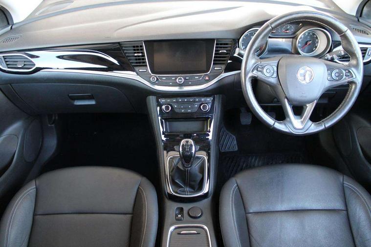 Central facia display with digital clock, outside air temperature and audio information, Digital fuel gauge with low fuel warning light, Digital water temperature gauge with warning light, Electric speed sensitive power steering, Gearshift up/down indication light, Left Key in ignition audible warning, Lights on audible warning, Monochrome colour display in instrument cluster, Multi function trip computer, Navi900 Intellilink Sat Nav, 8" screen, AM/FM/DAB radio/USB/Aux-in, audio streaming, traffic program, shark fin aerial, 6 speakers w/20W per channel, Oil life monitoring system, Rev counter, Service due indicator, Speedometer, 2 USB Power socket for rear seat, Steering wheel mounted audio controls, Adaptive brake lights, Alloy effect front door sill covers, Auto lighting, Automatically dimming anti dazzle rear view mirror, Body colour door handles, Body colour rear roof spoiler, Body coloured door mirrors, Chrome effect upper window trim, Chrome front grille, Chrome headlight surround, Dipping rear view mirror, Door to door illumination, Electric front/rear windows/one touch facility, Front fog lights, Gloss black finish B pillar, Gloss black finish C pillar, Hazard warning lamps, Heated rear screen with timed cut off, High level LED centre rear brake light, Intermittent rear wash/wipe, LED daytime running lights, LED side repeat indicators, Rain sensor windscreen wipers, Rear fog lights, Reversing light, Shark fin roof aerial, Side window demist vents, Solar heat absorbing windscreen and windows, Tinted windows, Tunnel detection for auto light control, Two speed windscreen wipers with variable intermittent wipe, Windscreen demist vents, 12V electrical accessory socket in front, 40:20:40 split folding rear bench seat, Adjustable front armrest, Ambient LED downlighter in facia/centre console, Ambient LED lighting in front door, Black door panels with black leather effect inserts, Black leather effect side bolsters and surrounds, Chrome interior door handles, Driver and front passenger illuminated vanity mirrors with flip up covers, Driver and front passenger sunvisors, Dual zone electronic climate control including air conditioning, Fade up/down courtesy light, Folding storage box on driver side lower facia, Four adjustable facia vents, Four load restraint lashing eyes, Front and rear door pockets, Front centre armrest with storage, Front courtesy lights, Front head restraints, Front red LED ambient lighting, Front seat back storage pockets, Fully carpeted load area, Glovebox with lid, Height adjustable and removable rear head restraints (x3), Illuminated load area, Interior tailgate handle, Isofix child seat mounting points on outer rear seats, Luggage compartment cover, Perforated siena leather upholstery, Reach + rake adjustable steering column, Rear centre armrest, Rear courtesy lights, Satin chrome effect bezel on steering wheel, Storage compartment in centre console, Titanium headlining, Twin front reading lights with illuminated switches, Twin gas assisted tailgate struts, Twin rear reading lights with illuminated switches, Two drinks holders in centre console, Winter Pack - Astra, 3x3 point rear seatbelts, Anti-lock braking system (ABS), Child locks on rear doors, Electronic parking brake, Electronic Stability Programme, Height adjustable front seatbelts, Hill start assist, Passenger airbag deactivate switch, Pedal release system, Seatbelt pretensioners on front/outer rear seats, Seatbelt warning, Six airbags - Driver's dual stage airbag/front passenger's dual stage airbag/front seat side impact airbags/full size curtain airbags, Tyre pressure monitoring system, Electronically protected audio, Engine Immobiliser & Deadlocks, Freewheeling door locks, Locking wheel bolts, Remote control central locking, Remote control ultrasonic security alarm system, Visible vehicle identification number, Black facia with piano black trim inserts, Instrument panel bar in satin chrome, Piano black trim inserts on front doors, Silver air vent surrounds,