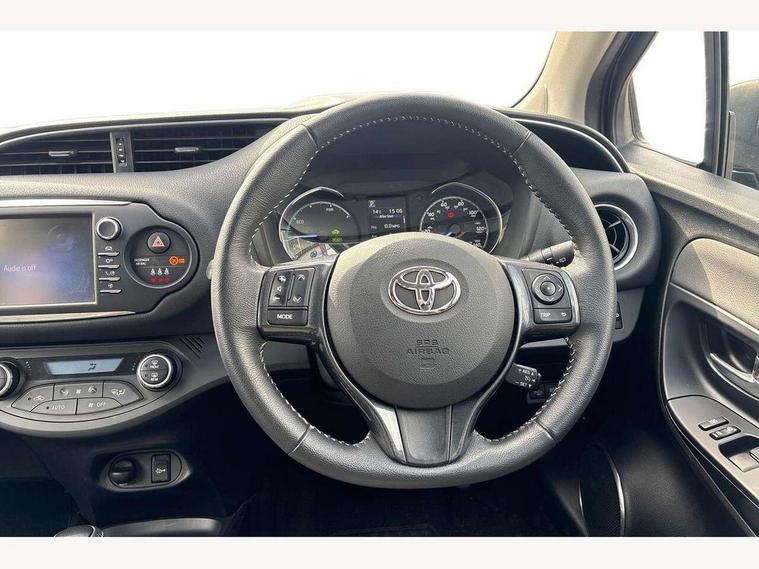 4.2" TFT colour screen, Bluetooth connectivity, Cruise control + speed limiter, Hybrid energy display, Power Steering, Push button start, Reversing camera, Road sign assist - RSA, Vehicle Stability Control (VSC), 6 speakers, DAB Digital radio, Steering wheel mounted audio/telephone switches, Touch 2 touchscreen Radio with iPod connectivity, Auto up and down function on drivers window, Automatic wipers, Bi-tone colour door mirrors, Body colour bumpers, C pillar decal, Chrome surround on front fog lamps, Daytime running lights, Electric adjustable heated door mirrors, Follow me home headlights, Front fog lights, Grey door side sills, Grey front grille and fogs, Grey wing mirrors, LED High mounted stop lamp, Manual dimming rear view mirror, Power front windows, Projector headlights, Rain sensing front wipers, Rear combination lamp, Rear privacy glass, Turning signal integrated indicators in door mirrors, Y20 Badging, 3 rear headrests, 3 spoke leather steering wheel, Dual zone automatic climate control, Fabric upholstery, Front and rear cup holders, Glovebox, Height adjustable driver's seat, Isofix seat fixing, Leather gearshift, Leather parking brake handle, Sliding front seats, 3 point seatbelts on all rear seats, ABS+EBD+Brake assist, Active headrests, Emergency brake light system (EBS), Front passenger airbag on/off switch, Front seatbelt reminder, Hill start assist control (HAC), Rear seat belt reminder, Supplemental restraint system (SRS) airbags - 7 airbags including driver, front passenger, curtain, side and knee airbags, Toyota safety sense including Road sign assist, Pre collision system, auto high beam and lane departure alert), Tyre pressure warning system, Engine immobiliser, Power and remote door locking, Interior satin accents, Soft touch instrument panel, 16" Grey machined alloy wheels, Space saver spare wheel,
