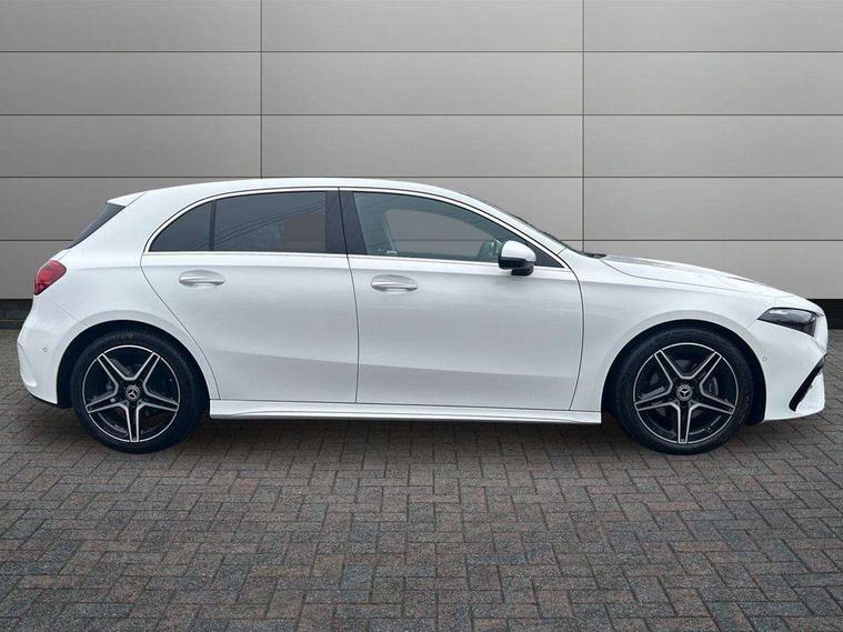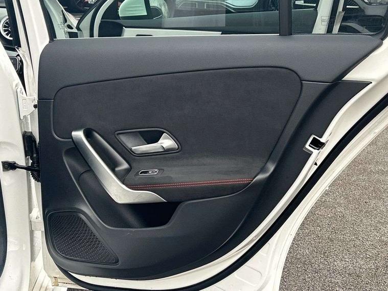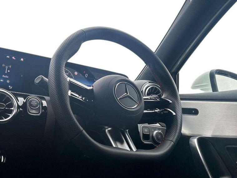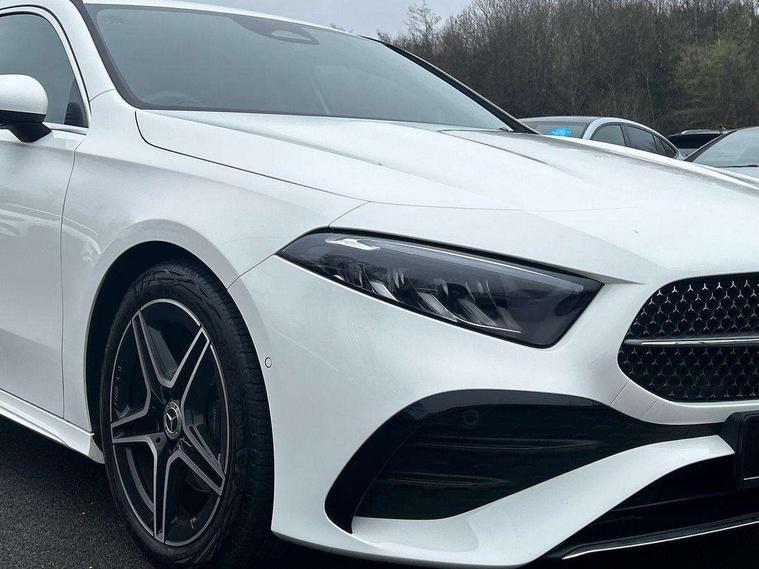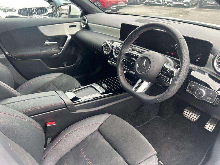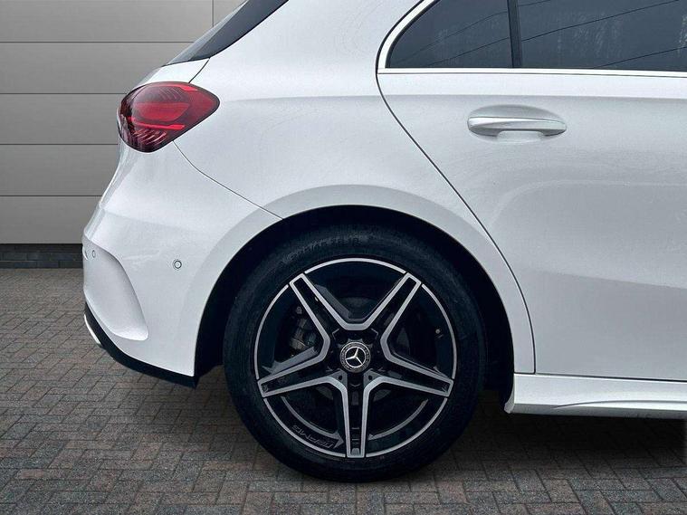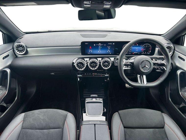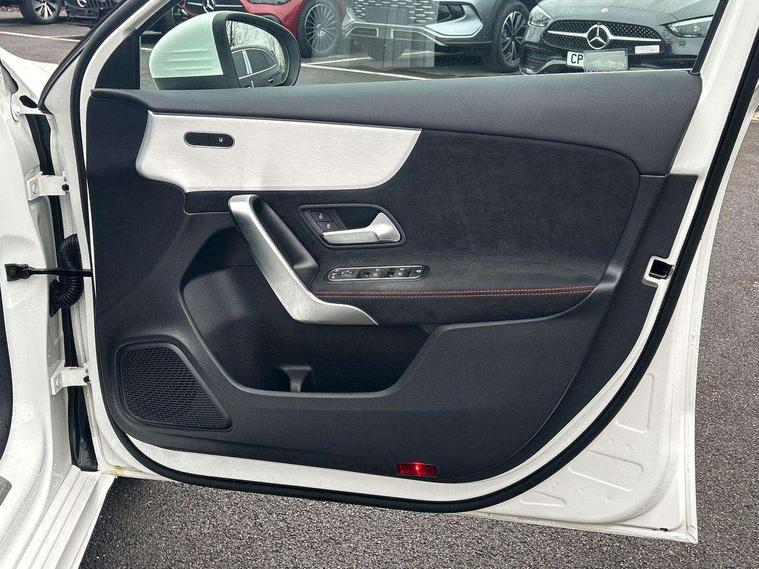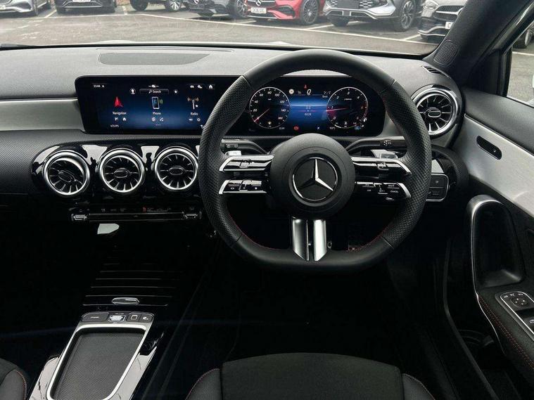 10.25 inch touchscreen central media display, 10.25" Digital instrument cluster display screen, Attention assist, Blind spot assist, Brake pad wear indicator warning light, Car wash mode, Cruise control + speed limiter, Direct steering, Direction indicators with lane change function, Dual bluetooth interfaces, DYNAMIC SELECT with a choice of driving modes (ECO, Comfort, Sport and Individual), ECO start/stop function, Engine start/stop button, Fluid level warning indicator for fuel, oil, coolant and washer fluid, Fluorescent jacket for driver, Hard-disk navigation, Hey Mercedes Voice activation, Lamp failure indicator, Lane keeping system, Mercedes me connect including emergency call system, accident recovery, breakdown and maintenance management, Mercedes me remote services, Outside temperature gauge, Owners manual in English, Pre-installation of private car share, Remote boot closing, Service indicator (ASSYST), Smartphone integration with Apple CarPlay and Android auto, Speed limit assist, Speed sensitive power steering, Tailgate, Trip computer in multifunction display with current consumption indicator, Wireless charging, Lowered comfort suspension, DAB Digital radio, MBUX multimedia system, Mercedes Benz sound system (100 W) with 6 speakers, 4 Electric Front and Rear windows, Adaptive brake lights, AMG body styling - AMG front apron with front splitter and AMG rear apron and visible exhaust tailpipe trim elements, Body colour bumpers, Body colour door handles with chrome inserts, Body colour side skirt, Chrome beltline strips, Diamond radiator grille with pins in fine star pattern, Electric adjustable and heated door mirrors with integrated LED side indicators, Exhaust system with 2 visible tailpipe trim elements and rear apron, Headlamp assist automatic headlamp activation, Heated glass rear windscreen + timer control, LED High level third brake light, LED High Performance headlamps including integral LED daytime running lamps and adaptive highbeam assist, LED tail lamp, Privacy glass, Radio aerial, Rain sensing windscreen wipers with two sensitivity settings, Rear fog lights, Rear side wing doors, Rear windscreen wiper, Window line trim strip in chrome, 3 seat bench in 2nd row, 3 Spoke flat bottom leather multi function steering wheel with perforated leather in grip area, 4 way lumbar support, 40:20:40 split folding rear seats, Air conditioning - One zone THERMATIC automatic climate control with automatically controlled air distribution, AMG floor mats, Artico man-made leather/Microcut microfibre upholstery, Automatic child seat recognition sensor, Black air vents with surround in silver chrome, Black roof lining, Brushed stainless steel sports pedals with rubber studs, Front centre armrest with stowage, Front door sills with Mercedes Benz lettering, Front seat backs luggage nets, Galvanished gear shift paddles on steering wheel, Heated front seats, Height/reach adjustable steering column, Interior lighting - 64 colour Ambient lighting, Interior mirror with reading lamps in black and frameless, Rear armrest with 2 cupholders, Rear head restraints, Seat occupancy sensor for front passenger seat, Single front passenger seat, Sports seats with integrated headrests, Stowage compartment in centre console with retractable cover, Sunvisors with illuminated vanity mirrors, Twin front cupholders, Light and sight package - A Class, Mirror package - A Class, Parking pack with 180 degree view - A Class, Seat comfort pack - A Class, USB pack plus - A Class, 3 rear 3 point seatbelts, ABS with Brake Assist, Active bonnet, Active brake assist includes forward collision warning system with autonomous braking, Adaptive brake assist with hold function and hill start assist, Bonnet with power domes, Childproof locks manually operated for rear doors and electrically operated for rear power windows, Crash responsive emergency lighting, Driver and passenger head and side airbags, Drivers knee airbag, Dual stage driver/passenger airbags, Electronic parking brake, ESP curve dynamic assist, ESP with ASR, Front and rear seatbelt reminder, ISOFIX and top tether child seat fixing points in two outer rear seats, Tyre pressure monitoring system, Warning triangle and first aid kit, Window airbags, Alarm system/interior protection/immobiliser, Guard 360 degree vehicle protection, Keyless entry lock/unlock, Keyless Go, Remote central locking and crash sensor with emergency opening function, Black seatbelts, Light longitudinal grain aluminium trim, 18" AMG 5 twin spoke light alloy wheels, aerodynamically optimised, painted in black with high sheen finish, Summer tyres, Tirefit sealant kit,
