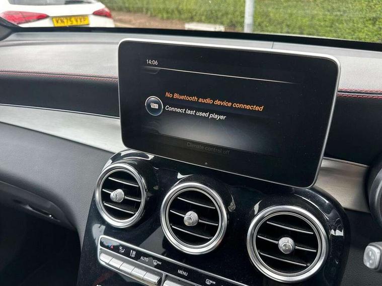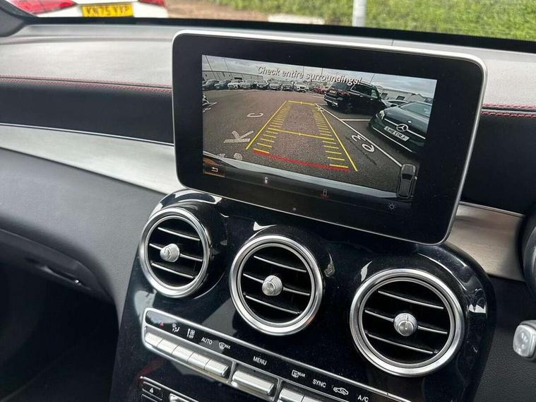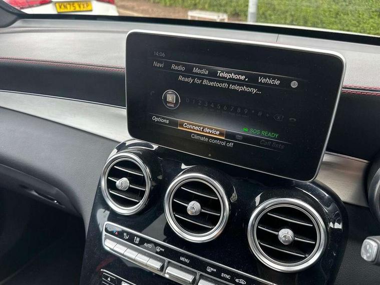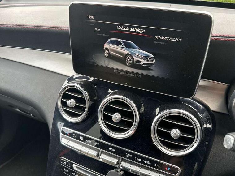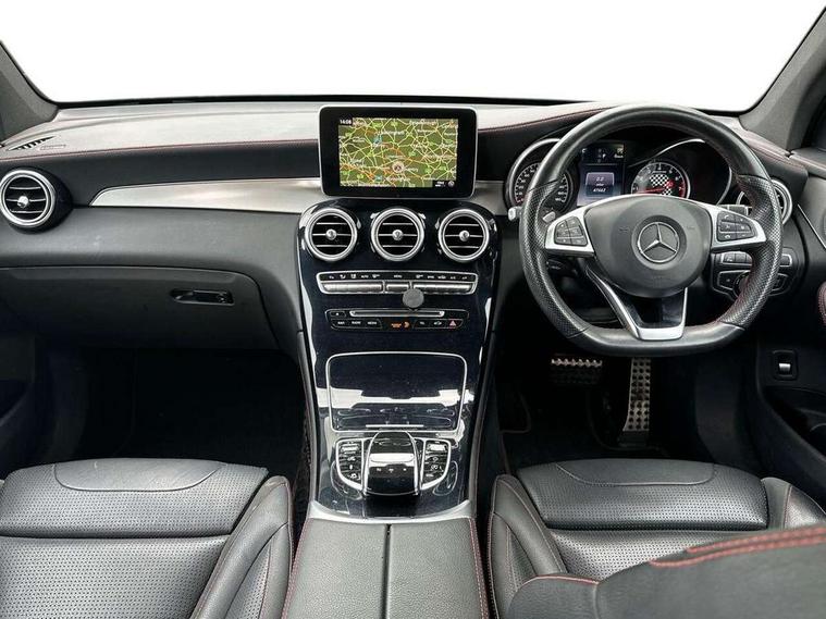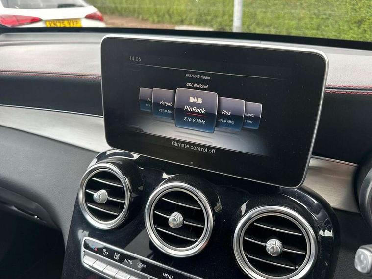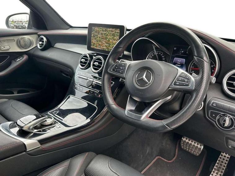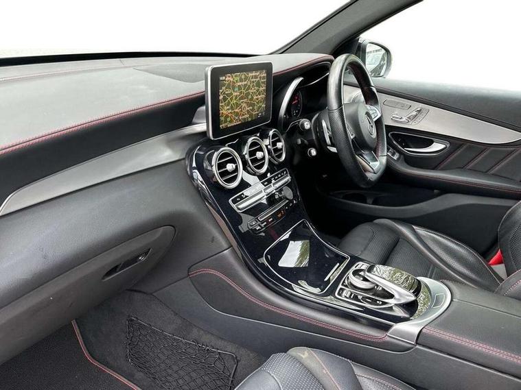 Active park assist with parktronic system, Attention assist, Bluetooth interface for hands free telephone, Collision prevention assist, COMAND online nav with colour display, radio/CD/DVD/MP3, SD card, 10GB music, Emergency Call system, speed limit assist, linguatronic voice control, Crosswind Assist, Cruise control with speedtronic variable speed limiter, DYNAMIC SELECT with a choice of driving modes (ECO, Comfort, Sport, Sport+ and Individual), Multi function trip computer, Outside temperature gauge, Power opening/closing tailgate, Remote boot release, Speed sensitive steering, Touch pad controller for infotainment system, Traffic sign recognition, Air suspension, Burmester surround sound system, DAB Digital radio, USB connection, Adaptive brake lights, Aerodynamic rear spoiler, AMG bodystyling, AMG door sills, Automatic headlights, Body coloured bumpers, Diamond grille with integrated star chrome pins, Electric panoramic sunroof with sunblind, Electric windows one touch open/close, Electrically adjustable and heated door mirrors, Heated windscreen washers, LED daytime running lights, LED rear lamps, Privacy glass (to rear of B post), Rain sensor windscreen wipers, Range adjustable headlights, Rear wiper, Tinted glass all round, Twin exhaust tailpipes x2, 2 cupholders in front centre console, 2 way rear head restraints, 3 Spoke sports multifunction flat bottomed leather steering wheel, 4 way adjustable front head restraints, 4 way electric lumbar support for driver and front passenger, 40:20:40 split folding rear seats, AMG sports seats, Auto Mercedes-Benz child seat recognition sensor, Automatic climate control, Black floor mats with coloured piping, Black roof lining, Dividing net - rear, Electric front seat height adjustment, Gearshift paddles, Heated front seats, Height/reach adjustable steering column, Illuminated glovebox, LED interior illumination, Multifunction steering wheel, Rear top tether child seat ISOFIX attachment, Sports pedals with stainless steel surfaces and rubber studs, Sunvisors with illuminated vanity mirrors, Easy-pack load compartment cover, Interior lighting pack - GLC, Memory pack - GLC, Mirror pack - GLC, Storage pack - GLC, 3 rear 3 point seatbelts, ABS with Brake Assist, Active bonnet, Adaptive brake system, Child proof door locks, Drivers knee airbag, Dual stage driver/passenger airbags, Electronic parking brake, ESP with ASR, Front and rear seatbelt reminder, Front passenger seat occupancy sensor, Front side airbags, Red seat belts, Tyre pressure monitoring system, Warning triangle and first aid kit, Window airbags, Alarm system/interior protection/immobiliser, Automatic door locking, Keyless entry and keyless start, Remote central locking, Artico upholstered dashboard, Tyre inflation kit,