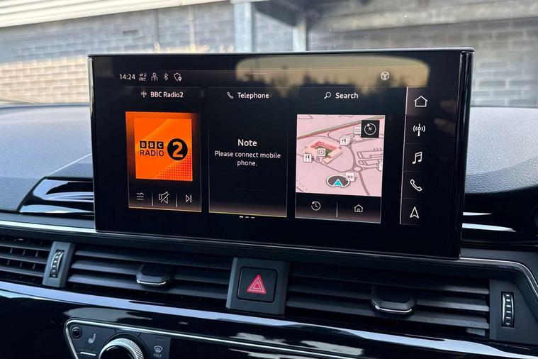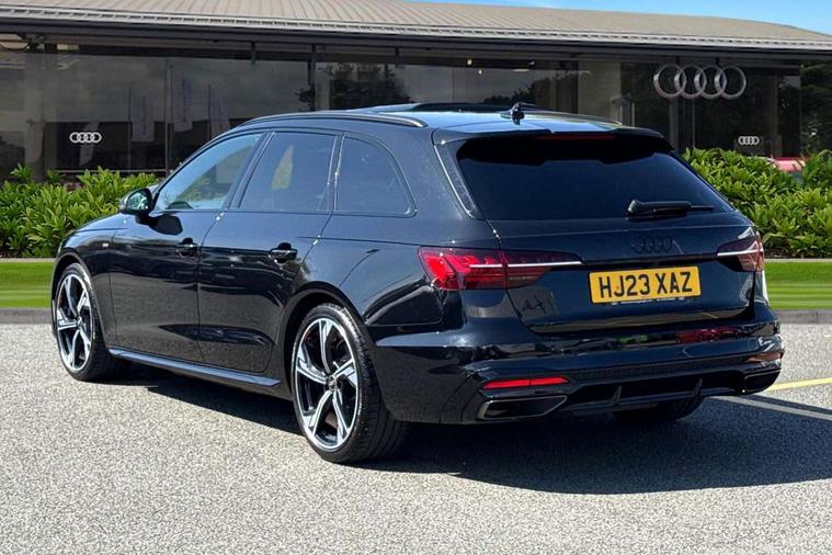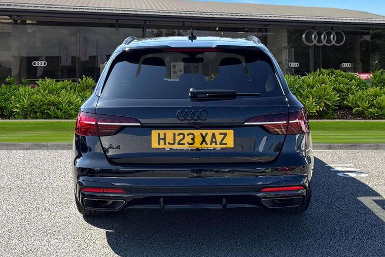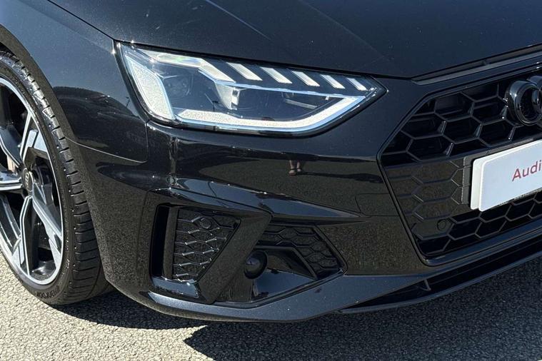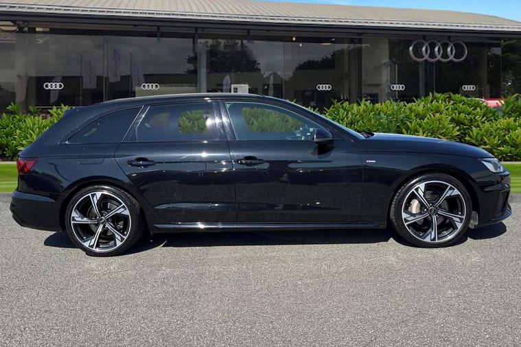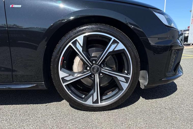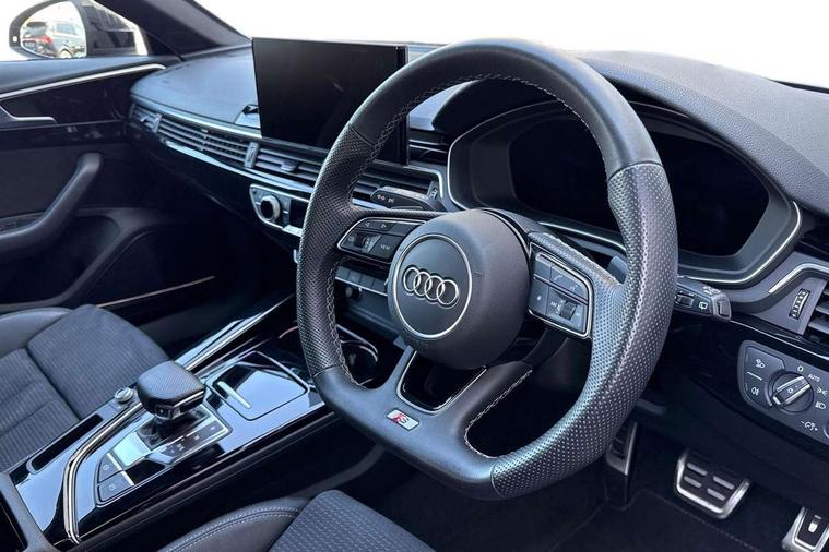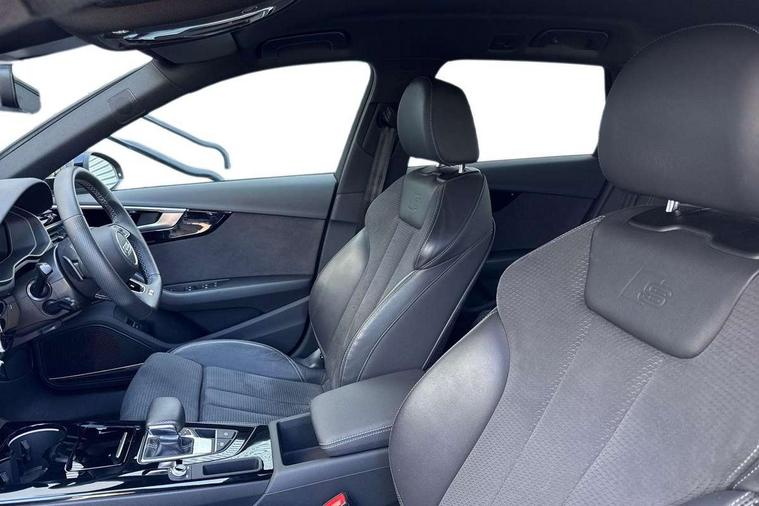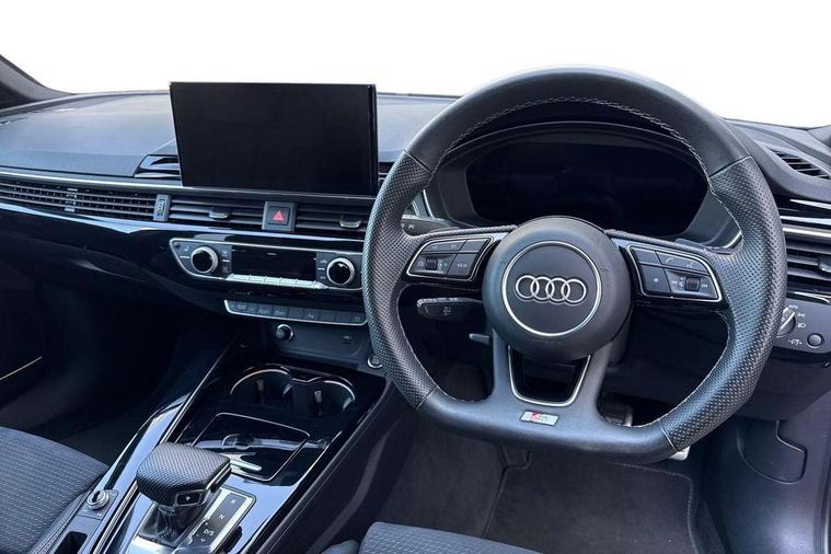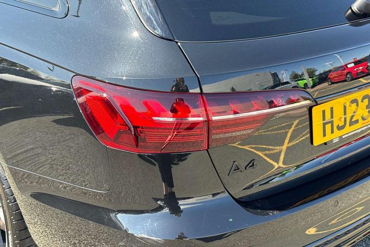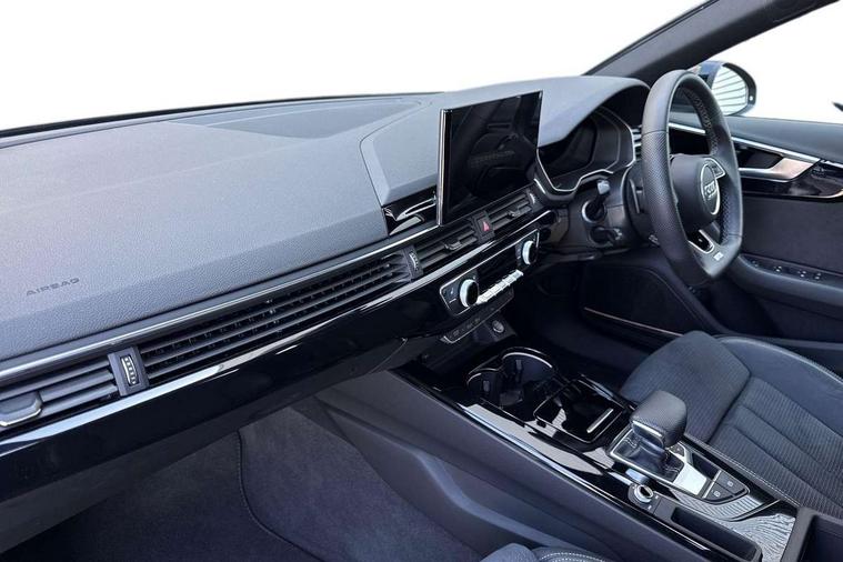 Audi connect safety and service (e-call), Audi connect with Amazon Alexa Integration, Audi drive select, Audi smartphone interface, Audi virtual cockpit, Automatic start-stop system with coasting functionality and efficiency programme, Bluetooth interface, Electromechanical power steering, Email, calendar and text messages displayed via MMI, Front and rear parking sensors, MMI Navigation plus with MMI touch includes 10.1" high resolution colour MMI display, 3D map, Power operated tailgate, Rear view camera, Voice control system, 54 litre fuel tank, Sports suspension lowered by 23mm, 2 USB charging ports, 8 passive loudspeakers, DAB digital radio reception, Audi beam uses LEDs to project the audi logo onto the ground as you exit your A4, Auto dimming rear view mirror, Black Audi rings and black badging (model name in black badging, no engine badging), Body colour door handles, Body colour front spoiler lip, Body colour side sill trim, Electrically folding auto dimming/adjustable/heated door mirrors with LED side indicators and kerb view function for passenger side, Exhaust tailpipes in high dark chrome, Grained matt black side air inlets with matt aluminium silver inlay, High beam assistant, High gloss black B pillar trims and triangular rear door trim, LED headlights with LED rear lights + dynamic rear indicators + headlight adjustment and high beam, turning light + LED daytime running lights, LED third brake light, Privacy glass, Rain and light sensors, Rear diffuser in matt black with trim strip in matt aluminium silver, Rear side wing doors, Rear wiper, RS4 rear spoiler in body colour, S Line roof edge spoiler, Sport front and rear bumpers with side skirts, Variable intermittent front wash/wipe, Windscreen with acoustic glazing, 4 way electric lumbar support for driver and front passenger, 40/20/40 split folding 3 rear seat bench in 3 parts with rear centre armrest, Black cloth headlining, Black perforated leather gearknob, Contrast stitching on seats, steering wheel and gear lever gaiter, Deluxe 3 zone electronic climate control, Door sill trims with aluminium inlay, Electric load area cover, Front and rear head restraints, Front centre armrest, Heated front seats, Illuminated door sill trims with S logo, ISOFIX child seat mounting and top tether, Manual seat adjustment, Single front passenger seat, Stainless steel pedals and foot rest, Tool kit, Black styling pack - A4 Avant, LED Interior light pack - A4/S4, 3 rear seatbelts, 6 airbags - Driver, front passenger, curtain and side windows, Electronic Stabilisation Control (ESC) including ABS, ASR and EDL, Hill hold assist, Multi collision brake assist, Pop-up bonnet for pedestrian protection, Pre sense city, Rear door child safety locks, Seatbelt monitoring, Warning triangle and first aid kit, Anti theft alarm, Anti theft wheel bolts, Central locking, Keyless Go, Piano black finish inlay, Tyre repair kit,