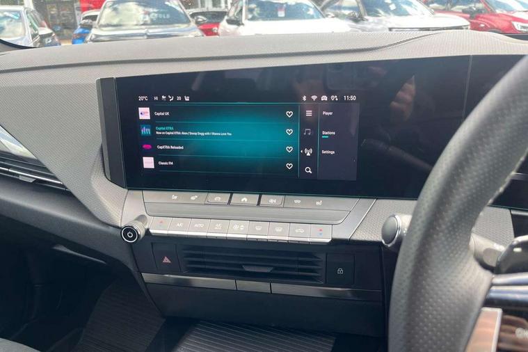 2D/3D street level mapping, Adaptive cruise control with intelligent speed adaption, Bluetooth connectivity, Breakdown call (b-call), Customizable screen adaption with enhanced profile management and driver recognition, Digital central facia display with audio info, digital clock with automatic RDS time adjustment and Outside air temperature with ice warning function, Digital instrumentation - Speedometer, rev counter, satellite navigation display, low fuel & water temperature warning light, shift up/down indicate light, Drive mode selector (Eco, Normal, Sport), Drive Smart - Live navigation provided by TomTom and Real time traffic news, Driver drowsiness alert system, Driver information display - Total mileage, service due indicator, oil life, eCall emergency system, European coverage, Extended traffic sign recognition, Front and rear parking distance sensors, Handsfree calls via steering wheel controls, In-crash braking, Intelli vision 360 degree panoramic parking camera, Intelli-HUD (Extended heads up display), Lane change assist, Lane departure warning with lane keep assist, Lane positioning assist, Lights on audible warning, Multifunction trip computer - Trip mileage, vehicle range, average speed and fuel economy, instantaneous fuel economy and driving time, Natural voice recognition with satellite navigation commands, phone connectivity functions, choice of music playback and operation of electronic clima, Over the air updates and WiFi updates, PAS, Phone book access, Points of interest search and Map updates via USB, Pure Panel pro 10" Digital instrument cluster and 10" Infotainment colour touchscreen with full glass execution, RDS with traffic programme, Rear cross traffic alert, Service interval indicator, Shift paddles, Side blind spot alert, Speed sign recognition, Vauxhall connect, Vehicle microphone, Vehicle status and information, Wireless charger for mobile devices, 8 Speakers, AM/FM stereo radio with 36 station presets, DAB Digital radio, Front USB connection with iPod control, Smartphone interface with Apple CarPlay, Android Auto and Wireless smartphone projection, Steering wheel audio, phone and cruise controls, Active bonnet/headlight/wiper structure, Adaptive brake lights, Automatic lighting control, Black door mirrors, Black Griffin logo and vizor frame, Black lower window frame moulding, Body colour sports style bumpers with high gloss black lower front grille decor blade and rear valance panel, Body coloured door handles, Dark tinted rear windows, Door to door illumination, Electrically adjustable tilt/slide panoramic glass sunroof with blind, Electrically operated front and rear windows with safety auto reverse and one touch up/down facility, Frameless automatic anti dazzle rear-view mirror, Heated rear window, Heated windscreen, High beam assist, IntelliLux adaptive LED pixel headlights, Intermittent rear window wash/wipe, LED daytime running lights, LED front fog lights, LED side repeat indicators, LED tail lights, LED third brake light, Rear side wing doors, Shark fin aerial, Soundproof insulated windscreen, Twin electric adjustable/heated/power folding door mirrors + puddle lights, Two speed rain-sensitive windscreen wipers with variable intermittent wipe, Windscreen and side window demist vents, 10 way electric adjustable drivers seat, 12V electrical accessory socket in front, 3 seat bench in 2nd row, 60/40 split folding rear seat, Alloy effect sports pedals, Ambient light (customisable with 8 colours), Black headliner, Centre rear seat armrest and load through facility, Chrome effect interior door handles, Driver and front passenger ergonomic active sports-style seat (AGR approved), Driver's and front passenger's sunvisors, Dual zone electronic climate control, Eight way adjustable height, reach, backrest, head restraint, seat cushion extension in front passengers seat, Fade up/down front and rear courtesy light, Flex load floor, Folding storage box on driver side lower facia, Four adjustable facia vents, Four lashing eyes in load compartment, Four way electrical lumbar adjustment, Front and rear seatbelts, Front centre armrest with cupholder, Front door pockets, Front head restraints, Fully carpeted load area, Glovebox with lid, Heated front seats, Heated outer rear seats, Heated steering wheel, Heating, ventilation and air Conditioning (HVAC) user interface, Illuminated load area, Illuminated vanity mirrors, Interior tailgate handle, Isofix child seat mounting points on outer rear seats, Luggage compartment cover, Pollen filter, Reach and rake adjustable steering column, Rear centre headrest, Rear door pockets, Rear head restraints, Rear reading lights, Rear seat load through facility with armrest and cup holders, Single front passenger seat, Storage compartment in centre console, Three spoke flat bottom perforated leather covered steering wheel, Twin gas assisted tailgate struts, Two drinks holder in centre console, 3x3 point rear seat belts, 8 Airbags - Drivers and front passengers airbags, Front seat side-impact airbags and Full-size curtain airbags, Anti-lock braking system (ABS), Automatic emergency braking with pedestrian detection, Child locks on rear doors, Cornering brake control, Deactivation switch for front passengers front and side impact airbags, Drag torque control, Electronic brake force distribution, Electronic parking brake, Emergency brake assist, ESC - Electronic Stability Control + traction control, Fading brake support, Forward collision alert at all speed, Front and outer rear seatbelt force limiters, Hill start assist, Outer rear seatbelt pretensioners, Rollover mitigation, Seatbelt unfastened audible warning and warning light, Straight line stability control, Tyre pressure monitoring system, Upper and lower bumper design to reduce upper and lower leg injuries, Deadlocking system, Key left in ignition audible warning, Keyless entry and start, Locking wheel nuts, Remote control central locking, Remote control ultrasonic security alar