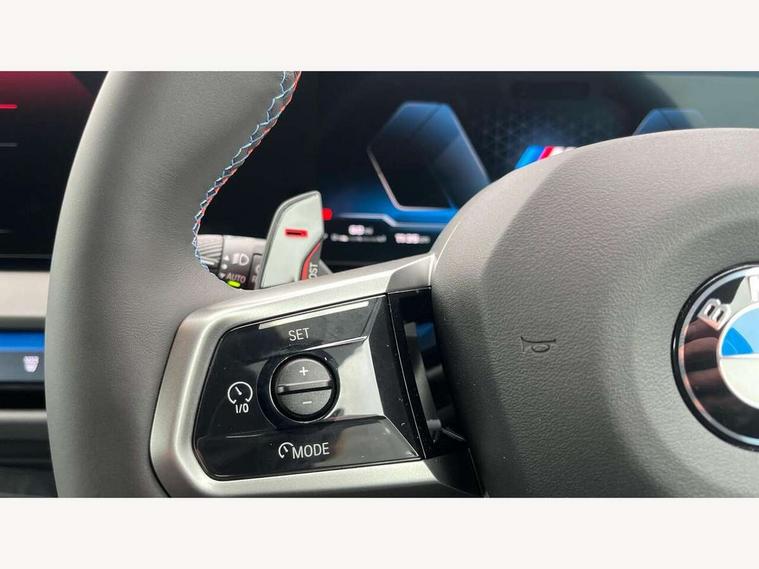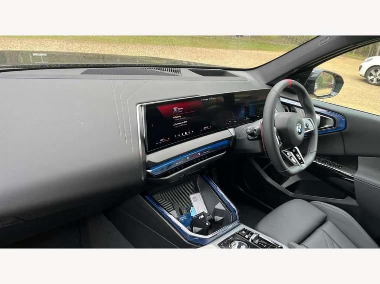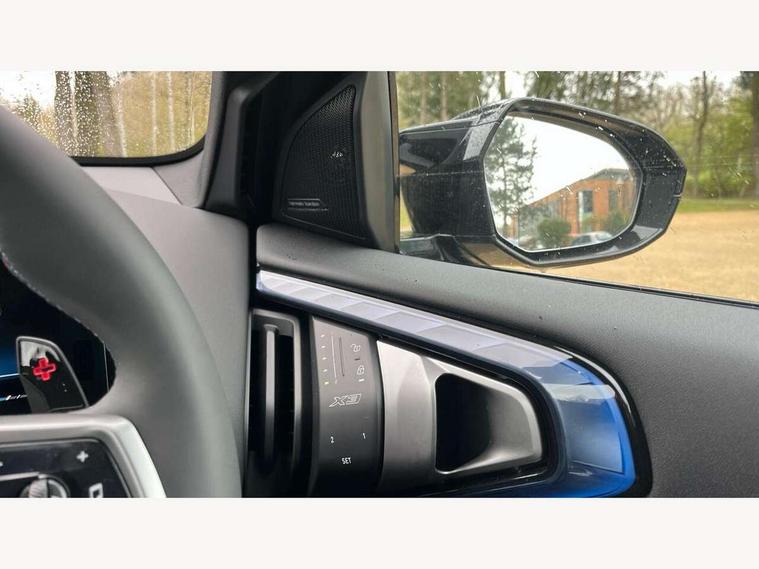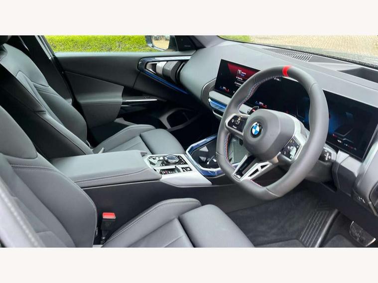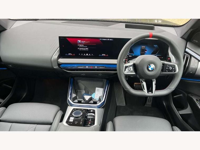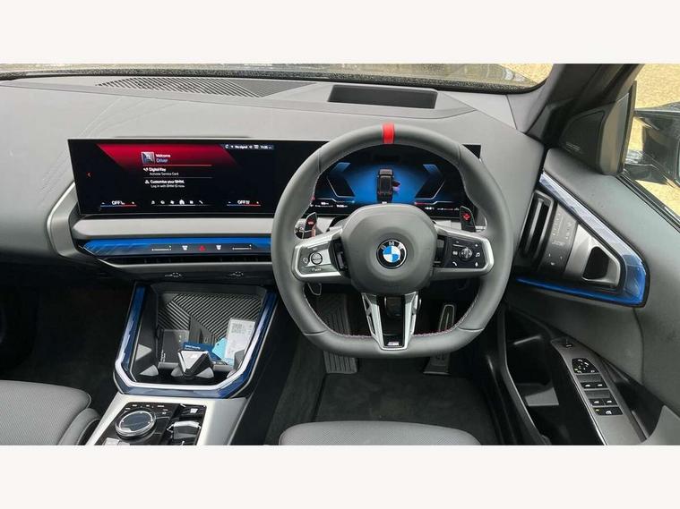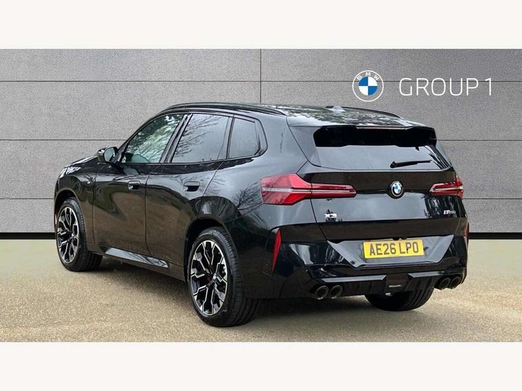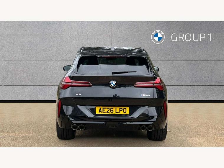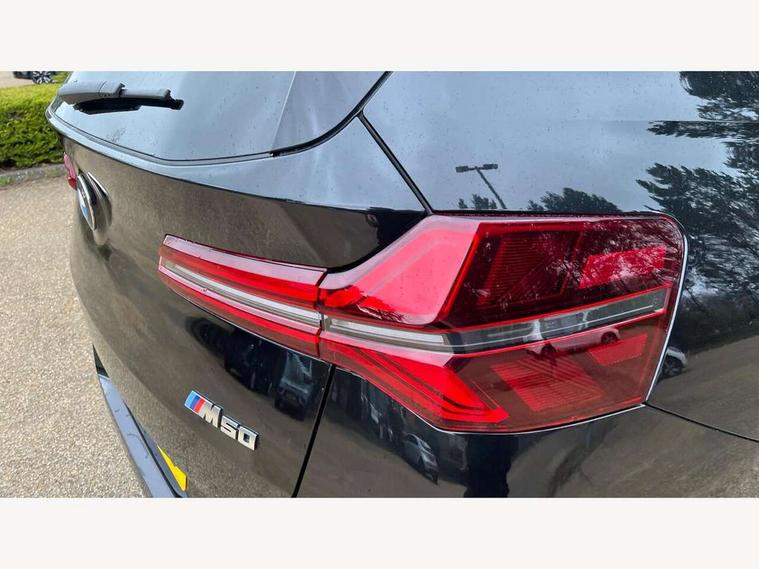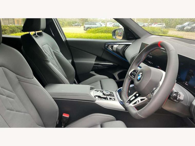 Active Guard, Attentiveness assist, Automatic operation of tailgate, BMW ConnectedDrive online services, BMW iDrive, BMW Teleservices, Brake pad wear indicator, Condition based service, Drive off assistant, Language version English, My Mode - Personal, Efficient, Sport, Relax, Expressive, Servotronic system, Variable sport steering, Dynamic stability control, Multiple control arm rear axle, Steptronic transmission with gearshift paddles, Two-joint strut-type front axle with tension strut, DAB tuner, Personal eSim, Adaptive LED Headlights, B-pillar trim panel in black high-gloss, BMW badge on front and rear, BMW M-specific front/rear bumpers and side sills, BMW radiator grille, Body colour mirror caps, Door handles flush to the surface with lock barrel on driver's side is illuminated and in vehicle colour, Driver's door mirror memory, Dynamic brake lights, Electric adjustable and heated door mirrors, Electric window trap release and convenient opening/closing feature, Headlight beam throw control, Heated rear window, Heated windscreen washer jets, High beam assistant, Invisible tailpipe trims, LED 3rd brake light, LED daytime running lights, LED rear lights, LED turning indicators, Locking of the doors, M high-gloss shadowline, Mirror base and mirror blade in black high-gloss, Mirror triangle in black high-gloss, Rain sensor with automatic headlight activation, Rear side wing doors, Rear wiper, Reversing light, Side window frame in black high-gloss, Sun protection glass, Windscreen wipers, 12v power socket in front centre console and luggage compartment, 2 x USB Type C ports for charging and data transmission (front centre console) and 2 x USB Type C ports for charging (rear centre console), 3 rear headrests, 3 seat bench in 2nd row, 3 zone automatic air conditioning, 40:20:40 split folding rear seats, Ambient lighting, Anthracite floor mats, Anthracite headlining, Electric adjustable seats with memory function, Floor mats in velour, Footrest and pedals in black plastic, Four grab handles integrated in roof lining, Front armrest with integrated control panel, Front centre console trim in black high-gloss, Front head restraints, Front sports seats, Glove compartment, i-Size / ISOFIX attachment points on both outer rear seats, with covers in black, Interior door handles in dark chrome, Luggage compartment separating net, M sport leather steering wheel, Multifunction steering wheel, Rear side armrests integrated into door trim, Selector lever with toggle operation, Single front passenger seat, Steering column adjustment, Sun visors with illuminated vanity mirrors, Three upper retaining strap clips integrated into the rear panels of the seat backrests, Through loading system, Two front cupholders and two in the rear center armrest, Wireless charging tray, Connected pro package - X3, Driving assistant package - X3, Interior and exterior mirror package - X3, M Sport pro pack - X3, 3 point seatbelts, Airbag deployment is controlled with respect to the intensity and scope, Anti-lock braking system (ABS), Automatic hold function, BMW emergency call, Brake assist, Brake drying, Brake energy regeneration, Braking readiness, Central airbag, Child locks on rear doors, Cornering brake control (CBC), Crash Sensor - activation of central locking release, hazard warning light and interior lighting, Driver and front passenger front and side airbags, Dynamic brake control, Electromechanical parking brake, First aid kit, Front and rear disc brakes, Head airbags, Integrated braking system, Post Crash Collision Warning with braking function, Trailer stability control, Tyre pressure sensor, Warning triangle, Alarm system, Closing system with central locking, Comfort access system with BMW digital key plus, Locking wheel bolts, Start/stop button with keyless motor start with acoustic drive, Seam vents in instrument panel, Tyre repair kit plus,