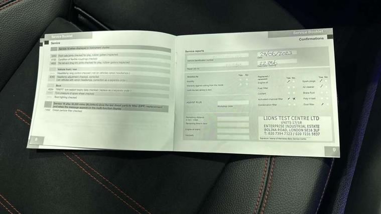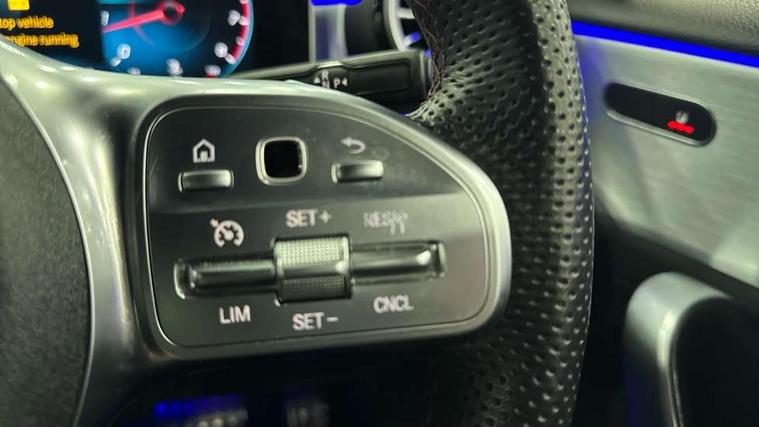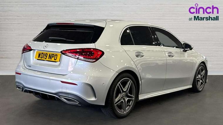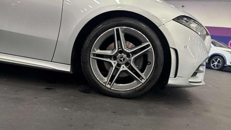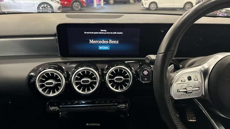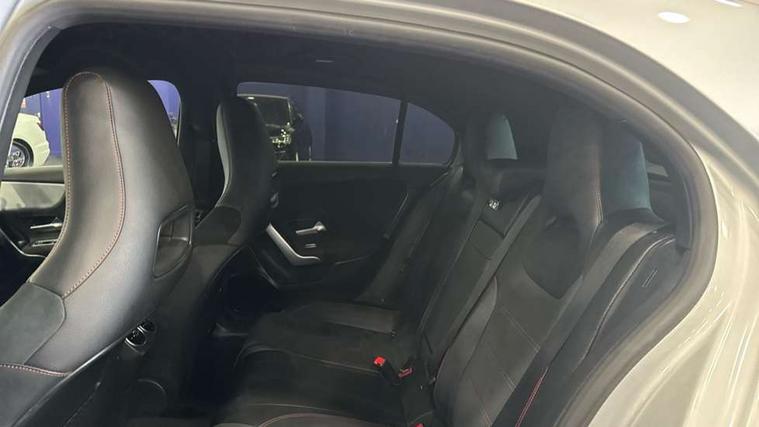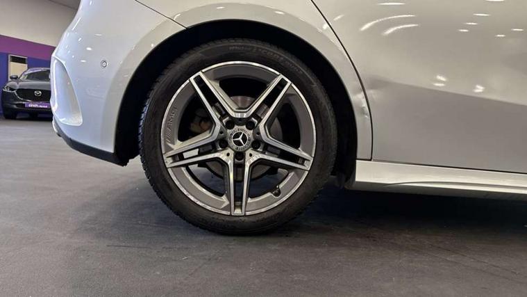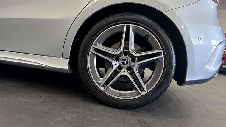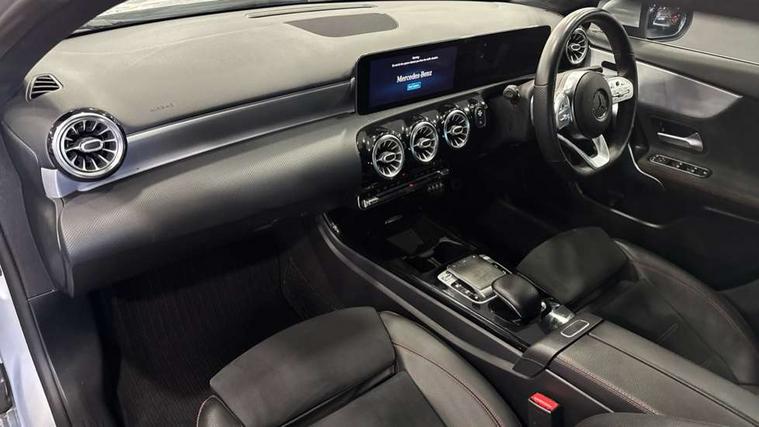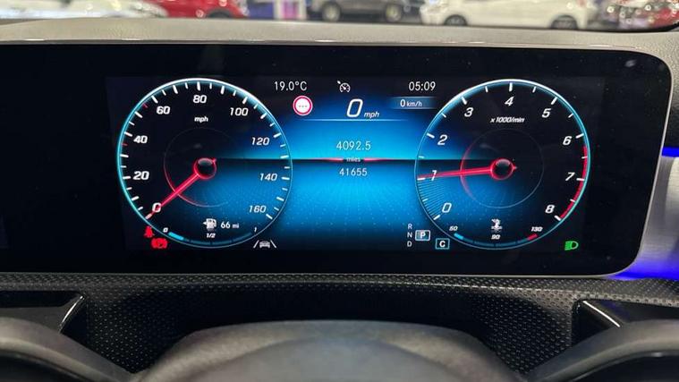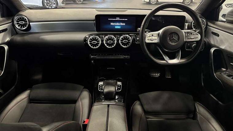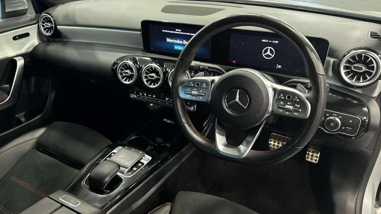 10.25" Digital instrument cluster display screen, 180 degree rear view camera with parking guidelines, Active lane keep assist, Active park assist with parktronic system including front and rear parking sensors, Attention assist, Brake pad wear indicator warning light, Direct steering, DYNAMIC SELECT with a choice of driving modes (ECO, Comfort, Sport and Individual), ECO start/stop function, Fluid level warning indicator for fuel, oil, coolant and washer fluid, Hard-disk navigation, Hey Mercedes Voice activation, Lamp failure indicator, Mercedes me connect including emergency call system, accident recovery, breakdown and maintenance management, Outside temperature gauge, Radio aerial integrated into roof spoiler, Service indicator (ASSYST), Speed sensitive power steering, Trip computer, Lowered comfort suspension, DAB Digital radio, Dual bluetooth interface, 2 USB ports (type C), MBUX multimedia system with DAB digital radio and touchpad including satellite navigation, Mid-range sound system, 4 Electric Front and Rear windows, Active aerodynamics with AIRPANEL in the front apron, Adaptive brake lights, AMG front, rear apron and side skirts, Blue tinted glass, Body colour bumpers, Body colour door handles, Body colour side skirt, Body coloured door mirrors, Chrome beltline trim, Diamond radiator grille with chrome pins and silver louvre + chrome insert, Electric adjustable and heated door mirrors with integrated LED side indicators, Exhaust system - Twin trapezoidal tailpipes in polished stainless steel, Headlamp assist automatic headlamp activation, Heated glass rear windscreen + timer control, LED high performance headlamps with integrated LED daytime running lights, LED tail lamp, LED third brake light, Privacy glass, Rain sensor windscreen wipers, Rear fog lights, Rear wiper, 12V socket, 3 Spoke flat bottom leather multi function steering wheel with perforated leather in grip area, 40:20:40 split folding rear seats, Air vents surround and cruciform nozzle in silver chrome, AMG floor mats with red stitching, Artico man-made leather/Microfibre Dinamica upholstery with red contrast stitching, Auto Mercedes-Benz child seat recognition sensor, Black roof lining, Brushed stainless steel sports pedals with rubber studs, Controller on centre console with chrome surround, Cup holder and stowage compartment lighting, Freight packaging without tie-down hooks, Front centre armrest with storage compartment, Front door sills with Mercedes Benz lettering, Front footwell lights, Front reading lamps in left and right console downlighter, Front seat backs luggage nets, Front seat cushion length adjustment, Front signal exit lamp, Front vanity lights, Gearshift paddles on steering wheel, Handle recess/closing light, Heated front seats, Height/reach adjustable steering column, Illuminated door sills, Illuminated glove compartment stowage, Interior lighting - 64 colour Ambient lighting, ISOFIX Child seat top tethers and anchor fixings, Luggage compartment cover, Manual height adjustable front seats, Oddments tray lighting, Rear armrest, Rear head restraints, Rear Reading Lamps, Seat occupancy sensor for front passenger seat, Spectacles compartment for driver, Sports seats with integrated headrests, Storage compartment under load area floor, Stowage compartment in centre console with retractable cover, Sunvisors with illuminated vanity mirrors, Touchpad, Touchpad illumination, Twin front cupholders, Two zone thermotronic luxury automatic climate control, Light and sight pack - A Class, Mirror package - A Class, Seat comfort pack - A Class, 3 rear 3 point seatbelts, ABS with Brake Assist, Active bonnet, Adaptive brake assist with hold function and hill start assist, Childproof locks manually operated for rear doors and electrically operated for rear power windows, Crash responsive emergency lighting, Driver and passenger head and side airbags, Drivers knee airbag, Dual stage driver/passenger airbags, Electronic parking brake, ESP curve dynamic assist, ESP with ASR, Front and rear seatbelt reminder, Front brake callipers with Mercedes Benz lettering, Tyre pressure monitoring system, Warning triangle and first aid kit, Window airbags, Alarm system/interior protection/immobiliser, Keyless entry lock/unlock, Remote central locking and crash sensor with emergency opening function, Black seatbelts, 18" AMG 5 twin spoke light alloy wheels in titanium grey with highsheen finish, Summer tyres, Tirefit sealant kit,