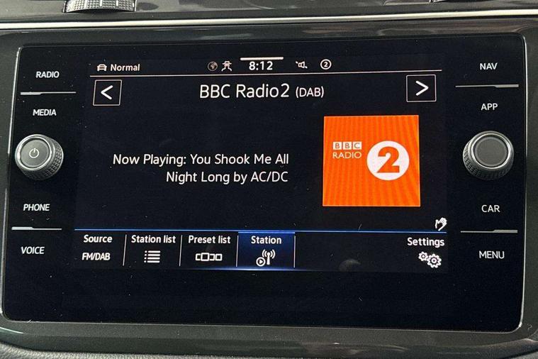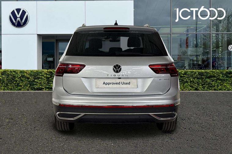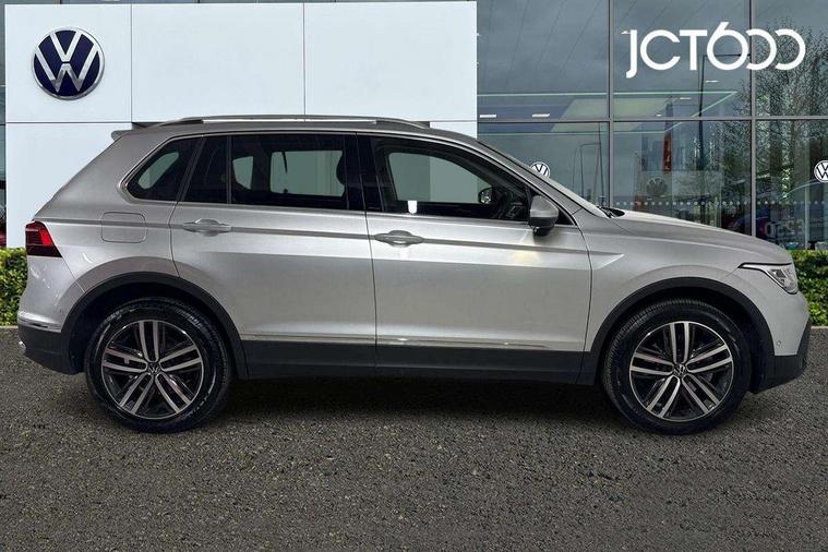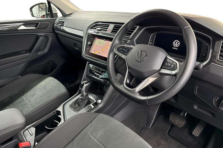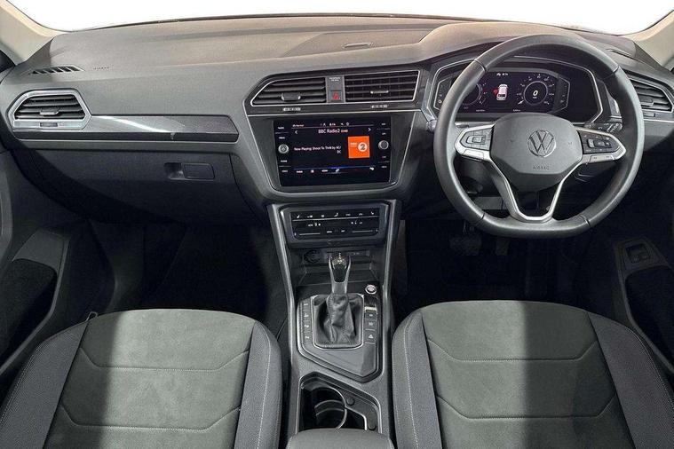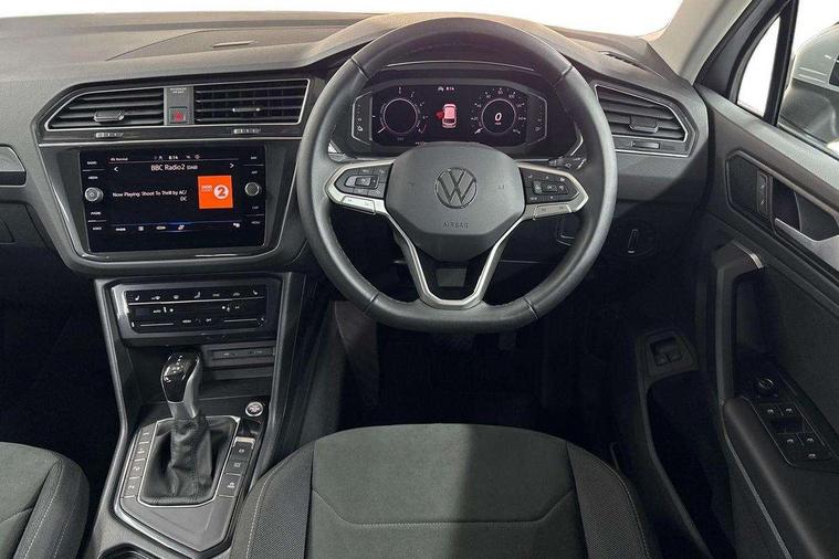 Adaptive cruise control ACC stop and go including speed limiter, App-Connect incl. App-Connect Wireless for Apple CarPlay and Android Auto, Bluetooth phone integration system, Distance control assist, Driver alert system, Driver profile selection, Dynamic road sign display, eCall emergency call system, Electromechanical speed sensitive power steering, Engine start/stop button, Lane keeping system Lane Assist, Lights on warning, Motorised electric tailgate operated via key fob, drivers door and foot movement under tailgate, Multifunction front facing camera, Outside temperature display, Premium multifunction display with multi colour display, Remote control boot opening, Rev counter, Revision / skills operating concept travel assistant, Service interval indicator, Speed limit display, Start/stop system with regenerative braking, Tailgate/trunk lid unlocking from outside, Trip computer, Warning sound and light for doors and tailgate open, Battery regeneration during braking, Charging cable Mode 3 Type 2 / 3 (16A), XDS electronic differential lock for improved traction and handling, 4 X 20 watt output, 8 Speakers, Diversity antenna for FM reception, Radio, SD card slot, Simultaneous pairing of 2 compatible mobile devices, SMS functionality - read, compose and send SMS messages using touch-screen display, Title and cover art display, USB C ports, Aluminium door sill protectors, Auto dimming interior rear view mirror, Automatic headlight control system, Body colour door handles, Body coloured bumpers, Body coloured door mirrors with integrated indicators, Coming/leaving home lighting function, Dynamic headlight range control, Front and rear electric windows, Heated rear window, High level 3rd brake light, IQ light-Adv high beam, Dynamic light assist for LED matrix headlamp+LED separate DRL+DCL, dark red rear LED tech, Poor weather light+ cornering light, Laminated safety glass windshield, heat and sound insulating, LED rear number plate lights, Privacy glass for rear side windows and rear window, Rain sensor windscreen wipers, Rear exhaust tailpipe, Rear fog lamp, Rear side wing doors, Rear windscreen washer and wiper with interval delay, Side and rear windows in heat insulating glass, Tilting and sliding panoramic sunroof with rear panoramic sunroof, Trailer Stability Programme, Windscreen wipers/ intermittent wipe + 4 position delay, 12V outlet in center console rear and in luggage compartment, 12V outlet in front and tray, 2 cup holders in front, 2 LED front reading lights, 2 LED rear reading lights, 3 bench rear seats in 2nd row, 3 rear headrests, 4 load lashing points, 40:20:40 split folding rear seats, Air Care Climatronic 3 zone automatic climate control with enhanced air filter and controls in the rear, Backrest release for left front seat, Climate control unit rear with touch function, Door and side trim panel in foam film and woven fabric, Front centre armrest, Front footwell illumination, Front seats head restraints (x-adjustment), Height adjustable front seats, Height/reach adjust steering wheel, Instrument lighting white adjustable panel illumination, Interior light with delay, Isofix Preparation 2 Rear child seats, Leather gear knob, Lockable cooled glovebox, Luggage compartment lighting, Luggage net, Rear bench seat asymetrically split folding, longitudinally movable and folding with load-through hatch and center armrest, Remote unlocking for rear seat backrest, Removable luggage cover, Removable rear headrests, Safety optimised front head restraints, Single front passenger seat, Sliding/reclining rear seats, Standard rear seat release, Storage compartment in driver's door, Storage compartment in passenger's door, Storage compartment in rear doors, Storage compartments in luggage area left and right, Storage tray on dashboard, Sun visors with illuminated vanity mirrors, Top front comfort seats, Variable boot floor, height adjustable and removable, Easy open and close pack with safelock - Tiguan, Park assist pack - Tiguan, 3 point seat belt for centre rear seats, 3 point seat belts with seat belt pretensioners for the outer rear seats, Active bonnet, Curtain airbags for front and rear passengers, Driver/Front Passenger airbags, Drivers knee airbag, Electronic parking brake with auto hold, Electronic Stability Control with driver steering recommendation, ABS, ASR, EDL, EDTC and trailer stabilization, Front assist with autonomous emergency braking (for Adaptive Cruise Control ACC up to 130 mph), Front disc brakes, Front passenger airbag deactivation, Front side airbags, Height adjustable front 3 point seatbelts + pretensioners, Hill hold control, Manual child proof rear door locks, Pedestrian monitoring system, Power assisted brakes, Proactive passenger protection system in combination with front assist, Rear disc brakes, Rigid safety cell with front and rear crumple zones, Two tone horn, Tyre pressure loss indicator, Warning sound and light for front seat belts if unfastened, Anti theft alarm system with interior monitoring, backup horn and towing protection, Anti theft wheel bolts, Central locking system with safelock radio remote control and 2 remote control folding keys, Electronic engine immobiliser, Tool kit, Tyre mobility kit Includes 12V compressor and tyre sealant,