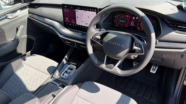 1x USB Typc C port in rear view mirror, 4x USB Type C ports - 2x in front centre console and 2x in rear (45W), Drive mode selection, Driver fatigue sensor, eCall emergency system, Front assist system, Front cross traffic assist, Progressive dynamic steering, Traffic sign recognition, Turn Assist, Virtual Cockpit - 10.25" digital display, Voice control system, Wireless charging (15W) with cooling function, Wireless SmartLink for Apple CarPlay and Android Auto, Sports suspension with 15mm lower, 13" touchscreen display with navigation, DAB Digital radio, Aero front windscreen wipers with intermittent function, Auto dimming rear view mirror, Body colour bumpers, Body colour door handles, Chrome strip in lower front bumper, Electric front and rear windows, Exterior gloss black sports styling including front grille, window surrounds, door mirrors and badging, Gloss black diffuser, Gloss black roof rails, Gloss black spoiler, Heated rear windscreen, High beam control, High level third brake light, Ice scraper in fuel cap, LED daytime running lights, Logo projection in front doors, Rain and light sensors, Rear fog light on both side and reversing lights on both sides, Rear privacy glass, Rear side wing doors, Rear window wiper, 12 volt socket in boot, 3 rear headrests, 3 seat bench in 2nd row, 4 foldable roof handles, Aluminium pedals, Electric auxiliary air heater, Front head restraints, Front sport seats, Heated front seats, Illuminated glovebox, Interior door handles in dark chrome, Jumbo Box storage, Luggage compartment lighting x2 lights, Mechanical rear seat release from boot, Single front passenger seat, Steering wheel in black leather with black stitching, Storage compartments in left and right of boot, Sun visors with mirrors, Sunglasses storage, Three spoke leather sports multifunction steering wheel with paddles, Ticket holder, Umbrella in door panel, Unsplit rear bench seat, split folding backrest with centre armrest with cupholder, SportLine Design Selection pack - Octavia, 3x3 point rear seat belts, Alarm with interior monitoring, tilt sensor and back up horn, Curtain airbags and front side airbags, Driver and front passenger airbags, Drivers knee airbag, Electronic parking brake, ESC including ABS, EBV, MSR, ASR, EDS, HBA, DSR, Front central airbag, Hill hold assist, ISOFIX on front passenger seat and outer rear seats, Passenger airbag deactivate switch, Three point seat belts in front and rear, Two tone horn, Tyre pressure monitor, Visual and acoustic seat belt reminder, Warning reflectors in front door, Anti-theft wheel bolts, Keyless entry and start/stop, Remote central locking, Gloss black air vent surrounds,