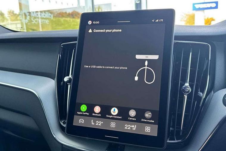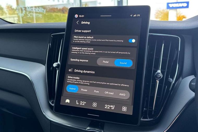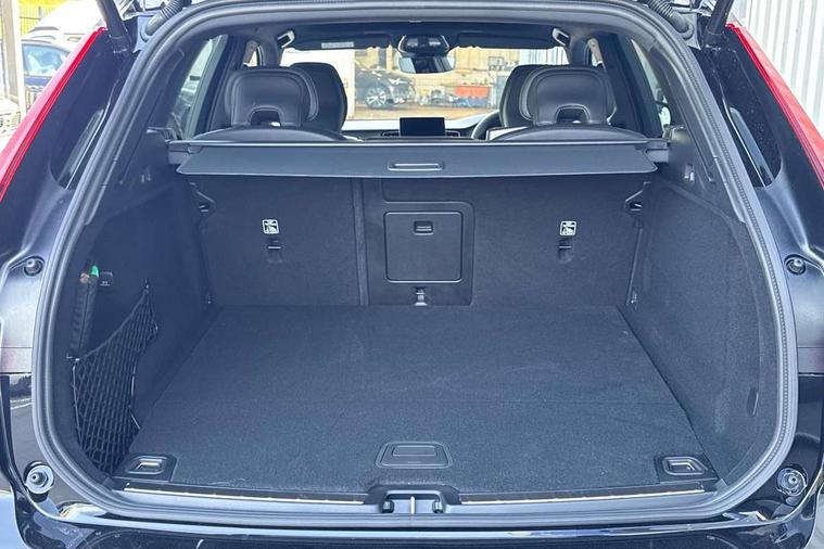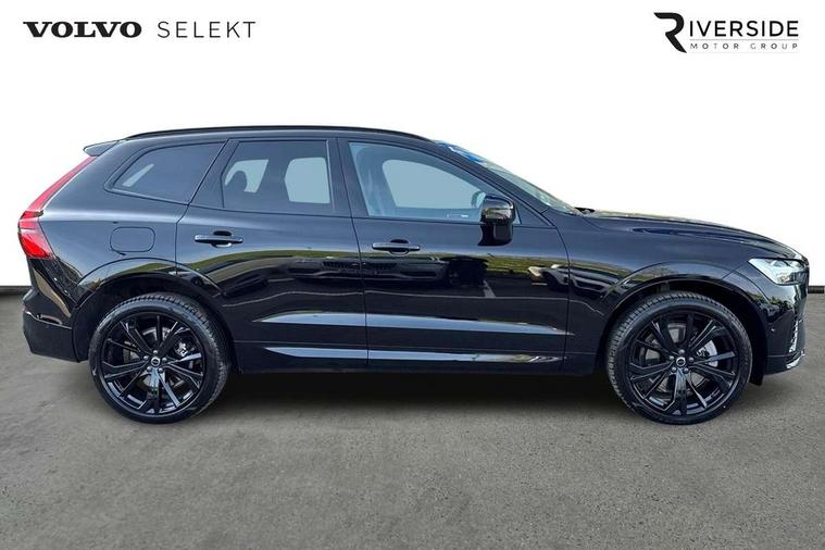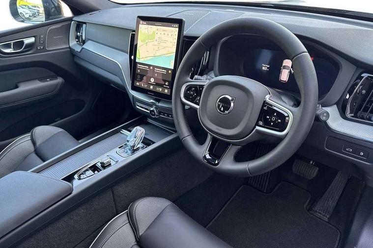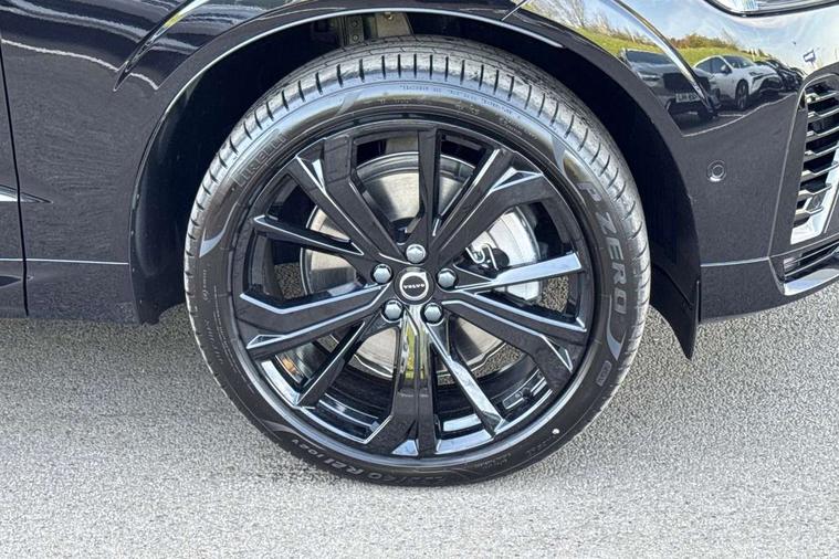11.2" centre console touch screen, 12.3" Progressive Driver Display, 360 degree surround view parking camera with side proximity sensors, Adaptive cruise control, Adjustable steering wheel force, Android auto (Wired), Apple carplay (wired), Bluetooth handsfree system, Drive mode settings, Driver alert control with lane keeping aid, Driver understanding system, Emergency services call system, Front and rear park assist, Google Automotive Services, Intelligent speed assistance, Oncoming Lane Mitigation, PAS, Power operated tailgate with handsfree opening and closing, Service interval indicator, Speed limiter, Speed sensitive steering, Trip computer, Volvo cars services with app, Volvo on call with App, Wireless/Inductive Mobile Phone Charging, 2 phase on board charger 6.4kW (home charging limited to 3.7kW), 6m 3 phase 16amp Type 2 / mode 3 charge cable, 8 speed automatic transmission with start/stop + manual change functions, Electric rear axle drive, Recharging port located in nearside front wing, DAB Digital radio, Low speed exterior sound speaker, Premium Sound by Harman Kardon, dirac unison, dolby pro logic II surround sound, 13 speakers/600W output and fresh air subwoofer, Steering wheel remote infotainment controls, Adaptive brake lights with high level LED brake lights, Auto dimming interior + exterior mirrors, Automatic headlight levelling system, Automatic LED Headlights + Active high beam incorporating daytime running lights, Dark tinted windows for rear side windows and cargo area, Electric adjustable/heated/auto power folding door mirrors, Electric front+rear windows, Front aluminium tread plates, Heated front windscreen, High gloss black door mirrors and window surround, High gloss black front and rear bumper decoratives, High gloss black front grille, Surround, Strikethrough and Ironmark, High gloss black rear model, engine and volvo logo badges, Home safe and approach lighting, Integrated roof rails in high gloss black, Puddle lights, Rain sensor with automatic windscreen wiper activation, Rear side wing doors, Rear wiper, Roof antenna, Roof spoiler, Tinted windscreen, Visible VIN plate, 12V socket in front tunnel console and luggage compartment, 2 zone electronic climate control with Clean zone air quality system and pollen filter, 3 seat bench in 2nd row, 3 Spoke tailored steering wheel with chrome trim, A-pillar parking ticket holder, Air purifier particulate matter (PM) 2.5 filter, B Pillar ventilation, Bright metal luggage scuff plate, Centre console cupholders and storage, Charcoal floor mats, Contour sports seats with nappa soft leather/textile upholstery, Front and rear courtesy lights, Front and rear door pocket illumination, Front cupholder illumination, Front footwell illumination, Front reading lights, Front seat cushion extensions, Glovebox compartment with illumination, Head restraints for all seats, Heated front seats, Heated steering wheel, Height/reach adjustable steering column, Illuminated luggage compartment, Illuminated vanity mirrors + ticket holder, Inner door release handle illumination, ISOFIX attachment on outer rear seats, Load cover, Load protection net, Multi directional lumbar support, Power driver seat with memory + exterior mirrors memory, Power height adjustable passenger seat, Power passenger seat with memory, Rear armrest with cupholder, Rear footwell and front and rear side step illumination, Rear reading lights, Rear seat concealed storage, Single front passenger seat, Tailgate illumination and ambient door lighting, Underfloor stowage compartment, Versatile split folding rear seat - 60/40, Driver assist pack without Adaptive cruise control - XC60, 5 three point seatbelts, City safety with steering support with Pedestrian + cyclist + front collision warning with full auto brake and rear auto brake, Drivers knee airbag, Dual stage driver/passenger airbags, Electronic parking brake with auto hold, First aid kit, Front seats SIPS airbags, Hill descent control - Off-road drive mode, Hill start assist, IC (Inflatable Curtains) - Full Length, Passenger airbag cut-off device, Power child locks on rear doors, Road sign information display, Run off Road Mitigation, Run off Road Protection, Seatbelt reminder and pretensioners, SIPS (Side Impact Protection System), Slippery road and hazard light alert, Stability and Traction Control with Spin control, Engine Drag Control and Corner Traction Control, Tyre pressure monitoring system, Vehicle deceleration control with Anti-lock Brake System, Electronic Brake Distribution and Emergency Brake Assist, Warning triangle, WHIPS whiplash protection system - front, Anti-theft alarm including immobiliser/volume sensor + level sensor, Key integrated remote control central locking + fuel flap with deadlocking system and auto open/close power windows, Keyless Drive (includes Keyless Entry and Keyless Start), Locking wheel nuts, Private locking for tailgate, 21" 5 Double spoke high gloss black alloy wheels, Summer tyres, Tyre sealant kit + 12v compressor,