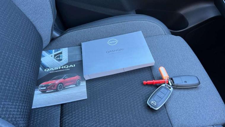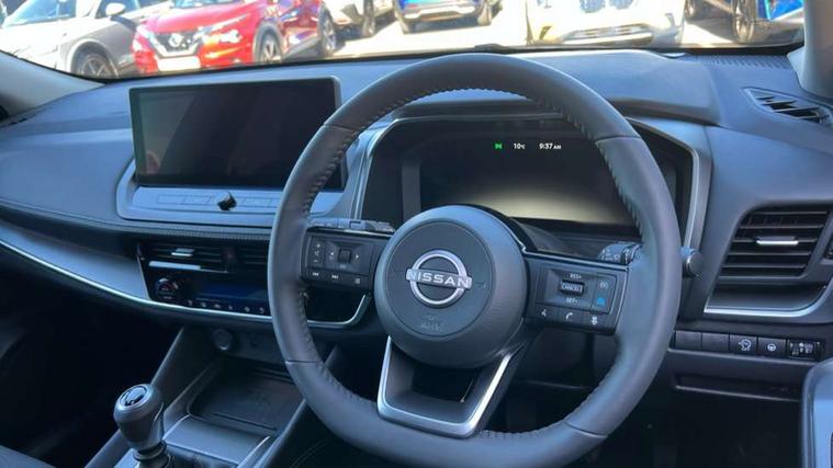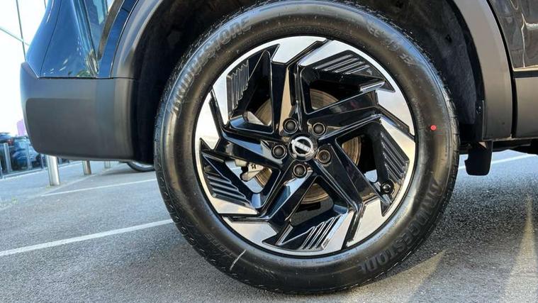360 degree Intelligent around view monitor with moving object detection, Blind spot warning, Drive assist, Drive assist custom mode, Drive modes (sport, normal, eco), Driver drowsiness and attention warning, Electric speed sensitive power steering, Emergency and breakdown call, Emergency lane keep assist, Emergency Stop Signal (ESS), Engine start/stop button, Event data recorder, Front and rear parking sensors, Full Digital 12.3" TFT Digital Combimeter, Google virtual personal assistance, Idle stop/start system, In-car WIFI hotspot, Intelligent Cruise control (ICC), Intelligent driver alert system, Intelligent forward collision warning, Intelligent lane intervention, Intelligent speed assist, Lane departure warning system, Maximum speed limiter, Nissan connect 12.3 inch touchscreen infotainment system, Nissan connect navigation with google maps, Nissan connect services 2.0 (Google Automotive System), Outside temperature sensor, Rear cross traffic alert, Remote control services - door locks, lights, horn and car locator, Reversing detection, Traffic sign recognition with legal speed adjustment, Trip computer, Wireless Apple CarPlay/Android Auto, Wireless charging pad, Limited slip differential, 2 front USB-C ports, 2 rear USB-C ports, 6 speakers, AM/FM audio system with DAB, Bluetooth audio streaming, Auto dimming frameless rear view mirror, Auto rear wiper when reversing, Body coloured door handles, Bodyside mouldings, Chrome side window finisher, Electric auto folding door mirrors, Electrically adjustable and heated door mirrors with LED turn indicator, Follow me home headlights, Gloss black mirror caps, High beam assist, Intelligent auto headlights, LED 3rd brake light, LED daytime running lights, LED Headlights, LED rear lights, One touch front and rear electric windows with remote opening and closing, One touch passenger window, Partially body coloured bumpers, Rain sensing wipers, Rear privacy glass, Rear roof spoiler, Rear side wing doors, Rear styling plate, Shark fin antenna, Silver roof rails, Splash free rain sensing wipers, Super UV and infrared cut glass, Three blink turn signal, 12v power socket in dashboard and luggage, 3 bench rear seats in 2nd row, 3 rear headrests, 60/40 split folding rear seat bench, Chrome interior door handles, Cloth upholstery, Driver and passenger sunvisors with illuminated vanity mirrors, Driver seat back pocket, Dual zone automatic climate control with pollen filter, Electrically adjustable lumbar support for driver, Front centre console and armrest, Front cupholders, Front door with bottle holders, Height adjustable driver seat, Height adjustable front headrests, Height adjustable passenger seat, Leather shift knob, Luggage board system, Luggage space lighting, Multifunction steering wheel, Passenger seat back pocket, Rear door bottle holders, Rear seat armrest with 2 cupholders, RGB ambient light (Partial area coverage), Single front passenger seat, Smooth leather steering wheel, Tilt/telescopic adjustable steering wheel, Two rear isofix child seat anchorage points with top tether, 3x3 point rear seatbelt pretensioners + load limiters, ABS with EBD and brake assist, Autonomous emergency braking, Child locks on rear doors, Curtain and front side, far side airbags, Driver and passenger airbags, Driver, passenger and 2nd row rear seat belt reminder, Electric handbrake with auto hold function, Front seatbelt pretensioners + load limiters, Height adjustable front seatbelts, Hill start assist, Intelligent blind spot intervention, intelligent front emergency braking, Intelligent rear automatic braking, Tyre pressure monitoring system, Vehicle dynamic control, Engine immobiliser, Intelligent key with walk away lock and approach unlock functions, Remote central door locking with deadlocking, Thatcham alarm, 18" Diamond cut alloy wheels, Tyre puncture repair kit,