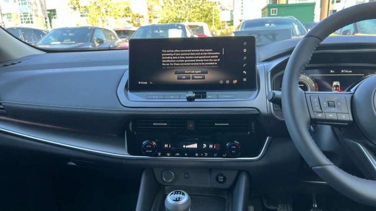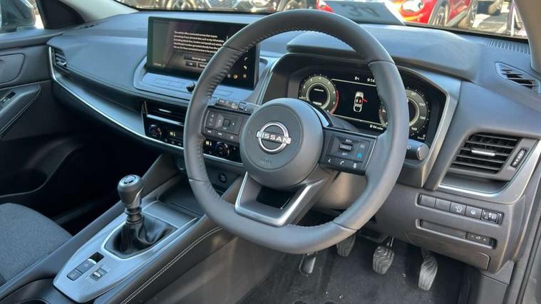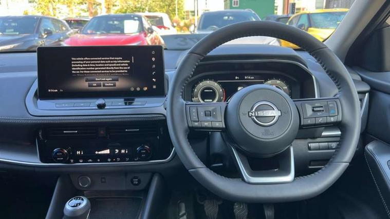 360 degree Intelligent around view monitor with moving object detection, Blind spot warning, Drive assist, Drive assist custom mode, Drive modes (sport, normal, eco), Driver drowsiness and attention warning, Electric speed sensitive power steering, Emergency and breakdown call, Emergency lane keep assist, Emergency Stop Signal (ESS), Engine start/stop button, Event data recorder, Front and rear parking sensors, Full Digital 12.3" TFT Digital Combimeter, Google virtual personal assistance, Idle stop/start system, In-car WIFI hotspot, Intelligent Cruise control (ICC), Intelligent driver alert system, Intelligent forward collision warning, Intelligent lane intervention, Intelligent speed assist, Lane departure warning system, Maximum speed limiter, Nissan connect 12.3 inch touchscreen infotainment system, Nissan connect navigation with google maps, Nissan connect services 2.0 (Google Automotive System), Outside temperature sensor, Rear cross traffic alert, Remote control services - door locks, lights, horn and car locator, Reversing detection, Traffic sign recognition with legal speed adjustment, Trip computer, Wireless Apple CarPlay/Android Auto, Wireless charging pad, Limited slip differential, 2 front USB-C ports, 2 rear USB-C ports, 6 speakers, AM/FM audio system with DAB, Bluetooth audio streaming, Auto dimming frameless rear view mirror, Auto rear wiper when reversing, Body coloured door handles, Bodyside mouldings, Chrome side window finisher, Electric auto folding door mirrors, Electrically adjustable and heated door mirrors with LED turn indicator, Follow me home headlights, Gloss black mirror caps, High beam assist, Intelligent auto headlights, LED 3rd brake light, LED daytime running lights, LED Headlights, LED rear lights, One touch front and rear electric windows with remote opening and closing, One touch passenger window, Partially body coloured bumpers, Rain sensing wipers, Rear privacy glass, Rear roof spoiler, Rear side wing doors, Rear styling plate, Shark fin antenna, Silver roof rails, Splash free rain sensing wipers, Super UV and infrared cut glass, Three blink turn signal, 12v power socket in dashboard and luggage, 3 bench rear seats in 2nd row, 3 rear headrests, 60/40 split folding rear seat bench, Chrome interior door handles, Cloth upholstery, Driver and passenger sunvisors with illuminated vanity mirrors, Driver seat back pocket, Dual zone automatic climate control with pollen filter, Electrically adjustable lumbar support for driver, Front centre console and armrest, Front cupholders, Front door with bottle holders, Height adjustable driver seat, Height adjustable front headrests, Height adjustable passenger seat, Leather shift knob, Luggage board system, Luggage space lighting, Multifunction steering wheel, Passenger seat back pocket, Rear door bottle holders, Rear seat armrest with 2 cupholders, RGB ambient light (Partial area coverage), Single front passenger seat, Smooth leather steering wheel, Tilt/telescopic adjustable steering wheel, Two rear isofix child seat anchorage points with top tether, 3x3 point rear seatbelt pretensioners + load limiters, ABS with EBD and brake assist, Autonomous emergency braking, Child locks on rear doors, Curtain and front side, far side airbags, Driver and passenger airbags, Driver, passenger and 2nd row rear seat belt reminder, Electric handbrake with auto hold function, Front seatbelt pretensioners + load limiters, Height adjustable front seatbelts, Hill start assist, Intelligent blind spot intervention, intelligent front emergency braking, Intelligent rear automatic braking, Tyre pressure monitoring system, Vehicle dynamic control, Engine immobiliser, Intelligent key with walk away lock and approach unlock functions, Remote central door locking with deadlocking, Thatcham alarm, 18" Diamond cut alloy wheels, Tyre puncture repair kit,
