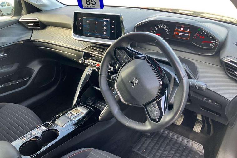 Bluetooth telephone facility, Driver attention warning, e-Toggle driving selector, Emergency call service, Exterior temperature indicator with ice warning, Lane keep assist, Mirror screen with mirror link, apple carplay and android auto, Multi function trip computer, PEUGEOT i-Cockpit with 3.5" instrument panel display, PEUGEOT i-Cockpit with compact steering wheel, Programmable cruise control and speed limiter, Push button start, Rear parking sensors, Smart phone docking station, Speed limit recognition and recommendation, Start/stop system, 1x USB socket in front, 6 speakers radio with mp3 compatible, DAB Digital radio, Voice recognition for radio, navigation and telephony features, 2 X Rear number plate lights, Automatic hazard light activation upon heavy brake application, Automatic lights, Automatic windscreen wipers, Body coloured exterior door handles, Dark tinted rear side and tailgate windows, Eco LED headlights, Electric front windows + one touch + anti-pinch, Electric rear windows with one touch/anti-pinch, Electrically adjustable, heated and power folding door mirrors, Electrochrome rear view mirror, Extended diamond black rear spoiler, Follow me home headlights, Gloss black rear cluster connecting strip, Headlights left on audible warning, LED daytime running lights with distinctive tooth design, LED third brake light, Model designation badges front and rear, Nera black door mirror shells, Radiator grille chrome chequered, Rear reversing lights, Rear side wing doors, Rear windscreen wiper triggered automatically in reverse gear, Roof mounted aerial, Roof spoiler, Single exhaust tailpipe, Tailgate with heated rear windscreen and wiper blade, Variable front intermittent wipers, 1/3 to 2/3 split folding rear seats, 12V socket, 3 seat bench in 2nd row, Automatic air conditioning, Automatic gear lever in full grain leather and satin chrome, Driver and front passenger comfort seats, Driver and front passenger seat manual adjustment in longitudinal and back rest angle, Driver seat mechanical height adjustment, Electric power steering with reach and rake adjustable steering column, Front interior light with 2 reading spotlights, Leather steering wheel, Low centre console, Map pockets on the backs of the front seats, Paddle shifts, Piano keys gloss black plated toggle switches to access main functions of the vehicle, Push button finished in black with chrome circle, Rear centre headrest, Roof lining - light grey, Seatbelt unfastened on the move audible and visual alert for front and rear seats, Single front passenger seat, Tri material cloth upholstery, 2x Isofix child seat fitting on outer rear seats, 3 rear 3 point seatbelts, ABS (Anti-lock Braking System) with EBD (Electronic Brakeforce Distribution) and EBA (Emergency Braking Assistance), Adaptive driver and front passenger airbags with passenger airbag deactivation function, Child locking functionality on rear doors, Driver/front passenger side airbags, ESP with Hill Assist, Front and rear curtain airbags, Front and rear disc brakes, Front optimised safety headrests and 3 x rear retractable headrests with height adjustable, Front three point retractable seatbelts with force limiters, Manual parking brake, Pedestrians active safety brake, Tyre pressure sensor, Acoustic vehicle alert system (AVAS), Automatic door locking when moving off, Deadlock, Electronic code immobiliser, Remote central locking, Thatcham cat. 1 alarm with anti lift sensor, Carbon effect Dashboard, front and rear door panel finish, 16" Soho diamond cut alloy wheels,