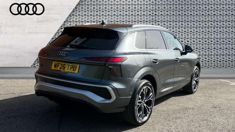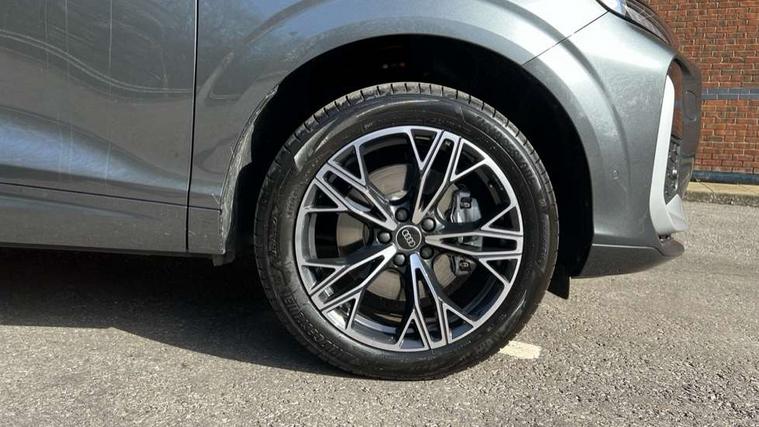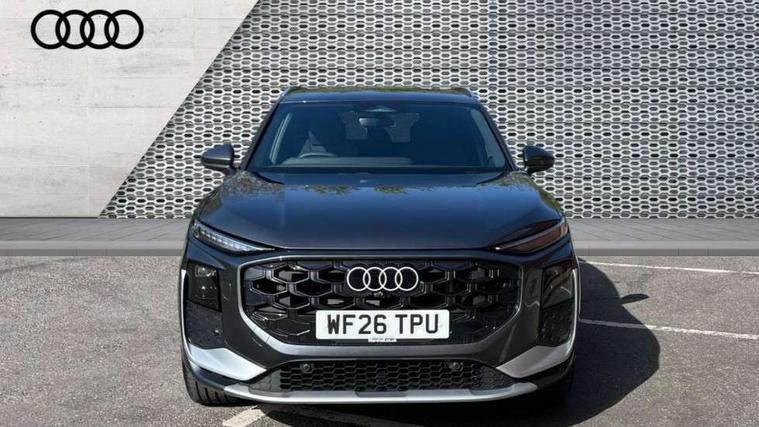 Adaptive cruise control, Audi connect emergency call and service, Audi connect remote and controls, Audi drive select (Balanced/Individual, effeciency, comfort and dynamic), Audi virtual cockpit plus - 11.9" display, Bluetooth interface, Camera based traffic sign recognition, Driver attention and fatigue monitor with driver monitoring, Front cross traffic assist, Lane departure warning with emergency assist, Panoramic curved display with 12.8" MMI navigation plus and MMI touch, Park assist plus with parking system and 360 display, Phonebox light with wireless charging, Reversing camera, Smartphone interface includes wireless Apple carplay/Android Auto, Start/stop system, Swerve assist and turn assist, Traffic sign based speed limiter, Voice control system with natural language interaction, 3 pin 10 amp domestic charging cable, Charging socket CCS type 2, Comfort suspension, Compact charging system, Industrial connector CEE 32A, 230V, Mode 3 charging cable for public charging, 22 KW (AC), Petrol Particulate Filter, 2 USB-C ports with charge and data functions, Audi sound system with 10 loudspeakers, subwoofer, 8 channel amplifier with 260 watts, DAB digital radio module, Acoustic glass for front door windows, Acoustic windscreen, Aluminium roof rails, Aluminium window trim, Audi Q3 lettering on the B-pillars, Auto dimming door mirrors, Auto dimming rear view mirror, Body colour door mirrors, Contrasting finish in volcano grey, Electrically folding, adjustable and heated door mirrors with integrated LED side indicators and kerb view function for passenger side, Full paint finish, Illuminated door sills with aluminium inserts at the front with S logo, LED daytime running lights, LED headlights plus with LED rear lights pro with continous light strip, illuminated Audi rings, rear, LED third brake light, Loading sill protector in stainless steel, Main beam assist, Privacy glass - dark tinted rear window, rear door and side windows, Projection light in the exterior mirrors - Projects a graphic element onto the ground, Q3 badging on the rear, Rain and light sensors, Rear side wing doors, Rear window, rear door windows and rear side windows in clear glass, Rear wiper, Sports bumpers, 3 seat bench in 2nd row, 3 spoke flat top and bottomed leather multi function sport steering wheel with gear shift paddles and "S" badging, 3-zone deluxe automatic air conditioning, 4 way lumbar support for the front seats - electric with horizontal and vertical adjustment in four directions, Black cloth headlining, Convenience auxiliary air conditioning, Front and rear floor mats, Front and rear headrests, Front centre armrest, Heated front seats, Height and reach adjustable steering wheel, Interior storage compartment, Leather/artificial leather upholstery combination with S emblem + front sports seats, Luggage compartment lid, electrically opening and closing, Manual front seats with height adjustment, Rear seat bench plus with split folded 40:20:40, Single front passenger seat, Stainless steel pedals, Steering wheel operating unit, gloss black, Storage compartment in front centre console, Ambient lighting package pro - Q3, S line exterior styling pack - Q3, 3x3 point rear seatbelts, Acoustic vehicle alerting system, Convenience key with safelock, Driver and front passenger airbag with passenger airbag deactivation, Electromechanical parking brake, Electronic stabilisation control including ABS, ASR and EDL, First aid kit with warning triangle and high visibility vests, Front emergency brake assist, Hill hold assist, i - Size child seat mounting on the front passenger side and i - Size and top tether on the outer rear seats, Power operated child locks, Seatbelt monitoring, Three point automatic belts with belt tensioner and height adjustment, Tyre pressure loss indicator, Anti theft wheel bolts, Remote central locking, Thatcham approved category 1 anti theft alarm, Dark aluminium divergence inlay, Interior elements in dinamica microfibre, Interior trims in aluminium look, Tool kit and Jack, Tyre repair kit,