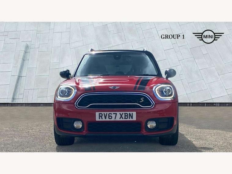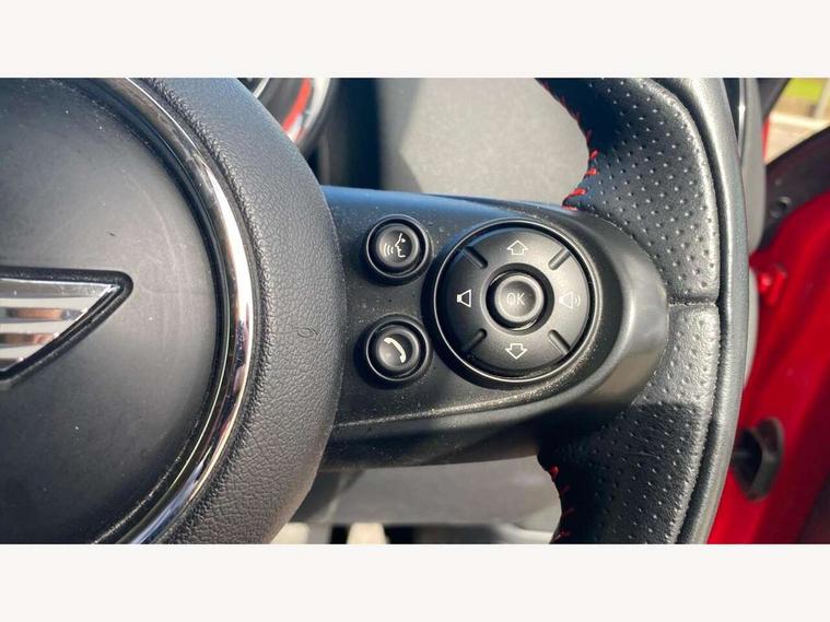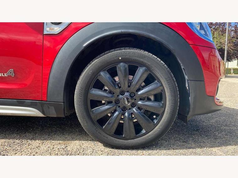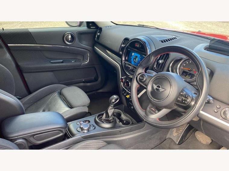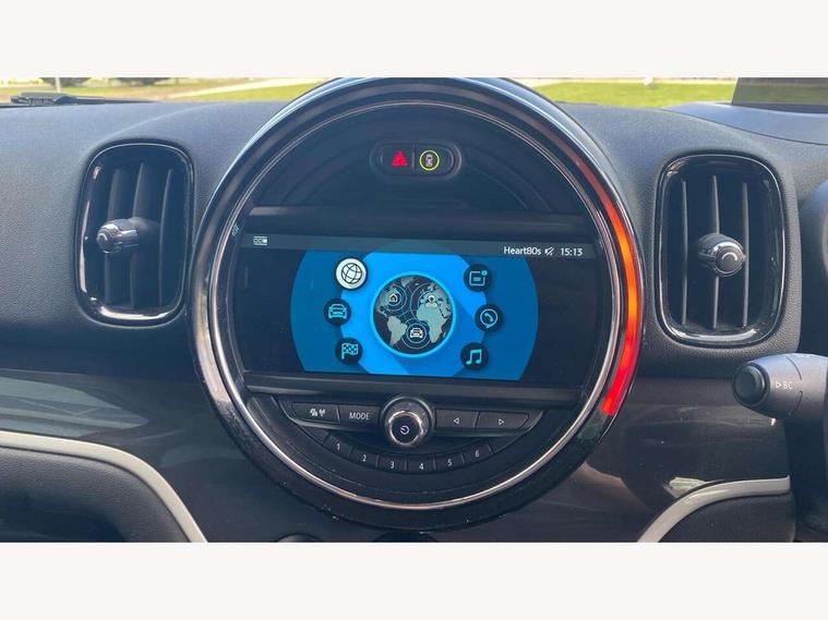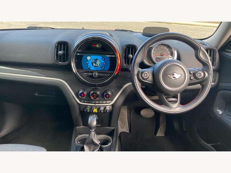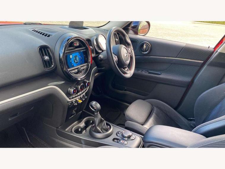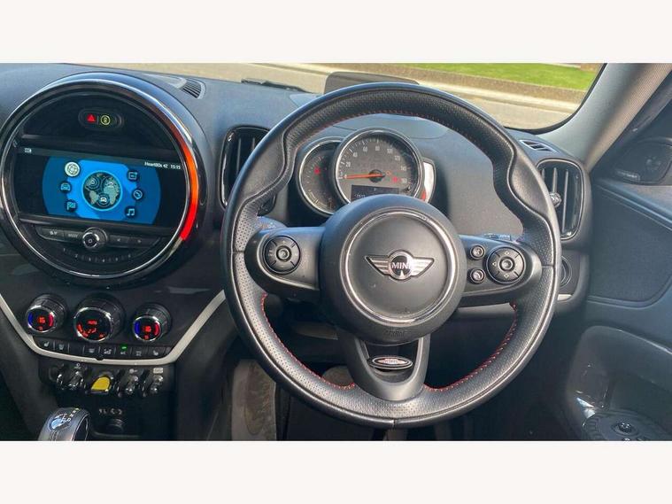 Brake pad wear indicator warning light, DTC - Dynamic traction control, eDrive Services, Exterior temperature gauge, Intelligent emergency call, MINI Driving Modes - centre toggle switch to control driving setting (sport, mid and green), MINI TeleServices, Navigation system, On board computer, Personal Profile, Service interval indicator, Servotronic speed sensitive power steering, Electronic differential lock, Performance Control, Auxiliary input socket, DAB digital radio module, MINI Connected, MP3 compatible radio/single CD player, Radio visual boost, Anti dazzle rear view mirror, Blue tinted glass, Body colour scoop integrated into engine- compartment lid, Chrome door handles, Chrome exhaust tailpipe, Chrome headlight surround, Chrome plated radiator grille, Chrome side scuttle, Chrome window surround, Electric front windows + one touch + anti-pinch, Electrically adjustable door mirrors, Follow me home headlights, Heated door mirrors/heated windscreen washers, Heated rear window with automatic switch off, Metal look door sill finishers, Rain sensor including auto headlights activation, Rear wiper, White indicator lights, 12V power point front, 2 cupholders in front centre console, 4 lashing points to secure luggage, 40:20:40 split folding rear seats, Centre console storage box, Charging cable, Chrome interior door handles, Driver/passenger sunvisors, Front and rear headrests, Front and rear Isofix child seat preparation, Front and rear velour floor mats, Front centre armrest with storage compartment, Front interior light, Front passenger grab handle, Front seat backrest storage nets, Heater with recirculation function, Height/reach adjust steering wheel, Luggage compartment lighting, Multifunction steering wheel, Rear grab handles, Sensatec gearshift and handbrake, Sport front seats, Storage compartments in doors, Toolkit in luggage compartment, Under floor storage in luggage area, Interior lights pack - Countryman, MINI Excitement Pack - Countryman, 3 point automatic seatbelts, 3 point seatbelts on all rear seats, ABS, Cornering brake control (CBC), Crash Sensor - activates hazard/interior lighting + unlocks doors, Driver and passenger airbags, Driver and passenger side airbags, DSC - Dynamic Stability Control, Electronic brake force distribution, Electronic parking brake, Front curtain airbags, Front passenger airbag deactivation, Fuel cut off safety device, Hill start assist, Pyrotechnically pre-tensioned front seatbelts, Tyre pressure warning, Automatic door locking, Keyless start, Locking wheel bolts, RF remote control central locking, Second remote key, Thatcham category 1 alarm + immobiliser,