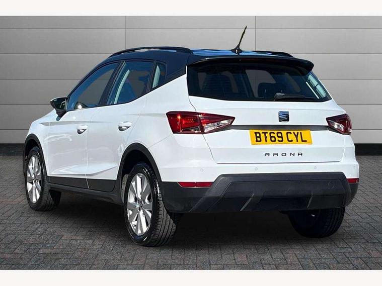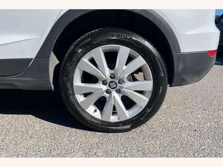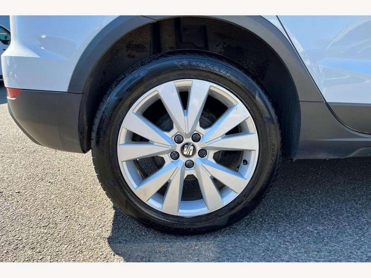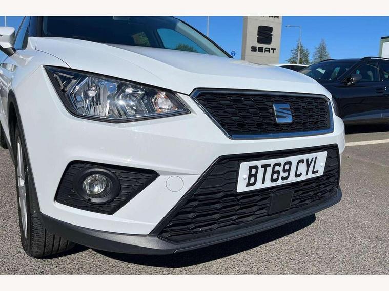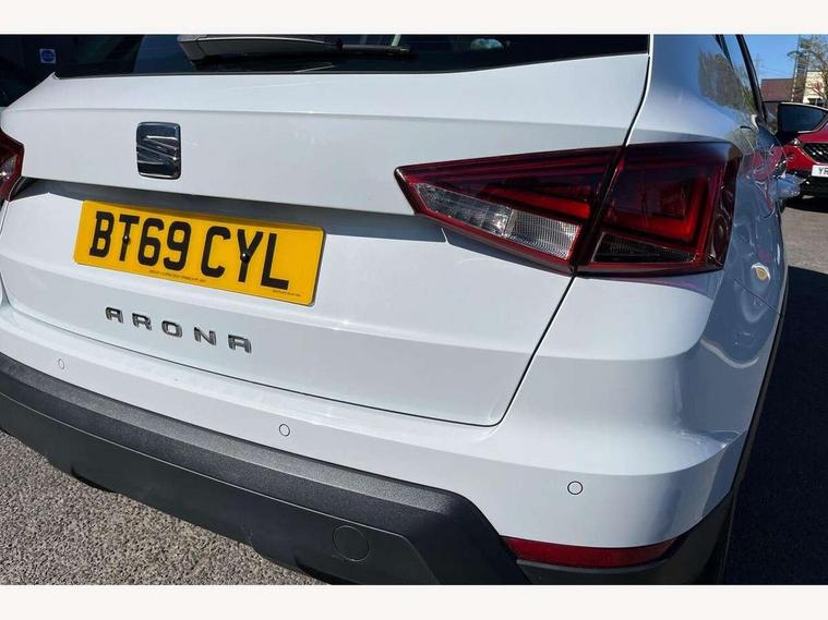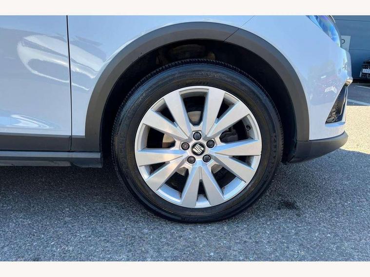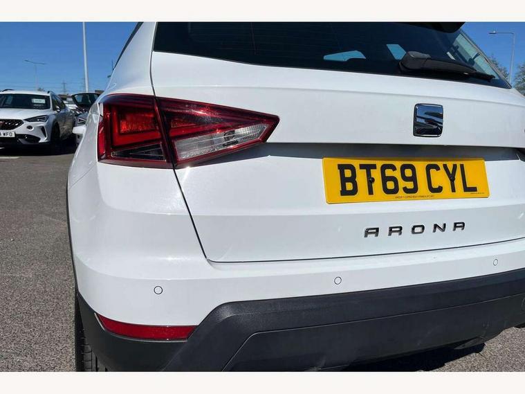 'Lights On' Reminder warning buzzer, Adaptive cruise control, Digital clock, Electric speed sensitive power steering, Full Link Smartphone Integration with Mirror Link, Apple Car Play, Google Android Auto with USB cable for Apple and Android compatibility, Low fuel warning light, Outside temperature display, Rear parking sensor, RPM counter, Trip computer, Comfort suspension, 6 speakers, Beats audio system, Bluetooth interface for hands free and audio streaming, DAB digital radio and AM/FM radio, Steering wheel mounted audio controls, Anti theft roof antenna, Automatic activation of hazard warning lights, Automatic headlights, Black roof rails, Black window trims, Body coloured bumpers, Body coloured door handle inserts, Body coloured door mirrors, Chrome front grille frame, Dimming rear view mirror, Electric adjustable door mirrors, Electric front/rear windows with one touch/auto up/down, Electric headlight adjustment, Front fog lights with cornering function and rear fog light, Hidden exhaust pipe, LED daytime running lights, LED rear tail lights and licence plate lights, Rear window wash/wipe, Visible VIN plate, Windshield wiper with intermittent control and potentiometer, 2 cupholders, 60/40 split folding rear seat, Air conditioning, Cloth upholstery, Double boot floor, Driver sunvisor with covered mirror + card holder, Dust/pollen filter, Front courtesy light with front reading lights, Gear shift indicator, Grey interior roof, Height adjustable front seats, Height/reach adjustable steering column, Illuminated boot, Instrument lighting with brightness control, Interior footwell lighting, ISOFIX points in outer rear seats with top tether anchorage points, Leather steering wheel/gear knob/handbrake, Multi-colour ambient interior lighting, Passenger sunvisor with vanity mirror, Two front and three rear height adjustable headrests, Connectivity pack plus - Arona, Interior chrome pack - Arona, Winter pack - Arona, 3 point seatbelts on all rear seats, ABS, Active front headrests, Child locks on rear doors, Driver and front passenger airbags with front passenger airbag de activation, front side and curtain airbags, Electronic stability control, Emergency Brake Assist (EBA) and front assist, Front and rear seatbelt reminder, Hill hold control, Multi-Collision braking, Tiredness recognition system, Traction control, Tyre pressure monitoring system, 2 folding remote keys with window open/close function, Electronic engine immobiliser, KESSY Keyless entry and go, Locking wheel bolts, Remote central locking + deadlocks, Interior chrome line trim, Plastic grey dashboard, 17" Dynamic alloy wheels,