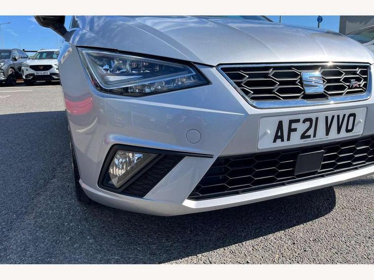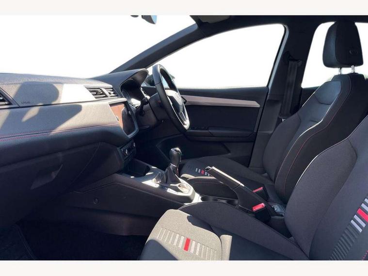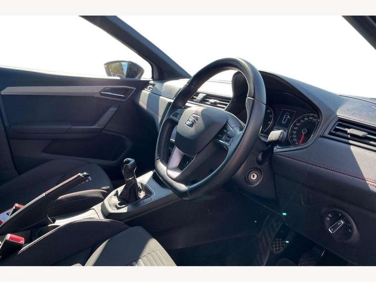 'Lights On' Reminder warning buzzer, Bluetooth audio streaming with handsfree system, Cruise control, Digital clock, Full Link Smartphone Integration with Mirror Link, Apple Car Play, Google Android Auto, Low fuel warning light, Navigation system with 8" touch screen + proximity sensor, voice control and USB type C sockets, Outside temperature gauge, Power Steering, Seat connect with safety, service, remote and online, SEAT Drive profile, SEAT logo boot release, Speed limiter, Trip computer, Sports suspension, 6 speakers, Auxiliary input socket, CD player, Digital Audio Broadcast (DAB) Tuner, Radio/MP3 player, SD card slot, Steering wheel mounted controls, USB (type C) cable for Apple and Android compatibility, Anti theft roof antenna, Auto dimming rear view mirror, Automatic headlights, Automatic rain sensing wipers, Body colour bumpers, Body colour door handles, Brilliant black door mirrors, Brilliant black window surrounds, Chrome front grille frame, Coming/leaving home lighting function, Dark tinted rear windows, Electric folding door mirrors, Electric front windows, Electric headlight adjustment, Electric rear windows, Electrically adjustable and heated door mirrors, Exclusive FR rear bumper, Front/rear fog lights, LED daytime running lights, LED headlights with dynamic headlight range control, LED tail lights, Rear spoiler with twin exhausts, 60/40 split folding rear seat, Ambient interior lighting, Chrome detailing, pearl grey headlining and leather effect door trim panels, Driver's sunvisor with ticket holder/vanity mirror, Dual zone climate control with combination filter, Front courtesy lights, Front cupholders x 2, Front reading lights, Gear shift indicator, Glovebox, Height adjustable driver's seat, Height adjustable passenger seat, Height/reach adjust steering wheel, Illuminated boot, Instrument lighting with brightness control, Leather dashboard, Leather multifunction flat bottomed steering wheel with FR logo, leather gear knob and handbrake, Nora cloth upholstery, Passenger sunvisor, Rear top tether child seat ISOFIX attachment, Sports seats, Two height adjustable front and rear headrests (three in rear), 3 point seatbelts on all 3 rear seats, ABS, Active front headrests, Child locks on rear doors, Curtain airbags, Driver/Front Passenger airbags, ESP+EBA, Front assist (AEB), Front passenger airbag deactivation, Front side airbags, Hill hold control, Multi-Collision braking, Seat belt reminder for front and rear seats, Tiredness recognition system, Tyre pressure monitoring system, Anti theft wheel bolts, Electronic engine immobiliser, Perimeter alarm and interior monitoring with backup horn and tow away protection, Remote central locking + deadlocks, 17" Dynamic alloy wheels,