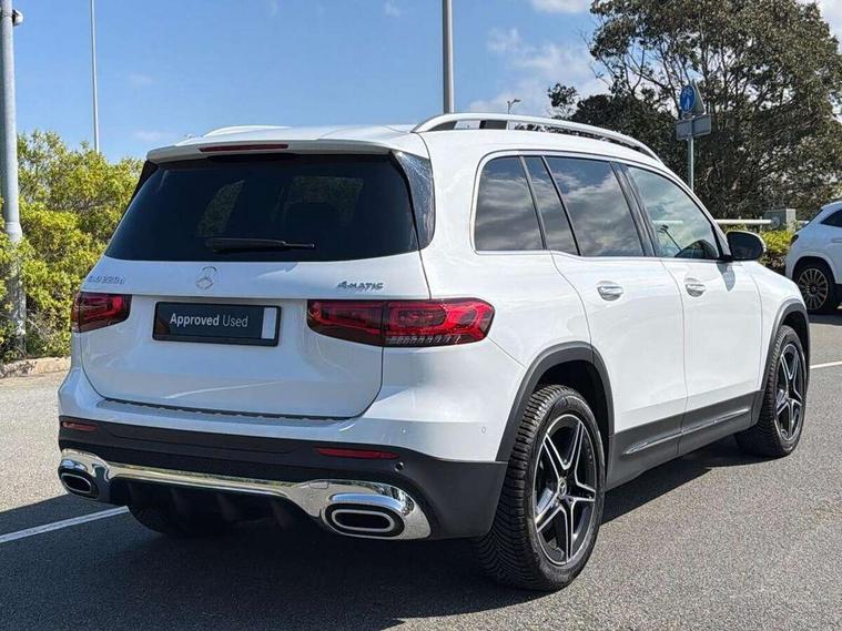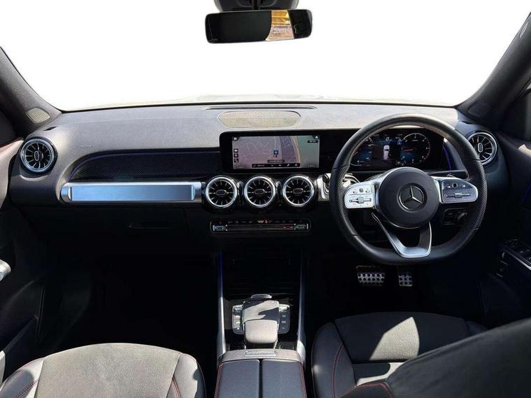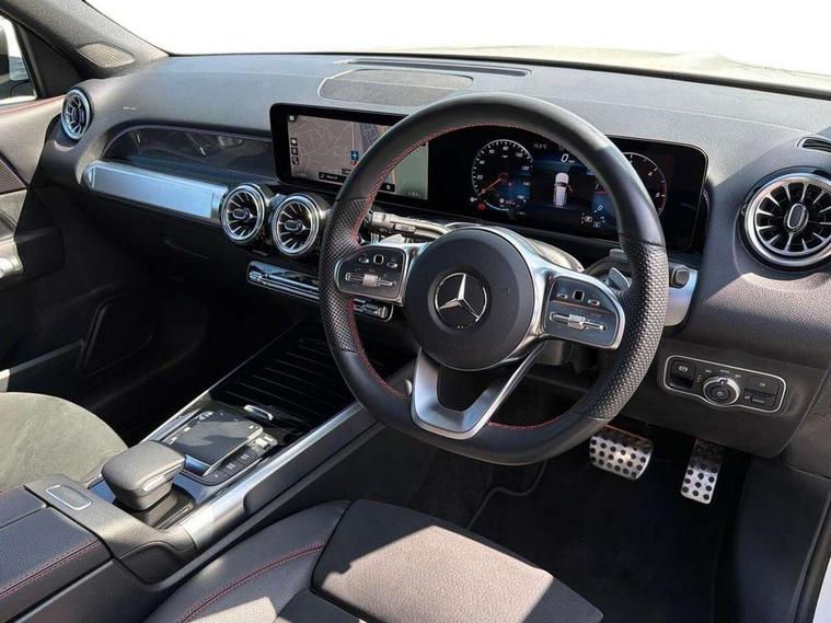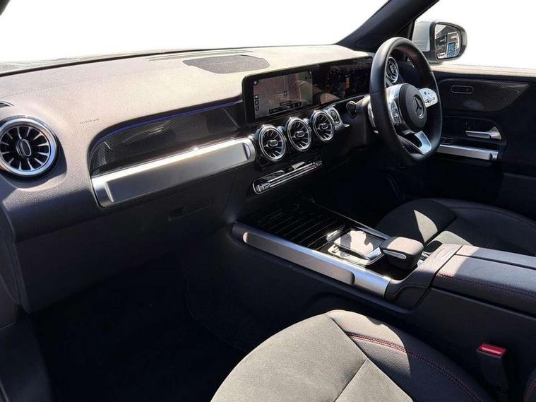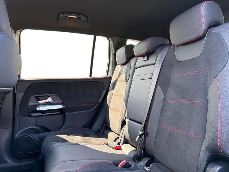 10.25" Digital instrument cluster display screen, 10.25" Digital media screen display, Active lane keeping assist, Attention assist - Monitors steering behaviour and long journey fatigue, Brake pad wear indicator warning light, Car wash mode, Cruise control with limiter, DYNAMIC SELECT with a choice of driving modes (ECO, Comfort, Sport and Individual), ECO start/stop function, Fluid level warning indicator for fuel, oil, coolant and washer fluid, Hard disk navigation, Hey Mercedes Voice activation, Lamp failure indicator, Mercedes me connect including emergency call system, accident recovery, breakdown and maintenance management, Mercedes me remote services, Outside temperature gauge, Owners manual and service booklet in English, Parameter steering system, Pre-installation of private car share, Preinstallation for parking damage notification, Radio aerial integrated into front and rear windshields, Service indicator (ASSYST), Smartphone integration with Apple CarPlay and Android auto, Speed limit assist, Trip computer in multifunction display with current consumption indicator, 23.8 litre AdBlue fuel tank, Comfort suspension, Rear axle multi-link, DAB digital radio tuner, MBUX multimedia system with DAB digital radio and touchpad including satellite navigation, Mercedes Benz sound system (225 W) with 10 speakers, 1 central speaker, speakers on doors, a tweeter on door, one sub woofer + boost amplifier, Pre installation for Mercedes Benz Link, USB (type C) port in front stowage compartment, USB (type C) ports (2) in stowage compartment, Adaptive brake lights, Aerial for GPS, AMG bodystyling door panels black grained with chrome plated inserts, AMG bodystyling front apron with chrome splitter, AMG bodystyling rear apron with diffuser optics and chrome trim element, AMG specific front and rear bumper including underride guard in high gloss chrome, Beltline strips and weather strip in chrome, Body coloured bumpers, Body coloured door handles with chrome insert for keyless entry, Body coloured door mirror caps, Electric adjustable and heated door mirrors with integrated LED side indicators, Exhaust system with dual flow exhaust pipes (non-functional), Front and rear electric windows, Headlamp assist automatic headlamp activation, Heated glass rear windscreen + timer control, High level LED third brake light, Interior mirror with black reading lamps and frameless, LED high performance headlamps with integrated LED daytime running lights, LED tail lamp, Polished aluminium roof rails, Privacy glass with dark tinting on rear side windows and rear window, Radiator grille with pins in chrome and single louvre with chrome insert, Rain sensor windscreen wipers, Rear fog lamp, Rear side wing doors, Rear wiper, Two visible tailpipe trim elements exhaust, 3 seat bench in 2nd row, 3 spoke multifunction sport steering wheel in nappa leather, Air conditioning - Two zone thermotronic luxury automatic climate control with display, AMG sports pedals with brushed stainless steel surfaces and black rubber studs, Artico man-made leather/Microcut microfibre upholstery with red contrast stitching, Automatic child seat recognition sensor, Black floor mats with AMG lettering, Black roof lining, Fore/aft adjustment rear seats, Freight packaging with tie-down hooks, Front centre armrest with stowage, Front door sills with illuminated changeable cover, Front passenger grab handle with brushed side silver chrome, Front sports seats with adjustable head restraints, Galvanished gear shift paddles on steering wheel, Heated front seats, Height/reach adjustable steering column, Interior lighting - 64 colour Ambient lighting, Luggage net on driver/front passenger seat backrest, Net in front passenger footwell, Rear armrest with two integral cup holders for drinks, Rear seat easy entry, Single front passenger seat, Stowage compartment in centre console, Stowage compartment with retractable cover, Third row of seats for two people on rear seat, Touchpad on center console, Twin front cup holders, Two outer rear seat isofix and top tether child seat fixing points, Interior lighting with light and sight pack - GLB, Keyless go comfort pack - GLB with easy pack tailgate, Mirror pack - GLB, Off-road engineering package - GLB, Parking pack - GLB, Seat comfort package - GLB, 3 rear 3 point seatbelts, Active bonnet pedestrain safety measure which detects an impact and raises bonnet by 65mm, Active brake assist includes forward collision warning system with autonomous braking, Adaptive brake assist with hold function and hill start assist, Airbags - kneebag for driver, Anti-lock braking system (ABS) with brake assist, Childproof locks manually operated for rear doors and electrically operated for rear power windows, Crash responsive emergency lighting, Curve dynamic assist, Driver and front passenger head and sidebags, Driver and front passenger windowbags, Dual stage driver and front passenger airbags, Electronic parking brake, Electronic stability programme with acceleration skid control, Front and rear seatbelt reminder, Front brake callipers with Mercedes Benz lettering, Front passenger seat occupancy sensor, Perforated and ventilated front brake discs, Tyre pressure monitoring system, Warning triangle and first aid kit, Guard 360 degree vehicle protection - Anti theft alarm system, tow away protection with visual, acoustic warning and alarm, Interior monitoring system, KEYLESS-GO Spanner communicates with the vehicle within two metres of the door, Remote central locking and crash sensor with emergency opening function, Thatcham category 1 alarm system with immobiliser and interior protection, Vehicle key with decorative surround in chrome, Black air vents with chrome surround, Carbon structure trim, 19" AMG 5 twin spoke light alloy wheels painted in high gloss black with high sheen finish, Summer tyres, Tirefit tyre sealant kit,