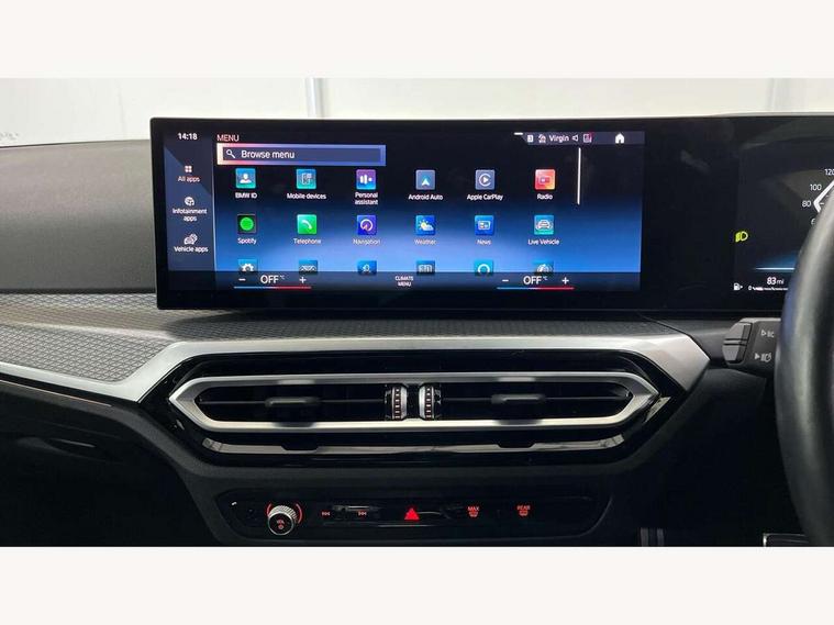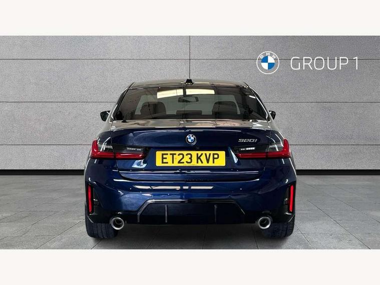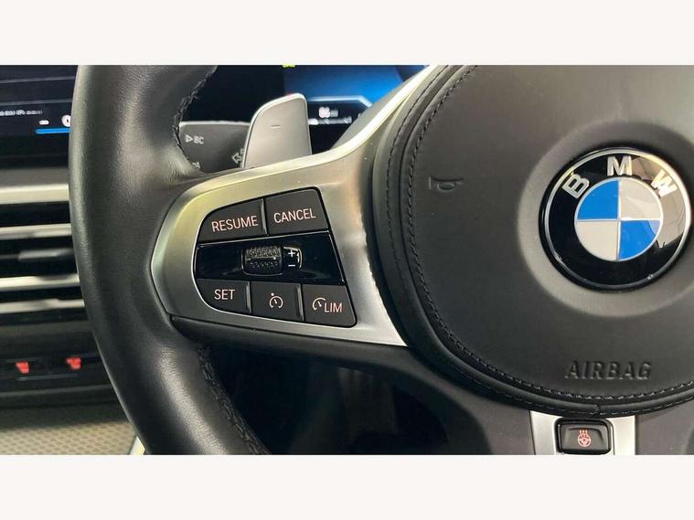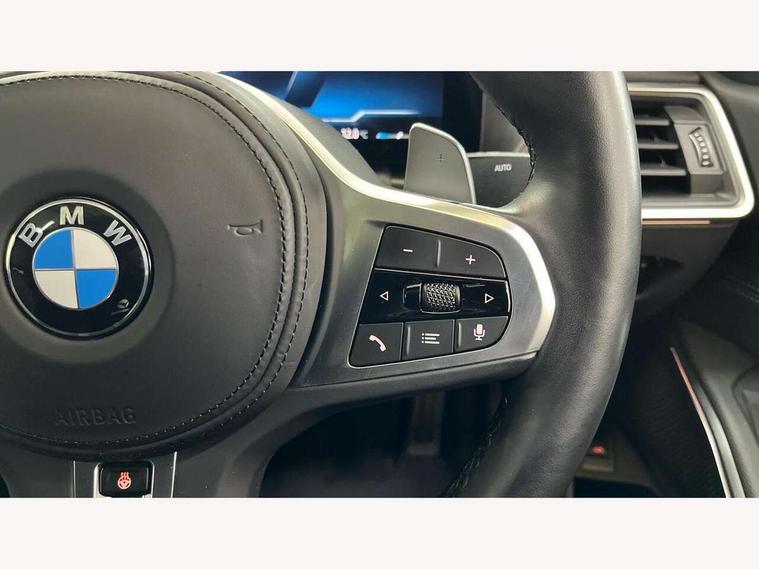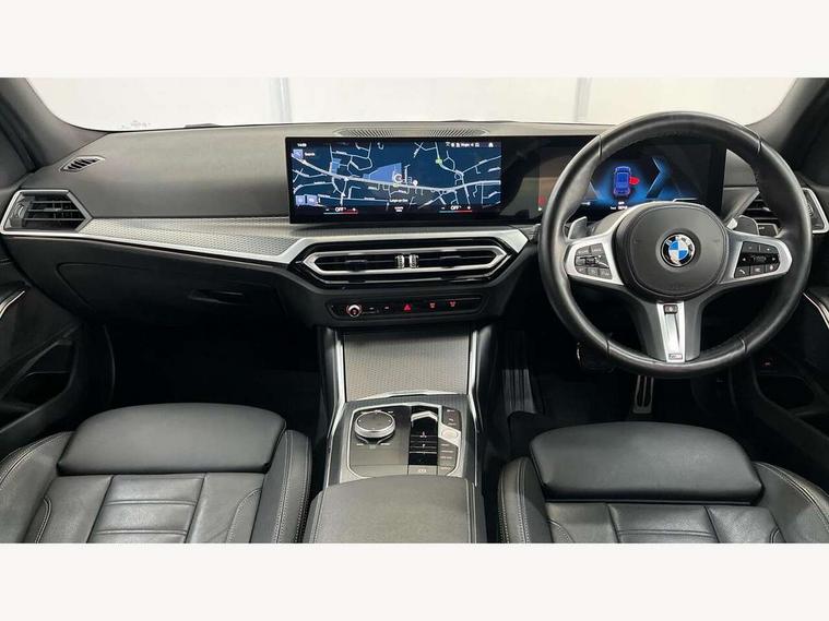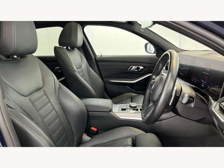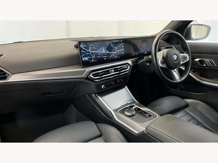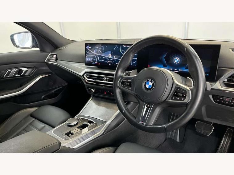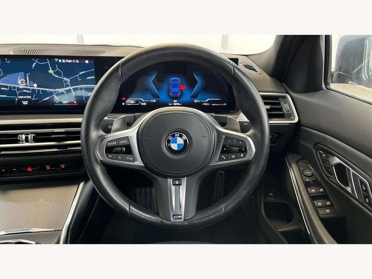 Active guard plus, Attentiveness assist, Automatic Start/stop button, BMW iDrive, BMW Teleservices, Condition based service, ConnectedDrive Services, Driving experience switch, Live cockpit plus with Navigation + 12.3" instrument display + 14.9" display, Intelligent voice assist, 2 USB, 4G LTE connect, Oil sensor for level and grade, Preparation for driver assistance, Shifting point display, Variable sport steering, Double joint spring strut front axle, Electronic differential lock control (EDLC), Fuel tank breather system, M sport suspension, Sport automatic transmission with steering-wheel mounted gearshift paddles and launch control, DAB tuner, 3rd brake light, Acoustic glazing, Automatic headlight beam throw control with load dependent regulating reaction, dynamic compensation of braking dive and acceleration squat, BMW emblem, engine compartment lid and tailgate, Body colour roof fin, Door sill strips, Electric windows - front and rear, with open/close fingertip control, anti-trap facility and comfort closing, Follow me home headlight function, Front and rear bumper system with replaceable deformation elements, Front apron plastic in body colour, Fuel filler flap - right rear in body colour, Heated washer jets, High gloss shadow line exterior trim, Illuminated bow type door handles in body colour drivers side with door lock, Interior rear view electrochromatic mirror with automatic anti dazzle function, LED headlights with LED daytime running lights and LED turn indicator, LED rear lights, Licence plate panel integrated into front bumper and tailgate, Matt black B-pillar finsher, Matt black window recess cover, Model designation on right side of tailgate, One piece front bumper cover including towing eye cover in body colour, Rain sensor with automatic headlight activation, Rear boot, Rear side wing doors, Reversing lights, Side frame decorative moulding black matt, Visible exhaust tailpipe finisher, Welcome lights in interior and door handle area, 12V power socket in front storage compartment, 2 front cupholder in centre console with clamping elements and matt black inlay, 3 seat bench in 2nd row, 3 zone automatic air conditioning, 40:20:40 split folding rear seat with loading system, Ambient inside door handle light, Ambient light design projected onto the left and right entering and exiting area, Ambient lighting front and rear with 9 selectable colours, Ambient storage compartment lighting in the centre console, Anthracite headlining, Armrest integrated in front and rear door trim + front centre console armrest, BMW ID, Contour lighting in instrument panel and door trim panel, Cruise control operation in steering wheel, Driver backrest width adjustment, Folding rear centre armrest with 2 cupholders, Front and rear ambient footwell lighting, Front and rear door exit lighting (left / right), Front and rear headrests, Front and rear reading lights, Front and rear velour floor mats, Front sport seats, Heated front seats, Height adjustable mechanically and infinitely variable steering column, Illuminated armrest storage compartment, Illuminated glove compartment, Illuminated luggage compartment, Lashing eyelets in luggage compartment, M Sport multifunction leather steering wheel, Make-up mirror lights, Single front passenger seat, Standard seat for driver and passenger with manual adjustment, Sunvisors with vanity mirrors and ticket pocket, Toolkit located in luggage compartment, Connected pack professional - 3 Series Saloon/Touring, Interior and exterior mirror pack - 3 Series Touring/Saloon, M Aerodynamics package - 3 Series Saloon/Touring, M sport exterior styling pack - 3 Series Saloon/Touring, Storage compartment pack - 3 Series Saloon/Touring, 3x3 point rear seatbelts, BMW emergency call, Child locks on rear doors, Crash sensor activating of airbags, Unlocking doors, hazard warning lights, interior light, safety battery terminal, Driver and front passenger with seat occupancy detection for driver's and passenger side, Driver and passenger side airbags, body protection at side and airbags deploy from seat backrests, Dynamic brake control, Dynamic stability control + (DSC+) - Anti-lock Braking System (ABS) with brake assist and cornering brake control + Automatic Stability Control (ASC), Dynamic Traction Control - DTC, Electric parking brake including automatic hold function and automatic release of the parking brake when driving off, Head airbags in 1st and 2nd row, head protection at side, curtain airbags open from headliner above 1st and 2nd row, Plastic fuel tank, Side impact protection, Tyre pressure monitoring with three level warning strategy, Ventilated front and rear disc brakes, Warning triangle and first aid kit, Alarm system, Centre lock switch, Closing system with central locking, Electronic vehicle immobiliser,