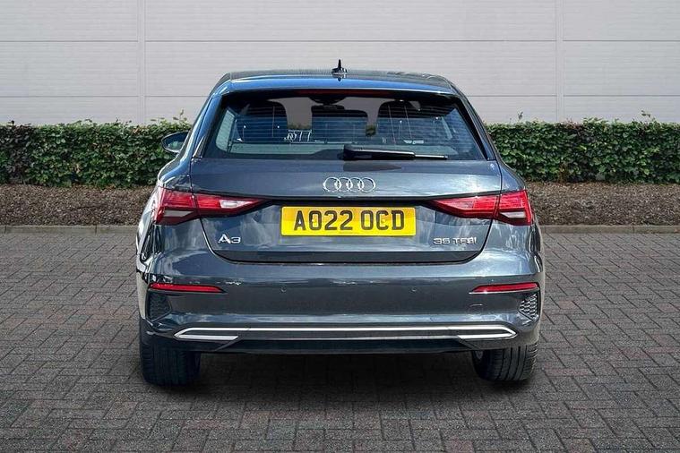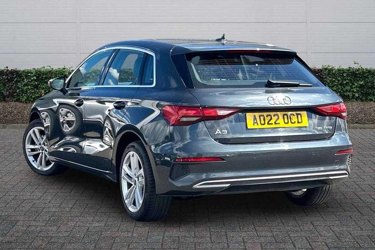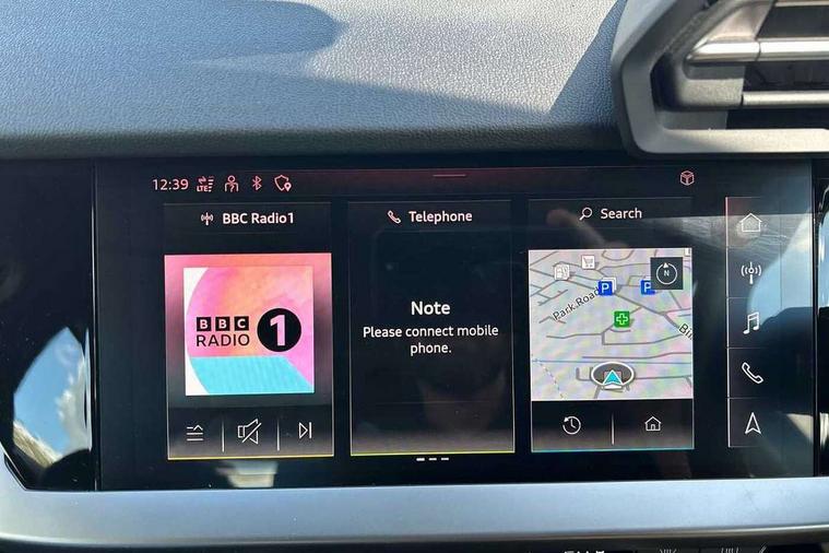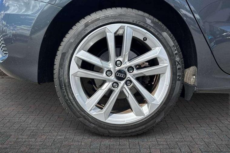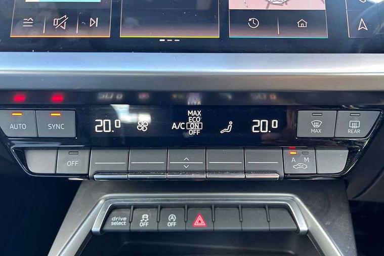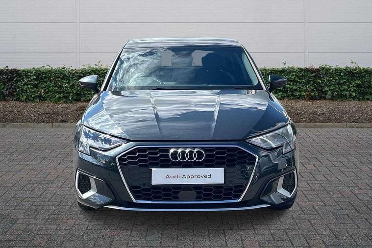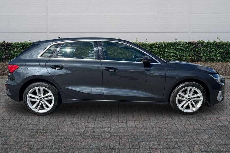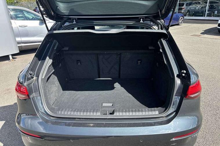 Audi connect emergency call and service, Audi drive select (Auto, Comfort, Dynamic, Efficiency and Individual), Audi smartphone interface, Audi Virtual Cockpit - 10.25" digital and colour instrument cluster, Automatic start/stop system with recuperation, Bluetooth interface, Collision avoidance assistant, Electromechanical power speed sensitive steering, Lane departure warning system, MMI Navigation Plus with high resolution 10.1" colour touch screen display, Service indicator, Trip computer, Voice control system with natural language interaction, Standard suspension, 2xUSB-C connection with data and charging functions, 6 passive loudspeakers, DAB Digital radio, 3rd brake light, Acoustic glass windscreen, Aluminium window trim, Auto dimming frameless rear view mirror, Body colour exterior mirrors, Body colour roof spoiler, Electrically adjustable/heated/folding/auto dimming door mirrors with integrated LED indications + kerb view function for passenger side, Front electric windows, LED daytime running lights, LED headlights and halogen rear lights, Light and rain sensors, Rear electric windows, Rear side wing doors, Rear window, rear door windows and rear side windows in clear glass, Rear wiper, 12V socket and storage compartment in front centre console, 3 seat bench in 2nd row, 40/20/40 split folding rear seat bench with cupholder, Dual zone electronic climate control, Front and rear centre armrest, Front and rear headrests, Front door sill trims with aluminium inlay, Front/rear floor mats, Height and reach adjustable steering wheel, Interior lighting - Front and rear roof module including reading lights, glove compartment light and right hand side, Luggage compartment floor covering, Manual boot compartment lid, Manually adjustable front seats, Seat side bolsters, Single front passenger seat, Steel grey cloth headlining, Twin leather upholstery, Aluminium interior elements pack - A3 Sportback, Sport styling pack - A3 Sportback, 3x3 point rear seat belts, Driver and front passenger airbag with passenger airbag deactivation, Electronic Stabilisation Control (ESC) including ABS, ASR and EDL, First aid kit with warning triangle and 2 safety vests, Front side airbags with head airbags and interaction airbag, Pre-sense front with pedestrian and cyclist detection, Seatbelt monitoring, Tyre pressure loss indicator, Anti theft alarm, Anti-theft wheel bolts, Immobiliser, Manual child locks, Remote control central locking, Inlays with silk effect paint in platinum grey,