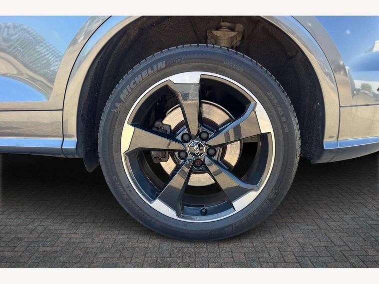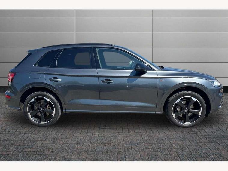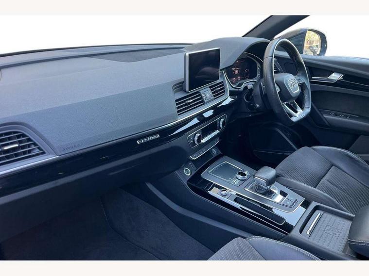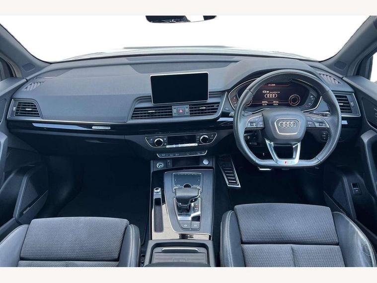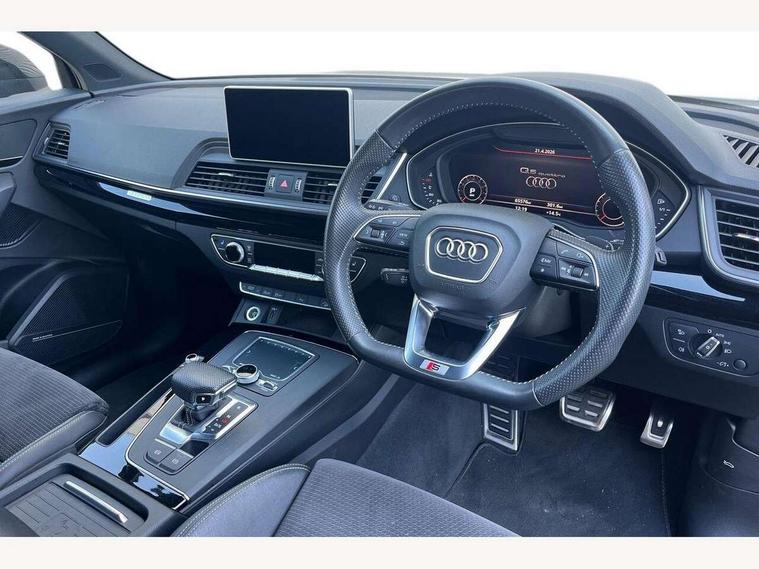 Acoustic front and rear parking sensor, Audi connect safety and service (e-call), Audi connect with Amazon Alexa Integration, Audi drive select, Audi virtual cockpit plus with 12.3" screen and three different layout designs, Audi wireless smartphone interface, Automatic start-stop system with coasting functionality and efficiency programme, Bluetooth interface, Electro - mechanical power assisted steering, MMI navigation plus with 10.1" touch screen, Power tailgate, Reversing camera, Service interval indicator, Voice control system with Audi hotword activation "Hey Audi", Quattro on demand, S line sports suspension, 8 loudspeakers, DAB Digital radio, Acoustic windscreen, Audi matrix LED headlights with dynamic front and rear indicators, Audi rings at front and rear in black, Audi rings decal on rear doors, Auto dimming door mirrors, Auto dimming frameless rear view mirror, Automatic headlight adjustment, Automatic headlights and windscreen wipers, Black roof rails, Body colour bumpers, Body colour underbody protection, Chrome plated exhaust trims, Daytime running lights, Door sills in Selenite silver, Electric adjustable/heated/folding door mirrors, Front air inlet surrounds in anthracite black, Front and rear electric windows, Headlight washers, High gloss black B pillar trims and triangular rear door trim, High level LED brake light, Rear chrome trim strip below lights, Rear privacy glass and rear side windows, Rear side wing doors, Rear wiper, Roof bars, S Line rear spoiler, 2 x USB charging port with aux input socket, 3 rear headrests, 4 way electric lumbar support for driver and front passenger, 40:20:40 split folding 3 rear bench seat in 2nd row with rear centre armrest, Black cloth headlining, Comfort front centre armrest, Contrast stitching on seats, steering wheel and gear lever gaiter, Deluxe 3 zone electronic climate control, Electrically adjustable front seats, Fine Nappa leather upholstery with diamond pattern contrast stitching + front sport seats with S embossed logo, Front/rear floor mats, Gear lever in black leather, Heated front seats, Height adjustable front head restraints, Height/reach adjustable steering column, Illuminated door sill trims with S logo, Luggage compartment cover, Rear seat bench plus-adjust for forwards/backwards position/backrest angle, cupholders in the armrest, load through hatch and remote backrest release, Removable luggage compartment floor, Single front passenger seat, Stainless steel pedals, Sunvisors with vanity mirrors, Black styling package - Q5 Edition 1, Extended interior upholstery pack - Q5, Extended LED Interior multi coloured Lighting Pack - Q5, 3 point seatbelts on all seats, 6 airbags - Driver, front passenger, curtain and side airbags, Electrically operated child locks on rear doors, Electromechanical parking brake, Electronic stabilisation control including ABS, ASR and EDL, First aid kit with warning triangle and vests, Front and rear brake calipers painted in red, Front passenger airbag deactivation, Hill descent control, Hill hold assist, ISOFIX child seat mounting for front passenger seat and ISOFIX child seat mounting with Top Tether for outer rear seats, Multi collision brake assist, Pop-up bonnet for pedestrian protection, Pre sense city, Seat belt force limiter, Seatbelt monitoring, Tyre pressure warning, Anti theft alarm, Anti-theft wheel bolts, Keyless Go access/ignition system, Remote central locking, Air vents inserts and centre console in gloss black, Piano black finish inlay,