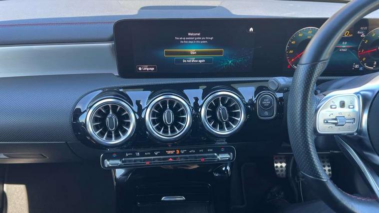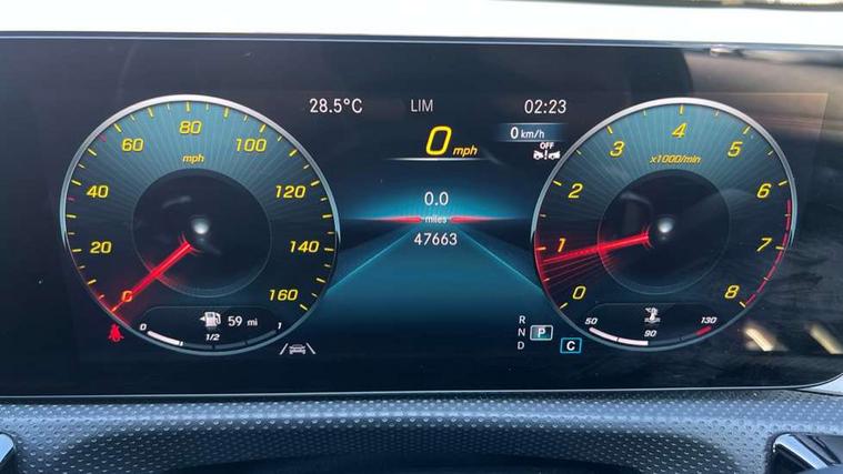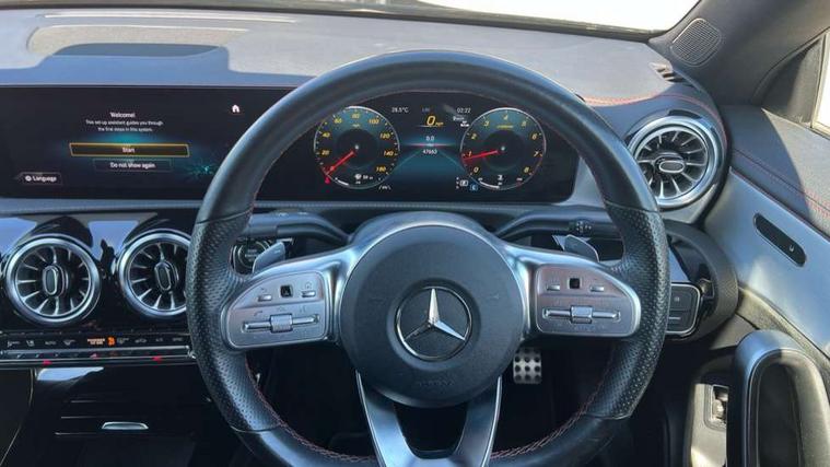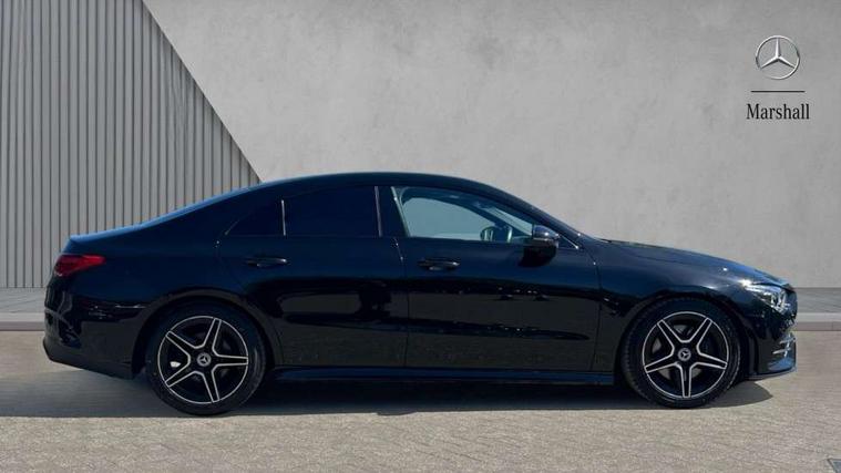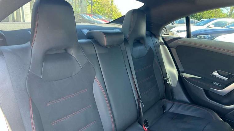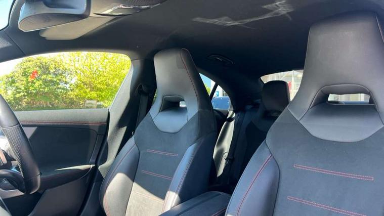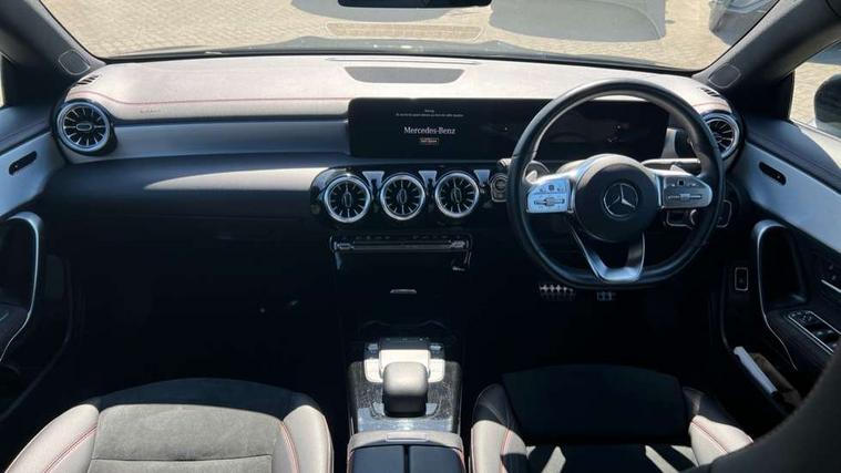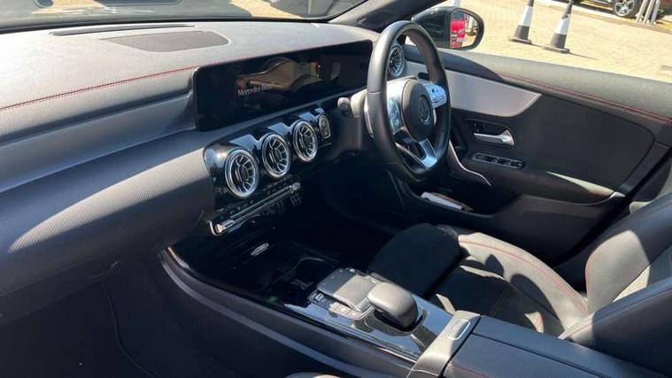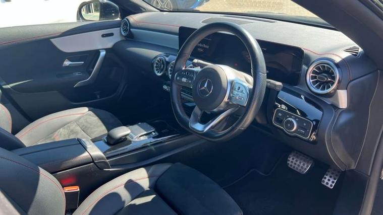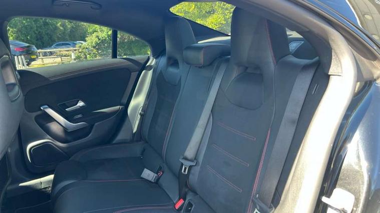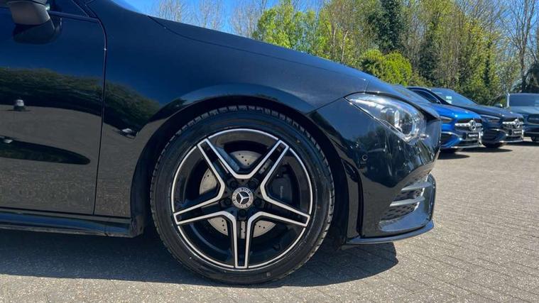 10.25 inch Instrument display with digital cockpit, 10.25 inch touchscreen central media display, Active lane keeping assist, Attention assist - Monitors steering behaviour and long journey fatigue, Bluetooth connection, Car wash mode, Cruise control with limiter, Direct steer system with speed sensitive power steering, DYNAMIC SELECT with a choice of driving modes (ECO, Comfort, Sport and Individual), ECO start/stop function, Fluid level warning indicator for fuel, oil, coolant and washer fluid, Hard-disk navigation, Hey Mercedes Voice activation, Lamp failure indicator, Mercedes me connect including emergency call system, accident recovery, breakdown and maintenance management, Mercedes me remote services, Outside temperature gauge, Owners manual and service booklet in English, Pre-installation of private car share, Preinstallation for Mercedes Benz link, Radio aerial integrated into front and rear windshields, Service indicator (ASSYST), Smartphone integration with Apple CarPlay and Android auto, Speed limit assist, Trip computer in multifunction display with current consumption indicator, Lowered comfort suspension, Rear axle multi-link, DAB digital radio tuner, MBUX multimedia system, Mercedes Benz sound system (100 W) with 6 speakers, USB (type C) ports (2) in stowage compartment and 1 in front of centre console, Adaptive brake lights, AMG body styling with AMG front apron and rear apron and visible exhaust tailpipe in chrome trim elements, AMG bodystyling side skirts, Body colour bumpers, Body colour door handles, Chrome beltline strips, Diamond radiator grille pins in chrome, Electric windows, Electrically adjustable and heated door mirrors with integrated LED indicators, Exhaust system with 2 Visible tailpipe trim elements and rear apron with trim in chrome, Headlamp assist automatic headlamp activation, Heated glass rear windscreen + timer control, High level LED third brake light, Interior mirror with black reading lamps and frameless, LED high performance headlamps with integrated LED daytime running lights, LED tail lamp, Privacy glass with dark tinting on rear side windows and rear window, Rain sensing windscreen wipers with two sensitivity settings, Rear boot, Rear fog lamp, Rear side wing doors, Variable front intermittent wipers, Window line trim strip in chrome, 3 seat bench in 2nd row, 3 spoke flattened bottom nappa leather multifunction steering wheel with perforated leather in grip area, 40:20:40 split folding rear seat backrests, Air condition air vents with surround in silver chrome, Air conditioning - Two zone thermotronic luxury automatic climate control with display, Artico man-made leather upholstery, Automatic child seat recognition sensor, Black roof lining, Brushed stainless steel sports pedals with rubber studs, Floor mats with stitched AMG lettering, Front centre armrest with stowage, Front door sills with Mercedes Benz lettering, Galvanished gear shift paddles on steering wheel, Heated front seats, Illuminated glove compartment stowage, Interior lighting - 64 colour Ambient lighting, Luggage net on driver/front passenger seat backrest, Manually adjustable front seats, Manually height and reach adjustable steering column, Rear head restraints, Single front passenger seat, Sport seats with fixed head restraints, Stowage compartment in centre console with retractable cover, Sunvisors with illuminated vanity mirrors, Touchpad on center console, Twin front cupholders, Two outer rear seat isofix and top tether child seat fixing points, Light and sight pack - CLA, Mirror pack - CLA, Night package - CLA, Parking package - CLA, Seat comfort pack - CLA, Active bonnet pedestrain safety measure which detects an impact and raises bonnet by 65mm, Active brake assist includes forward collision warning system with autonomous braking, Adaptive brake assist with hold function and hill start assist, Anti lock braking system (ABS) with brake assist, Black seat belts, Bonnet with power domes, Brake pad wear warning indicator, Childproof locks manually operated for rear doors and electrically operated for rear power windows, Crash responsive emergency lighting, Driver and front passenger head and sidebags, Driver and front passenger windowbags, Drivers knee airbag, Dual stage driver and front passenger airbags, Electric parking brake, Electronic stability programme with acceleration skid control, ESP curve dynamic assist, Front and rear seatbelt reminder, Front passenger seat occupancy sensor, Three point rear seat belts, Tyre pressure monitoring system, Warning triangle and first aid kit, Guard 360 degree guard vehicle protection system with immobiliser and interior protection, Keyless Go starting function, Remote central locking and crash sensor with emergency opening function, Light aluminium with longitudinal grain interior trim, 18" AMG 5 twin spoke light alloy wheels painted in black with high sheen finish, Summer tyres, Tirefit tyre sealant kit,