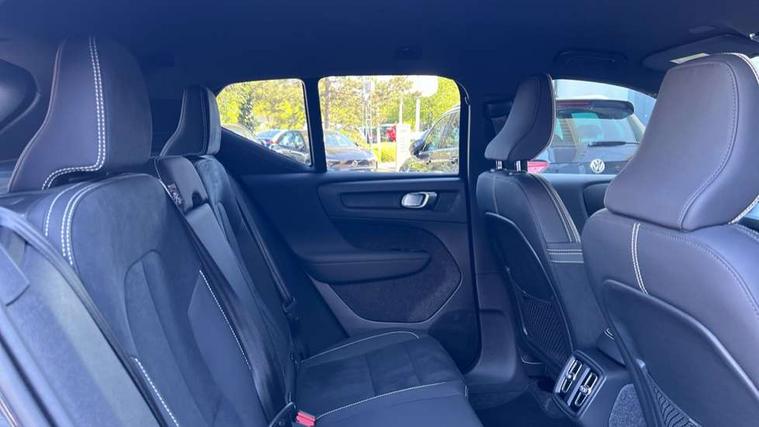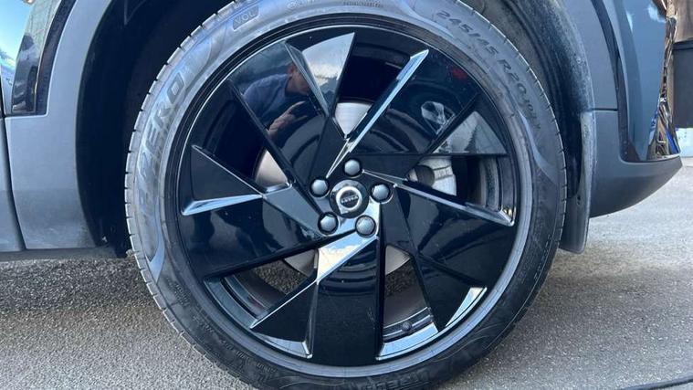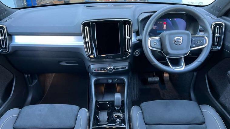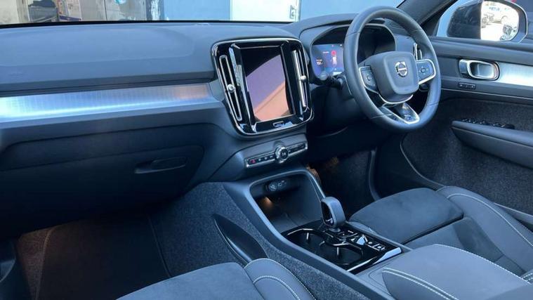 12.3" Progressive Driver Display, 9" centre console portrait touch screen, Adjustable steering wheel force, Android auto (Wired), Apple carplay (wired), Bluetooth handsfree system, Driver alert control, Driver assistance (pilot assist and adaptive cruise control), Driver awareness - Blind spot information system with steer assist, cross traffic alert with autobrake and rear collision warning and mitigation, E-call, Front and rear parking sensors, Front park assist, Google automotive services - Enabled entertainment apps, navigation with google maps, voice recognition with google assistant, Hands free power tailgate, Intelligent speed assistance, Lane keeping aid, Oncoming Lane Mitigation, Speed sensitive steering, Volvo cars services with app - Driving journal, engine remote start, remote door locking/unlocking and vehicle dashboard, Wireless/Inductive Mobile Phone Charging, Automatic transmission with start/stop and manual change functions, Dynamic chassis, DAB Digital radio, Steering wheel mounted remote controls, Adaptive brake lights with high level LED brake lights, Auto dimming feature for exterior door mirrors, Auto dimming interior mirror, Auto folding and heated power door mirrors, Automatic headlamp levelling, Automatic LED Headlights + Active high beam incorporating daytime running lights, Dark tinted windows - rear side windows and rear screen, Front aluminium tread plates, Front and rear electric windows, High gloss black front and rear skid plate, High gloss black front bumper deco, High gloss black front grille strikethrough and ironmark, High gloss black rear model, engine and volvo logo badges, High gloss black window trim, Home safe and approach lighting, Integrated roof rails in high gloss black, LED front fog lights, Puddle lights, Rain sensor with automatic windscreen wiper activation, Rear side wing doors, Rear wiper, Roof antenna, Roof spoiler, Visible VIN plate, 12V socket in front tunnel console and luggage compartment, 2-Zone electronic climate control with CleanZone air quality system and pollen filter, 3 seat bench in 2nd row, 3 Spoke tailored steering wheel with chrome trim, 60/40 versatile split folding rear seat, Centre console cupholders and storage, Charcoal carpet and floor mats, Charcoal headlining, Connect suede textile/microtech upholstery, Flexible load floor and grocery bag holder, Front headrests, Front seat cushion extensions, Glovebox bag hook, Heated front seats, Height adjustable passenger seat, Height/reach adjustable steering column, High gloss centre tunnel deco, High level illumination - Front door pocket, front side step (under door), tailgate, instrument panel, front door inlay, rear courtesy&reading lights, Integrated waste bin, Isofix attachments on outer rear seats, Load cover, Load protection net, Mid level illumination - Front footwell, luggage & glovebox compartment, front cabin courtesy & reading lights, illuminated vanity mirrors+ticket holder, Multi directional lumbar support for driver and passenger seat, Power driver seat with memory + exterior mirrors memory, Rear armrest with cupholders, Rear headrests, Single front passenger seat, Underfloor luggage compartment storage, Climate pack without heated front seats - XC40, 3x3 point rear seatbelts, City safety with steering support with Pedestrian + cyclist + front collision warning with full auto brake and rear auto brake, Driver and passenger airbags, Drivers knee airbag, Electronic parking brake with auto hold, First aid kit, Front and outer rear seatbelt reminder and pretensioners, Front seats SIPS airbags, Hill descent control - Off-road drive mode, Hill start assist, IC (Inflatable Curtains) - Full Length, Passenger airbag cut-off device, Power child locks on rear doors, Road sign information display, Run off Road Protection, SIPS (Side Impact Protection System), Slippery road and hazard light alert, Stability and Traction Control with Spin control, Engine Drag Control and Corner Traction Control, Tyre pressure monitoring system, Vehicle deceleration control with Anti-lock Brake System, Electronic Brake Distribution and Emergency Brake Assist, Warning triangle, WHIPS whiplash protection system - front, 2 x Key integrated remote control central locking including with deadlocking system and auto open/close windows, Anti-theft alarm including immobiliser/volume sensor + level sensor, Keyless drive includes keyless entry and keyless start, Locking wheel nuts, 20" 5 spoke high gloss black alloy wheels,
