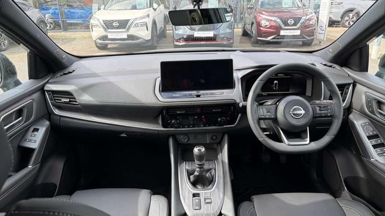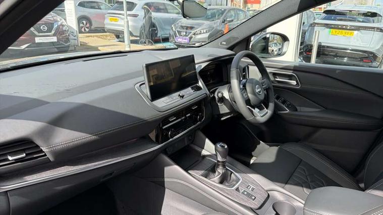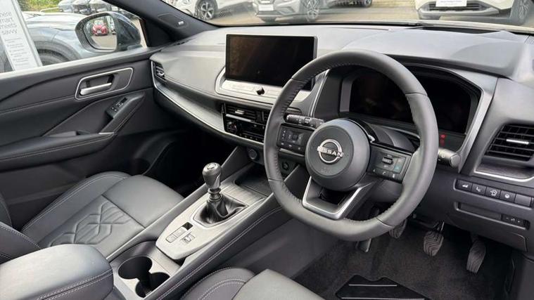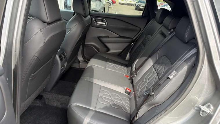 360 degree Intelligent around view monitor with moving object detection, Advanced windscreen head up display, Blind spot warning, Drive assist, Drive assist custom mode, Drive modes (sport, normal, eco), Driver drowsiness and attention warning, Electric speed sensitive power steering, Emergency and breakdown call, Emergency lane keep assist, Emergency Stop Signal (ESS), Engine start/stop button, Event data recorder, Front and rear parking sensors, Full Digital 12.3" TFT Digital Combimeter, Google virtual personal assistance, Hands free power tailgate, Idle stop/start system, In-car WIFI hotspot, Intelligent Cruise control (ICC), Intelligent driver alert system, Intelligent forward collision warning, Intelligent lane intervention, Intelligent speed assist, Lane departure warning system, Nissan connect 12.3 inch touchscreen infotainment system, Nissan connect navigation with google maps, Nissan connect services 2.0 (Google Automotive System), Outside temperature sensor, Rear cross traffic alert, Remote control services - door locks, lights, horn and car locator, Reversing detection, Traffic sign recognition with legal speed adjustment, Trip computer, Wireless Apple CarPlay/Android Auto, Wireless charging pad, Limited slip differential, 2 front USB-C ports, 2 rear USB-C ports, 6 speakers, AM/FM audio system with DAB, Bluetooth audio streaming, Auto dimming frameless rear view mirror, Auto rear wiper when reversing, Body coloured door handles, Bodyside mouldings, Chrome side window finisher, Electric auto folding door mirrors, Electrically adjustable and heated door mirrors with LED turn indicator, Follow me home headlights, Gloss black mirror caps, High beam assist, Intelligent auto headlights, LED 3rd brake light, LED daytime running lights, LED headlights with adaptive driving beam, LED rear lights, LED sequential turn lights, One touch front and rear electric windows with remote opening and closing, One touch passenger window, Partially body coloured bumpers, Rain sensing wipers, Rear privacy glass, Rear roof spoiler, Rear side wing doors, Rear styling plate, Reverse tilting door mirrors, Shark fin antenna, Silver roof rails, Splash free rain sensing wipers, Super RED rear LED lights, Super UV and infrared cut glass, Thermaclear heated windscreen, 12v power socket in dashboard and luggage, 3 bench rear seats in 2nd row, 3 rear headrests, 60/40 split folding rear seat bench, Chrome interior door handles, Dark headlining, Driver and passenger sunvisors with illuminated vanity mirrors, Driver seat back pocket, Dual zone automatic climate control with pollen filter, Electrically adjustable driver seat, Electrically adjustable lumbar support for driver, Fixed Glass roof with electric sunshade, Front centre console and armrest, Front cupholders, Front door with bottle holders, Heated front seats, Heated steering wheel, Height adjustable front headrests, Height adjustable passenger seat, Leather shift knob, Luggage board system, Luggage space lighting, Manual adjustable lumbar support for passenger, Multifunction steering wheel, Passenger seat back pocket, Quilted/PVC upholstery, Rear door bottle holders, Rear seat armrest with 2 cupholders, RGB ambient light (Extended area coverage), Single front passenger seat, Smooth leather steering wheel, Tilt/telescopic adjustable steering wheel, Two rear isofix child seat anchorage points with top tether, 3x3 point rear seatbelt pretensioners + load limiters, ABS with EBD and brake assist, Autonomous emergency braking, Child locks on rear doors, Curtain and front side, far side airbags, Driver and passenger airbags, Driver, passenger and 2nd row rear seat belt reminder, Electric handbrake with auto hold function, Front seatbelt pretensioners + load limiters, Height adjustable front seatbelts, Hill start assist, Intelligent blind spot intervention, intelligent front emergency braking, Intelligent rear automatic braking, Tyre pressure monitoring system, Vehicle dynamic control, Engine immobiliser, Intelligent key with walk away lock and approach unlock functions, Remote central door locking with deadlocking, Thatcham alarm, 19" Diamond cut alloy wheels, Tyre puncture repair kit,