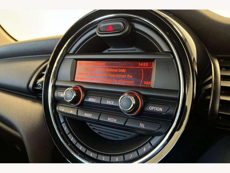 Acoustic seat-belt warning, Brake fluid level warning light, Brake pad wear indicator warning light, DTC - Dynamic traction control, Exterior temperature gauge, Intelligent emergency call, MINI TeleServices, Oil level indicator, On board computer, Push button starter, Service interval indicator, Servotronic PAS, Electronic differential lock, Auxiliary input socket, DAB digital radio module, 2 speed wipers+intermittent wipe, Anti dazzle mirror, Anti trapping/one touch open close front windows, Black tailgate handle, Body colour roof, Body coloured bumpers, Chrome bezels around rear lights and headlights, Chrome door handles, Chrome exhaust tailpipe, Chrome plated radiator grille, Chrome plated trim on bottom edge of window, Chrome strip on lower grille, Electric front windows, Electrically adjustable door mirrors, Flared wheel arches, Follow me home headlights, Green tinted heat insulating glass, Heated door mirrors/heated windscreen washers, Heated rear window with auto timer, Metal look door sill finishers, Rear wiper, Roof spoiler in roof colour, 2 rear head restraints, 3rd sun visor on driver side, 4 boot load lashing points, 4 way manually adjustable passenger seat with height, reach, tilt, backrest and headrest, 6-way manually adjustable driver's seat, Active carbon filter, Air recirculation system, Auxiliary socket in centre console storage compartment, Centre console storage, Driver's seat height adjuster, Driver/passenger sunvisors, Easy entry seats, Front and rear cupholders, Front head restraints, Front interior light, Front passenger grab handle, Gear/selector and handbrake in artificial leather, Internal chrome door handles, Isofix child seat preparation, Luggage compartment lighting, Reach + rake adjustable steering column, Rear grab handles, Rear storage trays, Split folding rear seats, Storage compartments in doors, Toolkit in luggage compartment, Vanity mirrors, 3 point seatbelts, ABS/EBD, ASC+T, Cornering brake control (CBC), Crash Sensor - activates hazard/interior lighting + unlocks doors, Driver and passenger airbags, Driver/front passenger side airbags, DSC - Dynamic Stability Control, Fuel cut off safety device, Head airbags, Hill start assist, Manual passenger airbag deactivation function, Seatbelt pretensioners, Tyre pressure warning, Ventilated front disc brakes, Drive away door locking, Locking wheel bolts, Remote central locking/doors+fuel cap+tailgate, Second remote key, Thatcham category 1 alarm + immobiliser,