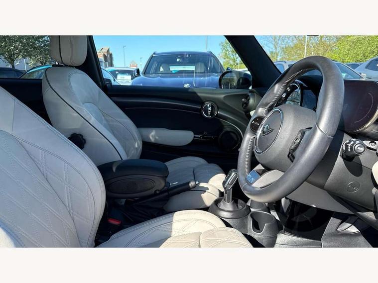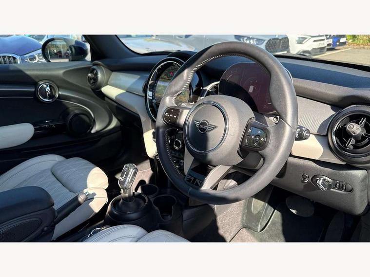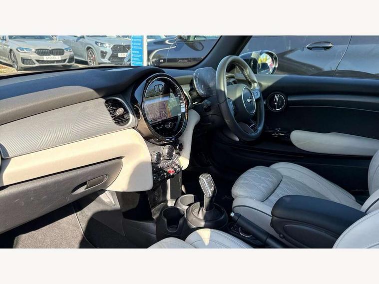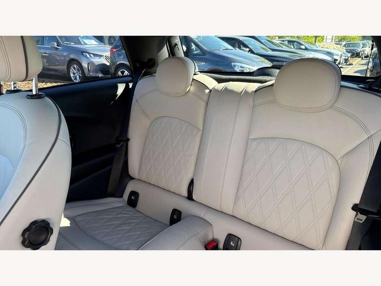 Apple CarPlay, Automatic start/stop function with brake energy recuperation, Compatible mobile phone bluetooth with audio streaming, Cruise control with brake assist, Electro-mechanical speed dependant steering assistance, Flexible car sharing preparation, Instrument cluster, MINI Driving Modes - centre toggle switch to control driving setting (sport, mid and green), Mini E-call, MINI TeleServices, On board computer, Rear park distance control, Service interval indicator, Double Vanos system, Fully variable valve control, High precision injection, Performance Control, Steptronic transmission with double clutch, 8.8" touchscreen with LED ring, FM tuner and DAB digital radio, 3rd brake light, Automatic headlight activation switch, Body colour fuel filler cap, Chrome line exterior - radiator grille bars, tailgate handle, lower front grille grating and rear central fog-light, Dynamic brake lights, Electric front windows, Heated rear window, Heated windscreen washer jets, LED headlight with closed ring and daytime driving lights, Metal door sill strips with MINI imprint, Model logo Cooper on right of tailgate, Rain sensor window wipers, Rear fog lights, Rear LED lights with union jack design, Rear window wiper, Side scuttle panel with integrated indicator, Sun/heat protection glass, White indicator lenses, 12V Accessory socket in centre console, 2 seat bench in 2nd row, 4 lashing eyes in luggage compartment, 60/40 split folding rear seat, Carbon black colour line - Knee roll and door armrest, Chrome interior highlights, Chrome line interior - air vents, gear lever base, door handles and speakers in doors, Cupholders, Front and rear head restraints, Front and rear isofix with front passenger airbag deactivation, Front floor mats in velour, Glove compartment, Height and length steering column adjustment, Interior lighting with 12 different colours across the dashboard, underneath door bezel with illuminated laser-engraved design on central display, Leatherette gearshift lever and handbrake gaiters, LED reading lights, vanity mirror lights, front foot well light and spotlight on front seats, Manual air conditioning, Mechanical seat adjustment - forward/back & backrest for front seats and driver seat height adjust, MINI yours badge on exterior pillar, Multifunction steering wheel, Passenger seat height adjuster, Satellite grey headlining including grab handles and clothes hooks, Single front passenger seat, Storage compartments in doors, Sunvisors with vanity mirrors, Walknappa leather steering wheel with grey seam and MINI Yours badge on Piano Black lower steering wheel spoke, 3 point seatbelts on all four seats, 6 Airbags - front, side, head and seat belt tensioners, Anti-lock braking system (ABS), DSC - Dynamic Stability Control, Front and rear disc brakes, Single tone fanfare horn, Tyre pressure monitoring system, Alarm system with tilt sensor, monitoring doors, bonnet interior and tailgate, Electronic vehicle immobiliser, Start/stop toggle with keyless go, Tool kit,