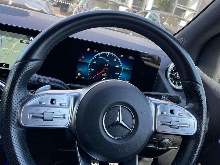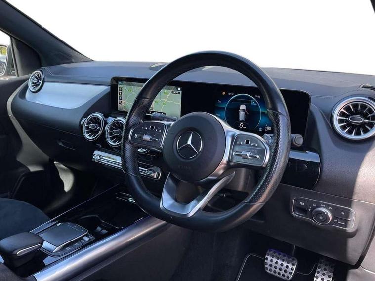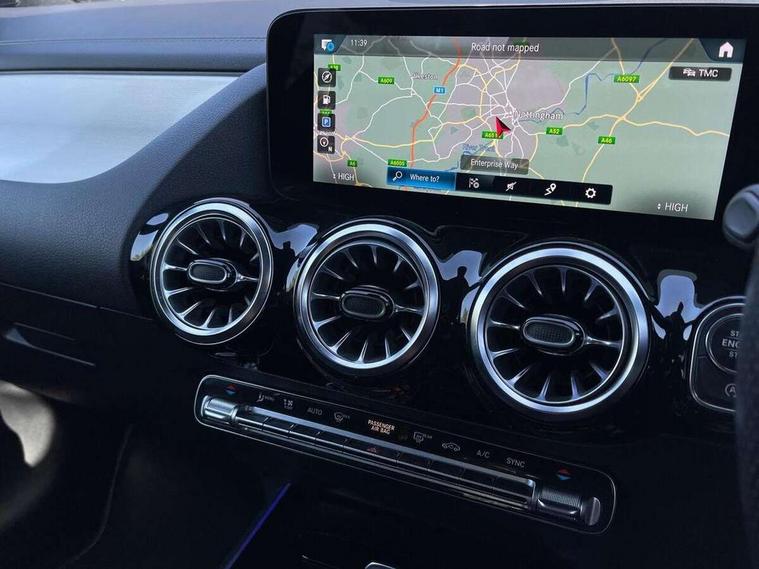 10.25" media display, 180 degree reversing camera with parking guidelines, 7 inch instrument digital display, Active lane keeping assist, Attention assist - Monitors steering behaviour and long journey fatigue, Brake pad wear indicator warning light, Cruise control + speed limiter, Direct steer system, Dual bluetooth interfaces, DYNAMIC SELECT with a choice of driving modes (ECO, Comfort, Sport and Individual), ECO start/stop function, Fluid level warning indicator for fuel, oil, coolant and washer fluid, GPS aerial, Hard disk navigation, Hey Mercedes Voice activation, Lamp failure indicator, Live traffic information, MBUX multimedia system with Hey Mercedes, DAB Digital Radio and touchpad, Mercedes me connect including emergency call system, accident recovery, breakdown and maintenance management, Mercedes me remote services, Outside temperature gauge, Owners manual and service booklet in English, Pre-installation for private car sharing, Preinstallation for Mercedes Benz link, Service indicator (ASSYST), Smartphone integration with Apple CarPlay and Android auto, Speed limit assist, Speed sensitive power steering, Trip computer in multifunction display with current consumption indicator, Lowered comfort suspension, 2 USB ports (type C) in rear stowage compartment and one in front of center console, Mercedes Benz sound system (100 W) with 6 speakers, 4 Electric Front and Rear windows, Adaptive brake lights, AMG body styling - AMG front apron with black front splitter, AMG side sill panels and AMG rear apron and visible exhaust tailpipe, Body coloured bumpers, Body coloured door handles, Body coloured side skirts, Car wash function, Chrome weather strip, Edition badging on the front wings, Electric adjustable and heated door mirrors with integrated LED side indicators, Exclusive diamond radiator grille, Exhaust system with 2 Visible tailpipe trim elements and rear apron with trim in chrome, Headlamp assist automatic headlamp activation, Heated glass rear windscreen + timer control, High level LED third brake light, Interior mirror with black reading lamps and frameless, LED high performance headlamps with integrated LED daytime running lights, LED tail lamp, Privacy glass, Rain sensing windscreen wipers with two sensitivity settings, Rear fog lamp, Rear side wing doors, Rear windscreen wiper, Variable front intermittent wipers, 3 seat rear bench, 3 spoke multifunction sports steering wheel in nappa leather with flattened bottom and perforated grip area, 40:20:40 split folding rear seat backrests, Air conditioning - air vents with silver chrome surround, Air conditioning - Two zone thermotronic luxury automatic climate control with display, Artico man-made leather/Dinamica upholstery with light grey contrast stitching, Automatic child seat recognition sensor, Black roof lining, Brushed stainless steel sports pedals with rubber studs, Floor mats with black top stitching embroidered edition logo and piping in light grey, Folding rear seat backrest, Freight packaging without tie-down hooks, Front and rear head restraints, Front centre armrest with stowage, Front door sills with Mercedes Benz lettering, Front sports seats with adjustable head restraints, Galvanished gear shift paddles on steering wheel, Heated front seats, Illuminated glove compartment stowage, Interior lighting - 64 colour Ambient lighting, Luggage net on driver/front passenger seat backrest, Manually adjustable front seats, Manually height and reach adjustable steering column, Rear armrest with 2nd row seat adjustment, Seat occupancy sensor for front passenger seat, Single front passenger seat, Stowage compartment in centre console with retractable cover, Sunvisors with illuminated vanity mirrors, Touchpad on center console, Twin front cupholders, Two outer rear seat isofix and top tether child seat fixing points, Interior lighting with light and sight pack - B Class, Mirror package - B Class, Night package - B Class, Parking pack - B Class, Seat comfort pack - B Class, 3 rear three point seatbelts, Active bonnet pedestrian safety measure which detects an impact and raises bonnet, Active brake assist includes forward collision warning system with autonomous braking, Adaptive brake assist with hold function and hill start assist, Airbags - kneebag for driver, Anti-lock braking system (ABS) with brake assist, Black seat belts, Childproof locks manually operated for rear doors and electrically operated for rear power windows, Crash responsive emergency lighting, Curve dynamic assist, Driver and front passenger head and sidebags, Driver and front passenger windowbags, Dual stage driver/passenger airbags, Electric parking brake, Electronic stability programme with acceleration skid control, Front and rear seatbelt reminder, Front passenger airbag deactivation, Tyre pressure monitoring system, Warning triangle and first aid kit, Alarm system with immobiliser and interior protection -Thatcham category 1, Keyless Go starting function, Remote central locking and crash sensor with emergency opening function, Urban guard vehicle protection - Anti theft alarm system, tow away protection with visual and acoustic warning and alarm siren, Matrix look light longitudinal-grain aluminium trim elements, 18" AMG 5 spoke light alloy wheels aerodynamically optimised painted in black with high sheen finish, Summer tyres, Tirefit tyre sealant kit,