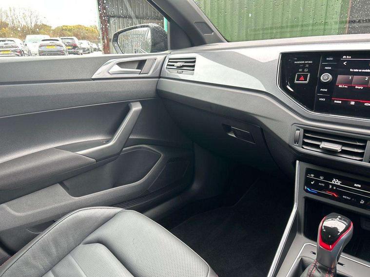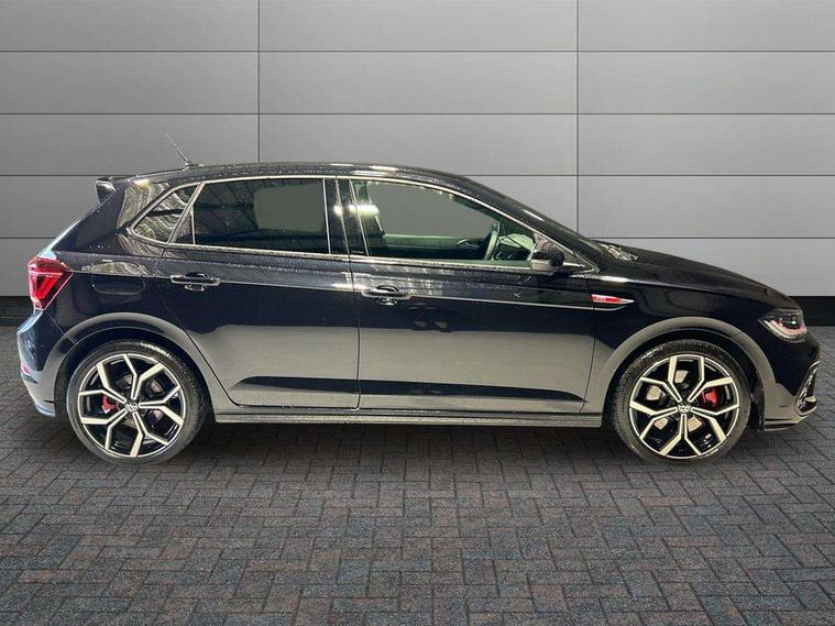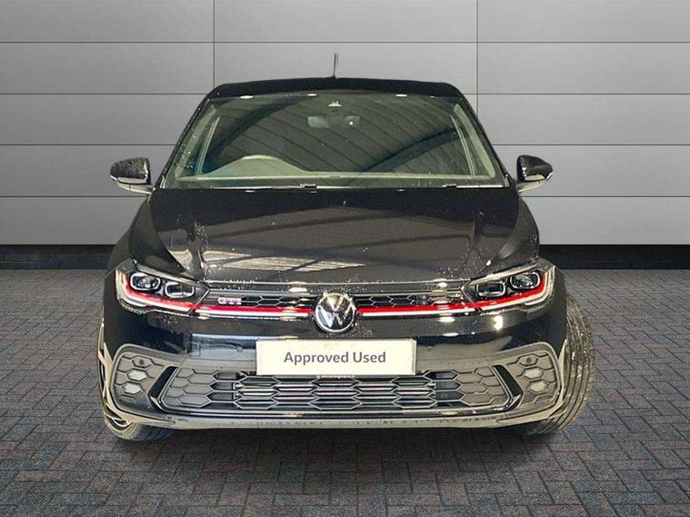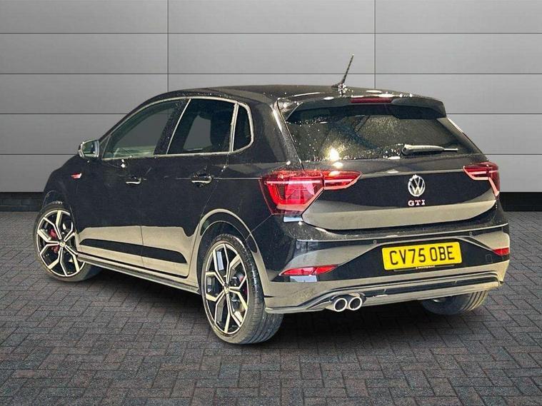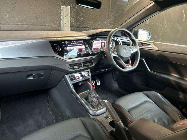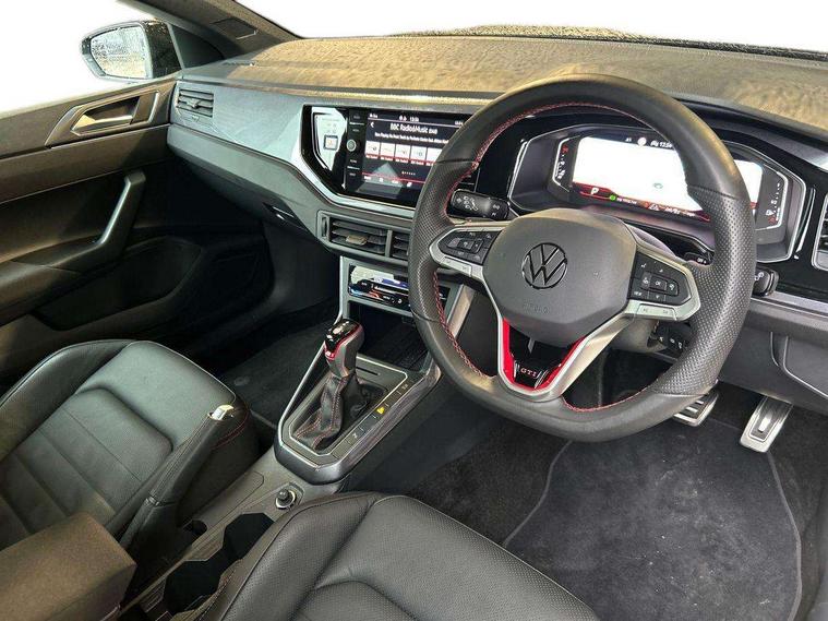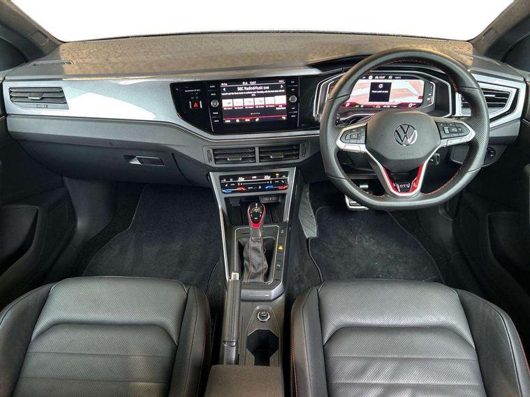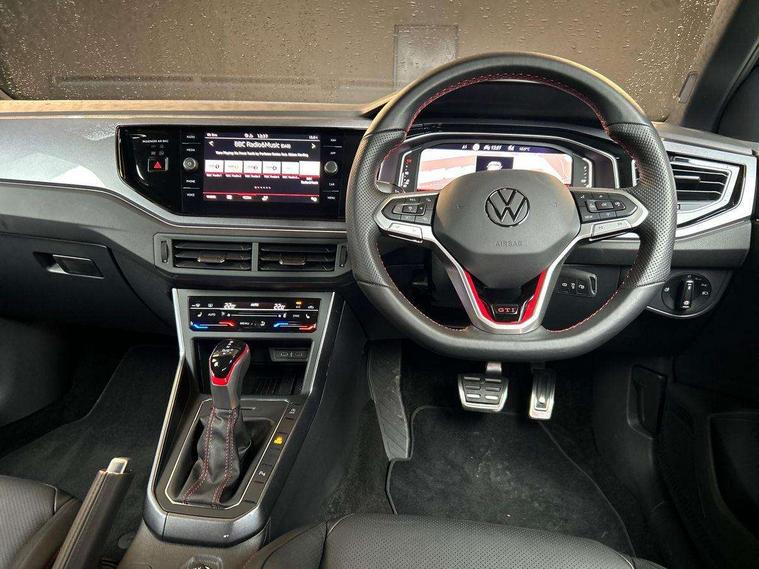 Adaptive cruise control with follow-to-stop and speed limiter, Advanced driver attention and drowsiness monitor, Bluetooth mobile phone interface, Digital Cockpit Pro with 10.25" Display, Dynamic road sign display, Eco mode, Emergency call service, Multifunction camera, Power assisted speed sensitive steering, Preparation for We connect and We connect plus, Speedo and rev counter, electronic odometer, trip, service interval display and fuel gauge, Travel Assist - Lane keeping system and traffic jam assist, Travel assist including emergency assist, Trip computer, Warning signal and warning light for front and rear seatbelts not fastened, Washer fluid level indicator, Wireless app connect, Adaptive chassis control, Front wheel drive, Heavy duty rear axle, Rear shock absorpion sports version, Sports select suspension lowered by 15mm, Start-stop system with battery regeneration (recuperation - energy recovery during braking), DAB Digital radio, Diversity antenna for FM reception, Body colour bumpers, Body colour door handles, Electric front windows, Front scuff plates in aluminium with GTI logo, Heat insulating glass windscreen, Power folding adjustable/heated exterior mirrors and front passenger exterior mirror lowering function, Rain sensor, Rear electric windows, Rear fog light, Rear side wing doors, Rear windscreen washer and wiper with interval delay, Sport bumpers with air intakes with honeycomb structure, Third brake light, Twin chrome exhaust tailpipes, 12V power socket in centre console, 2 USB-C ports in the front, 2 USB-C charging sockets on the center console in the rear, 3 rear head restraints, 60/40 split folding rear seat and rear seat bench not split, Air care climatronic air conditoning system with active combination filter and 2-zone temperature control, Black roof lining, Carpet mats, front and rear, Chrome plated radiator grille inserts, air vent surrounds and light switch surrounds, Door and side trim panel, Driver and front passenger seat height adjustment, Driver/passenger sunvisors with illuminated vanity mirrors, Front centre armrest, Front footwell illumination, Front seat backrest storage pockets, GTI sports gearshift knob in aluminium leather, Handbrake lever handle in leather, Headliner in recycled material, Isofix child seat preparation easy-fit (for two outer rear seats, and front passenger seat) compatible with I-size, LED interior light with switch off delay and dimmer, 2 reading lights front and rear, Luggage compartment cover, Luggage compartment floor, Luggage compartment lighting, Lumbar adjustment for front seats, Single front passenger seat, Stainless steel pedals, Standard pedal cluster, Three spoke leather wrapped multifunction sports steering wheel with shifting paddles, IQ LED matrix headlights pack - Polo, Light and sight pack - Polo GTI, 3 point height adj front seatbelts + pretensioners, 3x3 point rear seatbelts, ABS, Driver and front passenger airbag with front passenger airbag deactivation, Drivers and front passengers safety optimised head restraints, ESC (Electronic stability control) + EDL (Electronic Differntial lock) and ASR (Traction control), Extended and predictive pedestrian/ cyclist protection, Front and rear disc brakes with red brake calipers, Front curtain and side airbags with center airbag, Hill hold control, Manual child lock in rear doors, Two tone horn, Tyre pressure loss indicator, Alarm with interior protection, Anti-theft alarm system with interior monitoring, backup horn, and towing protection, Anti-theft wheel bolts, Electronic engine immobiliser, Chrome applications on rotary light, mirror adjustment, window regulator switches, outlet with frame in black, Low rolling resistance tyres,