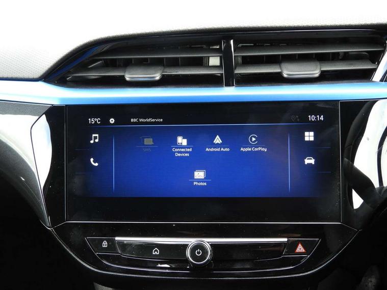 7 inch digital instrument cluster display, Breakdown call (b-call), Central facia display with digital clock, outside air temperature and audio information, Cruise control with intelligent speed limiter, Driver drowsiness alert system, E-call, Engine oil life indicator, Front camera system, Instrumentation - Speedometer, rev counter, low fuel gauge warning light + water temperature gauge warning light, Lane departure warning, Lane keep assist, Lights on audible warning, Multi function trip computer, Pre conditioning of vehicle temperature, RDS with traffic programme, Rear parking distance sensors, Remote check of battery level programming and charge management, Service indicator, Smartphone projection, Speed sensitive power steering, Speed sign recognition, Sport drive mode selector, Start/stop system, Tailgate, Vauxhall connect box, Vehicle status and information, Wireless Apple CarPlay/Android Auto, Electronic returnless fuel system, Petrol Particulate Filter, Under body shield for aero, AM/FM stereo radio, Bluetooth connectivity with A2DP audio streaming function (Advanced audio distribuition profile), DAB Digital radio, Multimedia with 10-inch touchscreen, Six speakers, Steering wheel audio, phone and cruise controls, USB type C port, Automatic headlight control system, Black door mirror housings, Black lower side window mouldings, Black rear griffin badge and model lettering, Body colour door handles, Body colour rear bumper, Bonnet/headlight/wiper structure, Corsa lettering in tailgate, Dark tinted rear side windows + tailgate window, Electrically adjustable and heated door mirrors, Electrically operated front and rear windows with safety auto reverse and one touch up/down facility, Electrochromic automatic anti-dazzle rear view mirror, Flexible roof mounted aerial, Glazed tailgate and heated rear window with wash/wipe facility, Halogen tail lamps, Hazard warning lights, Headlamps for left side traffic, High beam assist, High gloss black finish B pillar, Intelli-LED headlights, LED 3rd brake light, LED daytime running lights, Rain sensitive windscreen wipers, Rear fog lamp, Rear reversing lights, Rear side wing doors, Rear wiper, Solar heat absorbing windscreen and windows, Sports front and rear body styling for upper and lower bumper design, Two speed windscreen wipers with variable intermittent wipe, Windscreen and side window demist vents, 12V power sockets, 3 bench rear seats in 2nd row, 4 speed fan with illuminated controls, 6 way manual adjustable co-driver seat height up/down, reach fore/aft, backrest upright/recline, 6 way manual adjustable driver seat height up/down, reach fore/aft, backrest upright/recline, 60/40 split folding rear seat, Air conditioning with air recirculation facility, Banda cloth upholstery, Black headliner, Cabin particulate filter - removes dust, airborne particles and pollen, Comfort front seats, Driver/passenger sunvisors with vanity mirrors + covers, Four adjustable facia vents, Front cupholder, Front headrests, Height adjustable head restraints, Illuminated glovebox with lid, Interior courtesy light, Internal chrome door handles, LED boot light, Polyurethane gear knob/lever, Reach and rake adjustable steering column, Rear cupholder, Rear headrests, Right hand drive (RHD), Single dome lamp with dual front reading lamps, Single front passenger seat, Standard floor mats, Two litre open door pockets, Vegan leather steering wheel, YES interior badging, Winter pack - Corsa, 3 rear 3 point seatbelts, Anti-lock braking system (ABS), Automatic emergency braking with pedestrian detection, Cornering brake control, Deactivation switch for front passenger's airbag, Drag torque control, Driver and front passenger airbags, front seat side impact airbags, full size curtain airbags, EBD - Electronic brakeforce distribution, Electrical child lock system in rear door latch, Electronic Stability Programme (ESP), Emergency brake assist, Forward collision alert, Front seatbelt unfastened audible warning and warning light, Front ventilated disc brakes - 282mm, Hill hold and start system, ISOFIX child seat mountings incorporating top tether anchor points located on second row rear seats, Manual handbrake, Rear drum brakes - 203mm, Seatbelt pretensioners, Single tone horn, Straight line stability control, Traction control, Tyre deflation detection system, 2 keys one folding with integral remote, Electronically protected audio equipment, Engine deadlock and immobiliser, Freewheeling door locks, Locking wheel nuts, Remote control central locking, Remote locking fuel filler flap, Steering column lock, Visible vehicle identification number, 16" Diamond-cut hi-gloss black alloy wheels - Yes Petrol,