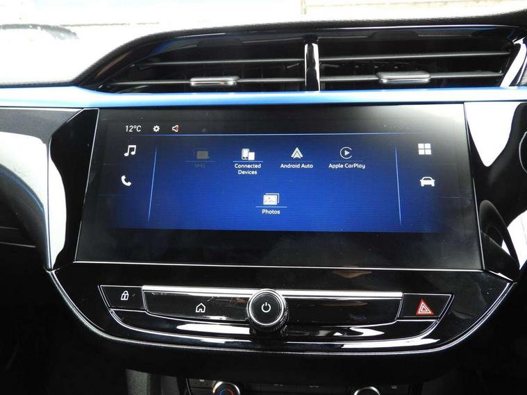 7 inch digital instrument cluster display, Breakdown call (b-call), Central facia display with digital clock, outside air temperature and audio information, Cruise control with intelligent speed limiter, Driver drowsiness alert system, E-call, Engine oil life indicator, Front camera system, Instrumentation - Speedometer, rev counter, low fuel gauge warning light + water temperature gauge warning light, Lane departure warning, Lane keep assist, Lights on audible warning, Multi function trip computer, Pre conditioning of vehicle temperature, RDS with traffic programme, Rear parking distance sensors, Remote check of battery level programming and charge management, Service indicator, Smartphone projection, Speed sensitive power steering, Speed sign recognition, Sport drive mode selector, Start/stop system, Tailgate, Vauxhall connect box, Vehicle status and information, Wireless Apple CarPlay/Android Auto, Electronic returnless fuel system, Petrol Particulate Filter, Under body shield for aero, AM/FM stereo radio, Bluetooth connectivity with A2DP audio streaming function (Advanced audio distribuition profile), DAB Digital radio, Multimedia with 10-inch touchscreen, Six speakers, Steering wheel audio, phone and cruise controls, USB type C port, Automatic headlight control system, Black door mirror housings, Black lower side window mouldings, Black rear griffin badge and model lettering, Body colour door handles, Body colour rear bumper, Bonnet/headlight/wiper structure, Corsa lettering in tailgate, Dark tinted rear side windows + tailgate window, Electrically adjustable and heated door mirrors, Electrically operated front and rear windows with safety auto reverse and one touch up/down facility, Electrochromic automatic anti-dazzle rear view mirror, Flexible roof mounted aerial, Glazed tailgate and heated rear window with wash/wipe facility, Halogen tail lamps, Hazard warning lights, Headlamps for left side traffic, High beam assist, High gloss black finish B pillar, Intelli-LED headlights, LED 3rd brake light, LED daytime running lights, Rain sensitive windscreen wipers, Rear fog lamp, Rear reversing lights, Rear side wing doors, Rear wiper, Solar heat absorbing windscreen and windows, Sports front and rear body styling for upper and lower bumper design, Two speed windscreen wipers with variable intermittent wipe, Windscreen and side window demist vents, 12V power sockets, 3 bench rear seats in 2nd row, 4 speed fan with illuminated controls, 6 way manual adjustable co-driver seat height up/down, reach fore/aft, backrest upright/recline, 6 way manual adjustable driver seat height up/down, reach fore/aft, backrest upright/recline, 60/40 split folding rear seat, Air conditioning with air recirculation facility, Banda cloth upholstery, Black headliner, Cabin particulate filter - removes dust, airborne particles and pollen, Comfort front seats, Driver/passenger sunvisors with vanity mirrors + covers, Four adjustable facia vents, Front cupholder, Front headrests, Height adjustable head restraints, Illuminated glovebox with lid, Interior courtesy light, Internal chrome door handles, LED boot light, Polyurethane gear knob/lever, Reach and rake adjustable steering column, Rear cupholder, Rear headrests, Right hand drive (RHD), Single dome lamp with dual front reading lamps, Single front passenger seat, Standard floor mats, Two litre open door pockets, Vegan leather steering wheel, YES interior badging, Winter pack - Corsa, 3 rear 3 point seatbelts, Anti-lock braking system (ABS), Automatic emergency braking with pedestrian detection, Cornering brake control, Deactivation switch for front passenger's airbag, Drag torque control, Driver and front passenger airbags, front seat side impact airbags, full size curtain airbags, EBD - Electronic brakeforce distribution, Electrical child lock system in rear door latch, Electronic Stability Programme (ESP), Emergency brake assist, Forward collision alert, Front seatbelt unfastened audible warning and warning light, Front ventilated disc brakes - 282mm, Hill hold and start system, ISOFIX child seat mountings incorporating top tether anchor points located on second row rear seats, Manual handbrake, Rear drum brakes - 203mm, Seatbelt pretensioners, Single tone horn, Straight line stability control, Traction control, Tyre deflation detection system, 2 keys one folding with integral remote, Electronically protected audio equipment, Engine deadlock and immobiliser, Freewheeling door locks, Locking wheel nuts, Remote control central locking, Remote locking fuel filler flap, Steering column lock, Visible vehicle identification number, 16" Diamond-cut hi-gloss black alloy wheels - Yes Petrol,