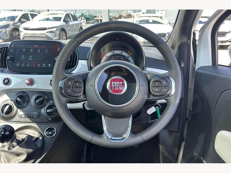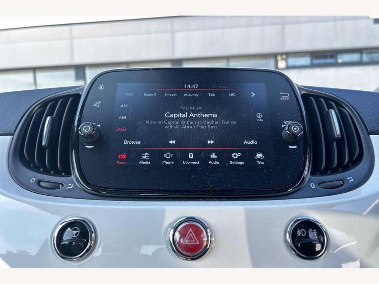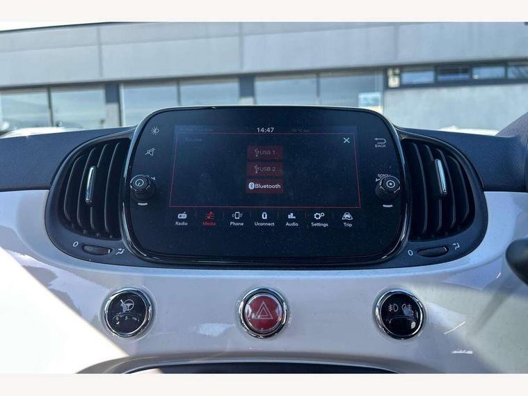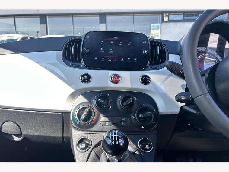 Apple car play/Android Auto, Cruise control, E-call, External temperature gauge, Power assist steering, Rear parking sensor, Speed limiter, Stop/start system, Trip computer, 4 speakers, 7" HD Touchscreen Radio, Bluetooth, USB and DAB, Rear speakers, 3rd brake light, Auto headlights, Body colour bumpers, Body coloured electrically adjustable door mirrors, Chrome plated exterior door handles, Dolcevita badge on fender, Dusk and rain sensors, Electric front windows, Fixed glass sunroof with sunblind, Front fog lights, Halogen headlamps, Heat insulated glass, Heated rear windows with wash wipe, LED daytime running lights, Rear side wing doors, Rear wiper, 1 passenger grab handle, 2 seat bench in second row, 50/50 split folding rear seats with height adjustable rear headrests, Air conditioning, Auxilliary 12V power socket, Chrome kit, Front headrests, Height adjustable drivers seat, Height adjustable steering wheel, Isofix child seat preparation, Single front passenger seat, Techno leather steering wheel with audio controls, 7 airbags - Driver, passenger, side, window and drivers knee airbags, ABS/EBD, ESC + ASR/MSR + HBA + Hill holder, Manual passenger airbag deactivation function, Traction control, Tyre pressure monitoring system, Automatic door locking, Immobiliser, Locking fuel filler cap, Remote central locking, 15" Alloy wheels,