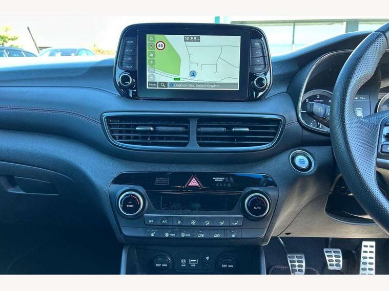8" touchscreen satellite navigation including traffic messaging channel, map care and live services, Apple car play/Android Auto, Bluetooth system, Cruise control + speed limiter, Digital clock, Driver alert system, Emergency stop signalling system, Flex Steer variable steering settings, Front and rear parking sensors, Lane keep assist, PAS, Rev counter, Reversing camera, Roll over sensor, Speed limit information, Tailgate open warning light, Trip computer, Trip odometer, Water temperature gauge, Windscreen washer fluid sensor and warning indicator, Wireless phone charging pad, 2 front and 2 rear speakers with 2 tweeters, DAB Digital radio, Steering wheel mounted audio/phone controls, USB and aux connection in front, Adjustable intermittent front windscreen wipers with aero wiper blade, Auto dimming rear view mirror with compass, Automatic defog system, Automatic headlights with dusk sensor, Automatic windscreen wipers with rain sensor, Black door mirrors with integrated indicators, Black outside mirror covers, Black roof rails, Body colour bumpers, Body colour exterior door handles, Electric front/rear windows with drivers one touch/anti-trap, Electrically adjustable, heated and power folding door mirrors, Follow me home headlights, Front fog lights, Grey bodyside mouldings, Halogen projector headlights, Integrated front spoiler, Integrated rear spoiler, LED brake lights, LED daytime running lights, LED rear lights, N Line Badging, N Line Exclusive front and rear bumpers, N Line grille, Positioning Lights - LED, Privacy glass - Rear windows and tailgate, Rear skid plate - Grey, Rear wash/wipe with intermittent wipe setting, Static Cornering lights, Tinted glass with windscreen shade band, Trailer stability assist, Twin exhaust pipes, 12V power outlets in front console and luggage compartment, 60/40 split folding rear seat, Adjustable head restraints, Black headliner, Chrome interior door handles, Cupholders in centre and rear console, Door courtesy lights, Driver and passenger front seat pockets, Driver and passenger sunvisors with illuminated LED vanity mirrors, Driver's seat electric lumbar support, Driver's seat height adjustment, Dual zone climate control, Front and rear door pockets, Front armrest with storage box, Front door pocket bottle holders, Heated front seats, Height/reach adjustable steering column, Illuminated/air conditioned glove compartment, ISOFIX child seat anchorage points attached on outer rear seats, Logo on seat backrests, Luggage area underfloor compartment, Luggage compartment lighting, Luggage cover, Luggage hooks, Luggage net, Manual height adjustable front passenger seat, Map and reading lights, N Line branded gear stick, N Line branded leather steering wheel, N Line Leather/suede upholstery, Reclining rear seats, Red stitching on central pad, Red stitching on steering wheel, Retractable load cover, Sunglasses holder, 3x3 point rear seatbelts, Active bonnet, Anti-lock brake system, Autonomous emergency braking, Brake assist function, Childproof rear door locks, Downhill brake control, Driver and passenger airbags, Drivers knee airbag, Electronic parking brake, ESP, Front passenger airbag deactivation switch, Front seatbelt pretensioners, Front side airbags + full size curtain airbags, Height adjustable front seatbelts, Hill start assist control (HAC), Seatbelt warning, Traction control, Tyre pressure monitoring system with individual tyre pressure display - TPMS, Vehicle stability management, Deadlocks, Immobiliser, Locking wheel nuts, Perimeter alarm, Remote control central locking, Smart key with keyless entry and engine start/stop button, Speed sensitive auto door locking, 19" Alloy wheels, Tyre repair kit,