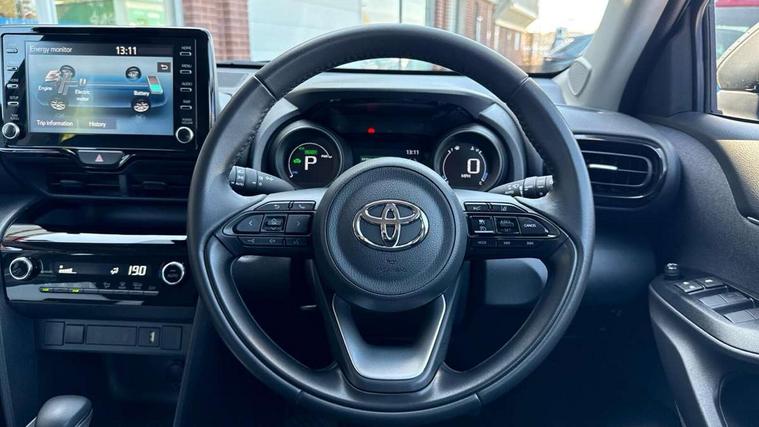4.2" multi information display, 8" Toyota touch 2 multimedia system with Smartphone integration with Apple CarPlay and Android auto, Adjustable speed limiter, Bluetooth connectivity, Digital speedometer, Driver attention alert system, eCall emergency system, Electric power steering, Full range intelligent adaptive cruise control, Hybrid system indicator, Key reminder warning, Lane trace assist, Multimedia, audio, telephone and voice recognition switches on steering wheel, My T Connected services, Pre-collision system enhanced with emergency steering assist, Reversing camera, Road sign assist - RSA, Steering assisted vehicle stability control, 6 speakers, DAB Digital radio, USB connection, 3rd brake light, Acoustic windscreen glass, Anti-jam protection on power windows, Auto high beam [AHB] with on/off switch, Automatic headlights, Black lower front grille, Black Shark-fin antenna, Black upper front grille, Black wheel arch mouldings, Body colour door handles, Body colour front bumper, Body colour rear bumper, Electric adjustable heated door mirrors, Follow me home headlights, Front and rear electric windows with auto up/down function, Front intermittent wipers, Halogen projector headlights, Headlight cut off reminder, Indicators integrated on door mirrors, Intermittent rear wiper, LED daytime running lights, LED Indicators, Manual headlight levelling, Manually retractable door mirrors, Noise reduction layer on windscreen, Rain sensor, Rear side wing doors, Rear spoiler, Rear window defogger, 12v power outlet - front, 2x Rear coat hooks, 3 seat bench in 2nd row, 3 spoke leather steering wheel, 60/40 split folding rear seat, Adjustable speed limiter switch on steering wheel, Auto air conditioning, Boot light, Central armrest, Driver and front passenger personal lights, Fabric door trim, Fabric upholstery, Front console box, Front cup holders, Front head restraints, Glovebox, Grey roof lining, Height adjustable driver's seat, Height adjustable front passenger seat, ISOFIX child restraint system, Lane departure alert switch on steering control, Leather gearshift, Manual telescopic and tilting steering wheel, Mirror on driver and passenger sun visor, Pollen air filter, Rear head restraints, Single front passenger seat, Soft tonneau cover, 3x3 point rear seat belts, ABS+EBD+Brake assist, Driver and passenger central airbags, Driver and passenger front airbags, Driver and passenger side airbags, Electronic parking brake, Emergency brake light system (EBS), Front seat belt reminder, Hill start assist control (HAC), Passenger airbag on/off switch, Pre-collision system with pedestrian and cyclist detection, Rear door child safety locks, Rear passenger side airbags, Rear seat belt reminder, Traction control, Tyre pressure warning system, Immobiliser, Intrusion alarm, Keyless smart entry with push button start, Power door locks, Power passenger window lock, Remote door lock, 16" 10 spoke alloy wheels, Tyre repair kit,